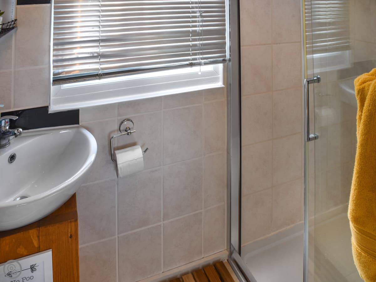 It sleeps two, one bedroom. There's one modern shower room with a porta loo inside. That's just for wees, though. You need to use the main WC blocks for anything else. They're on-site and there are a few of them. The chalet has a 3 Star rating. It's clean and comfortable, not luxurious.