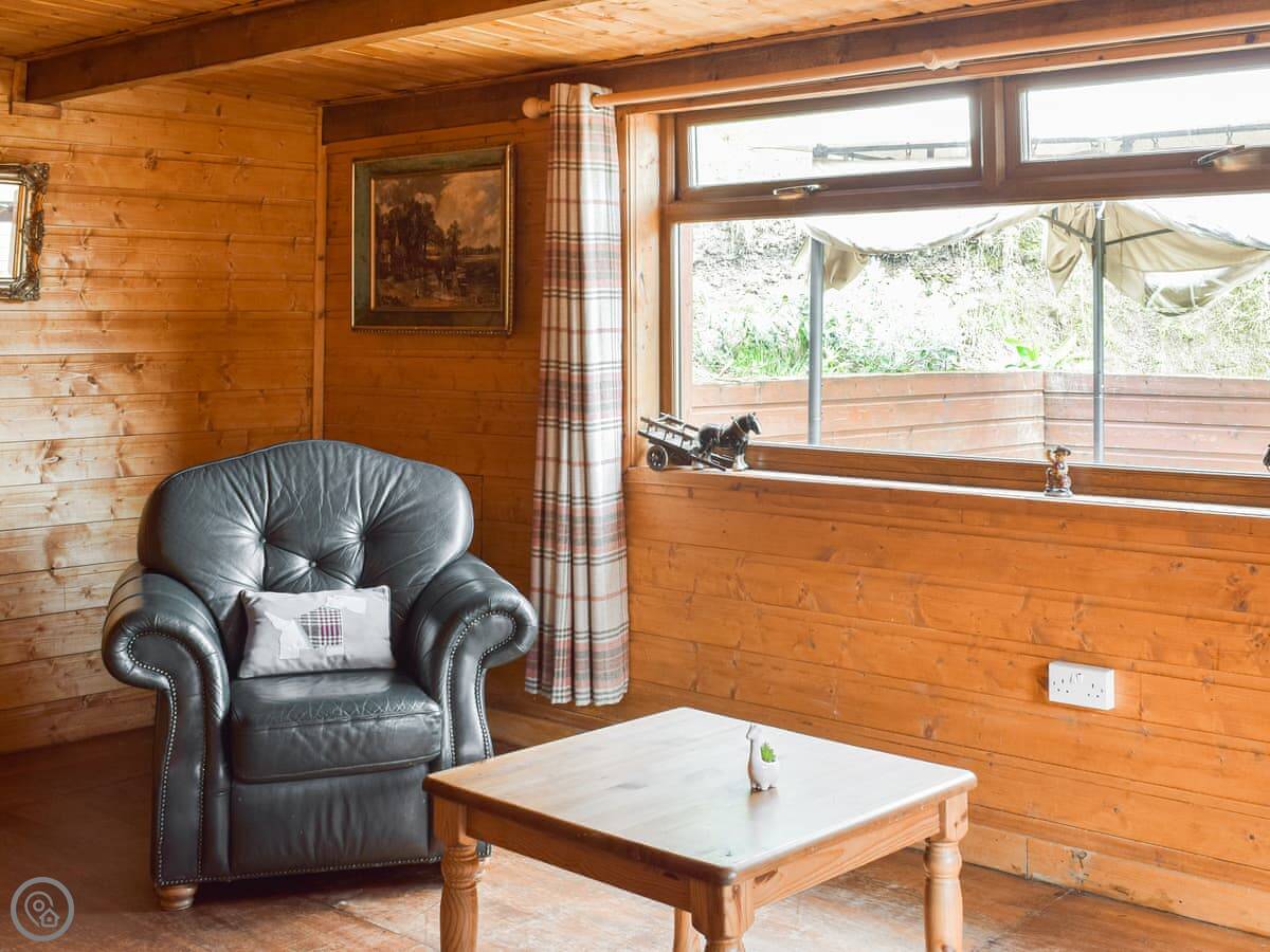 Cow Boy Cabin is on our farm in Uplawmoor. It's a detached wooden cabin, sleeps two. One bedroom with a double bed, and two bathrooms. One has a roll-top bath with a shower over it, and there's a separate shower room in the little annexe bit.