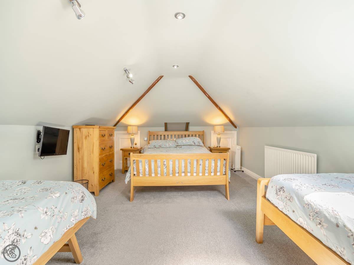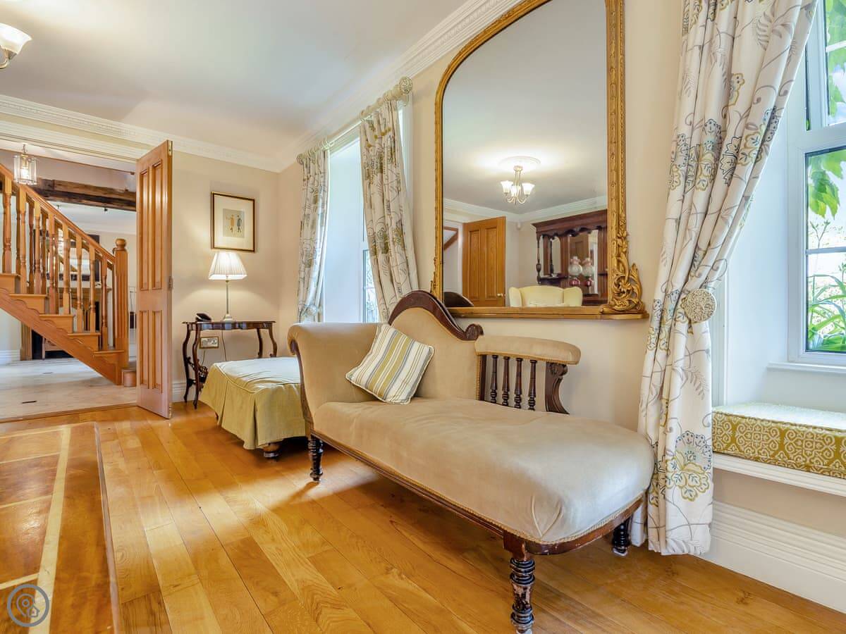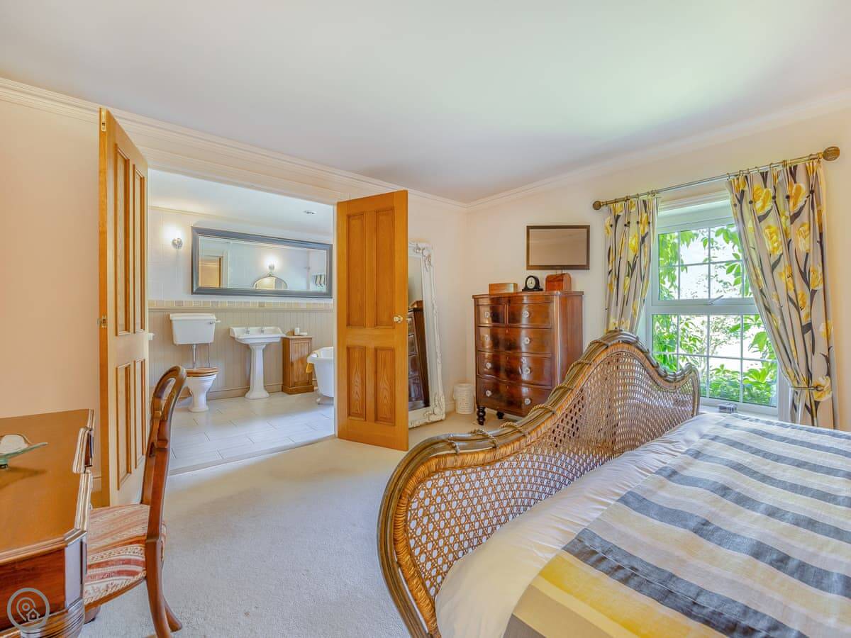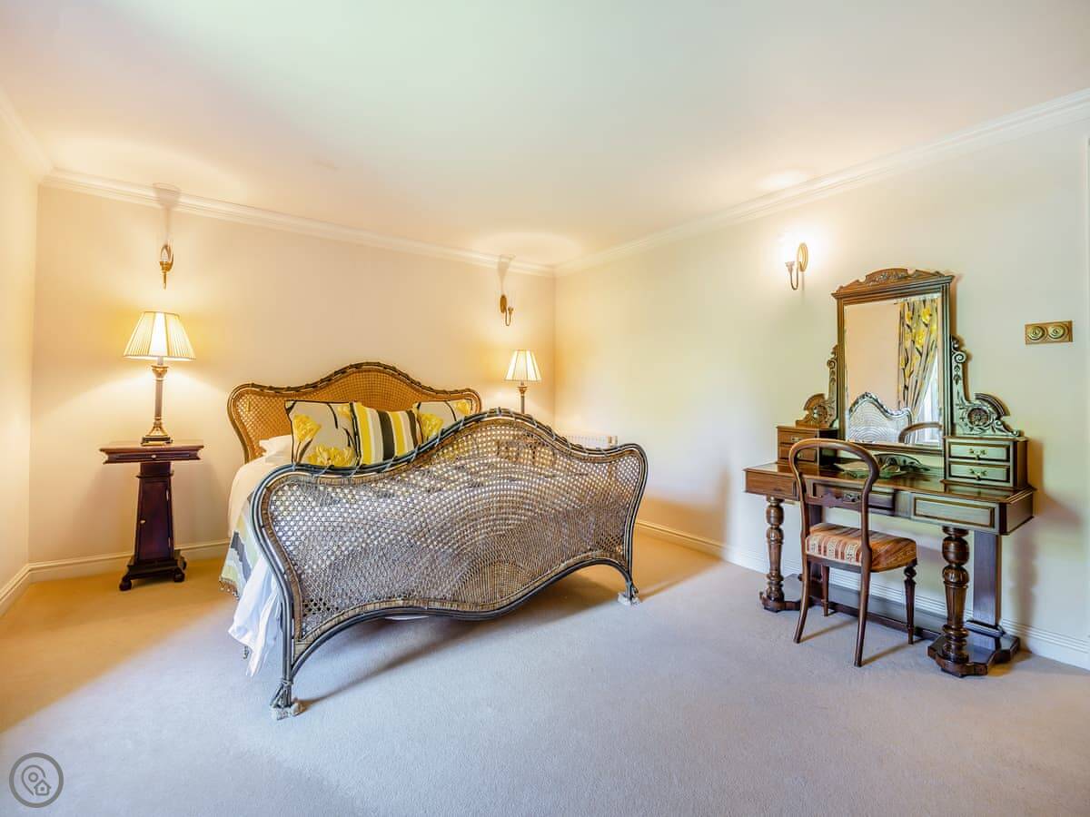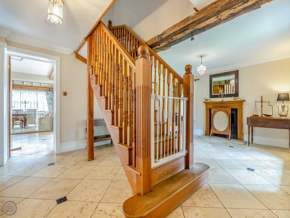 It sleeps twelve. That's five bedrooms and four bathrooms. It's a 4 Star property, so everything is in good order. It's been done up in a country style with oak beams and floors.
