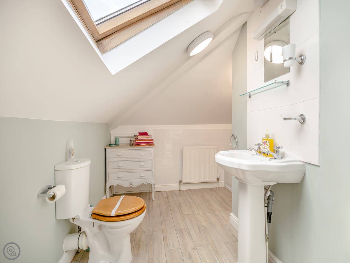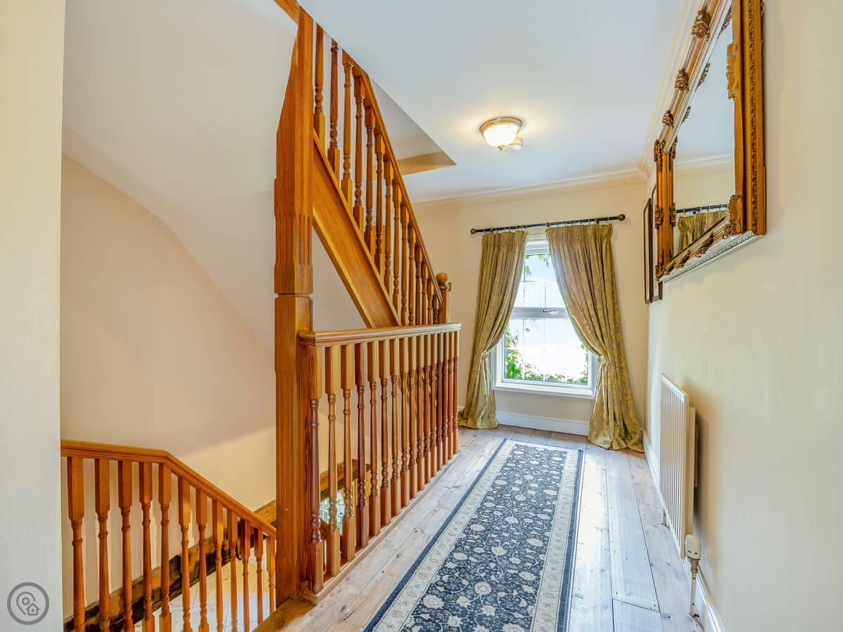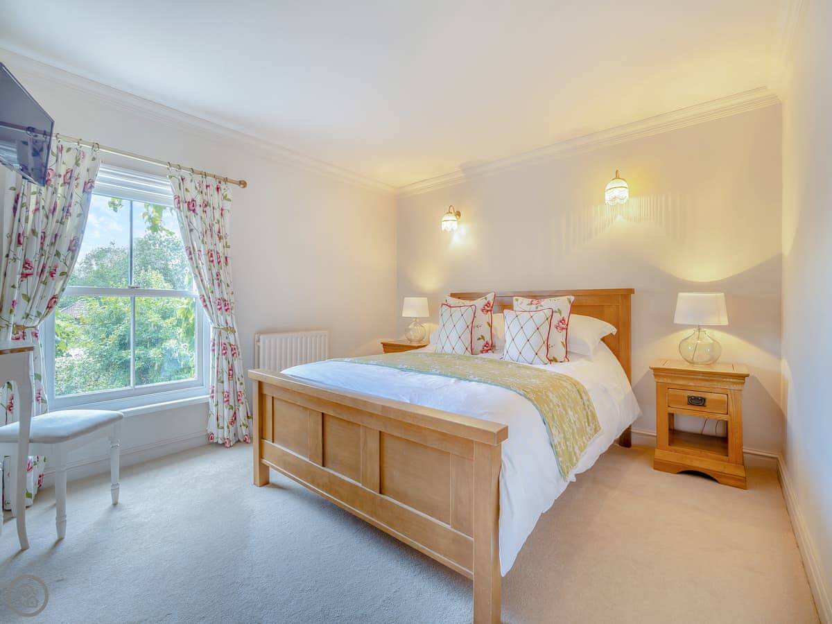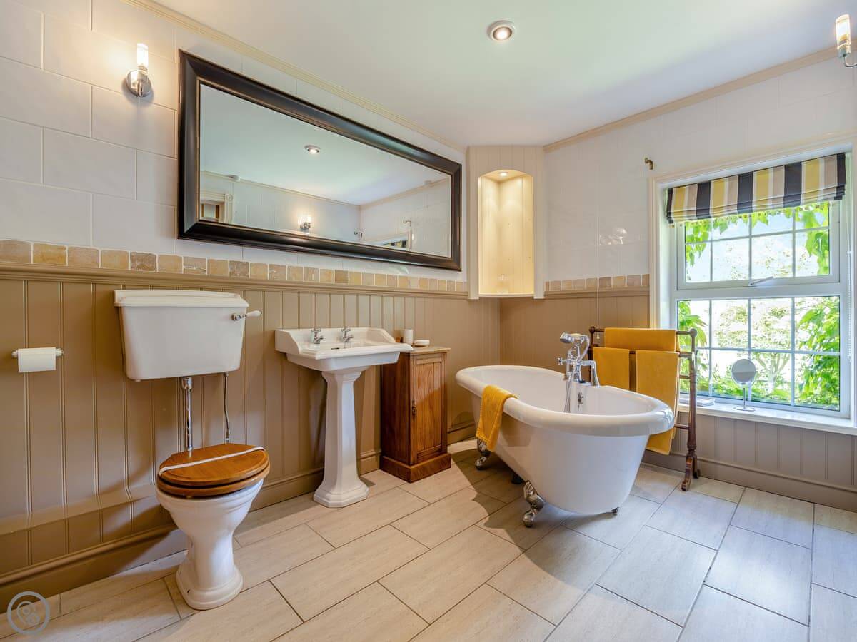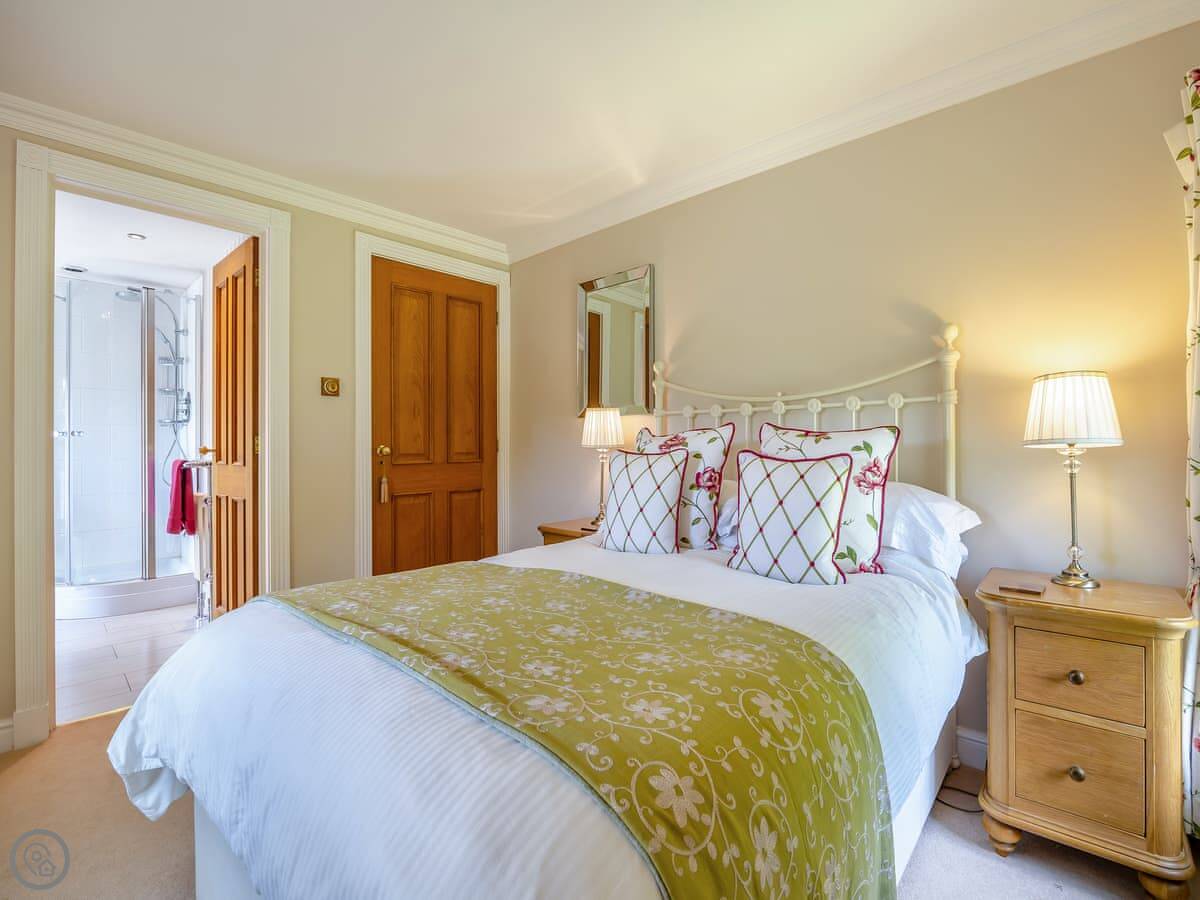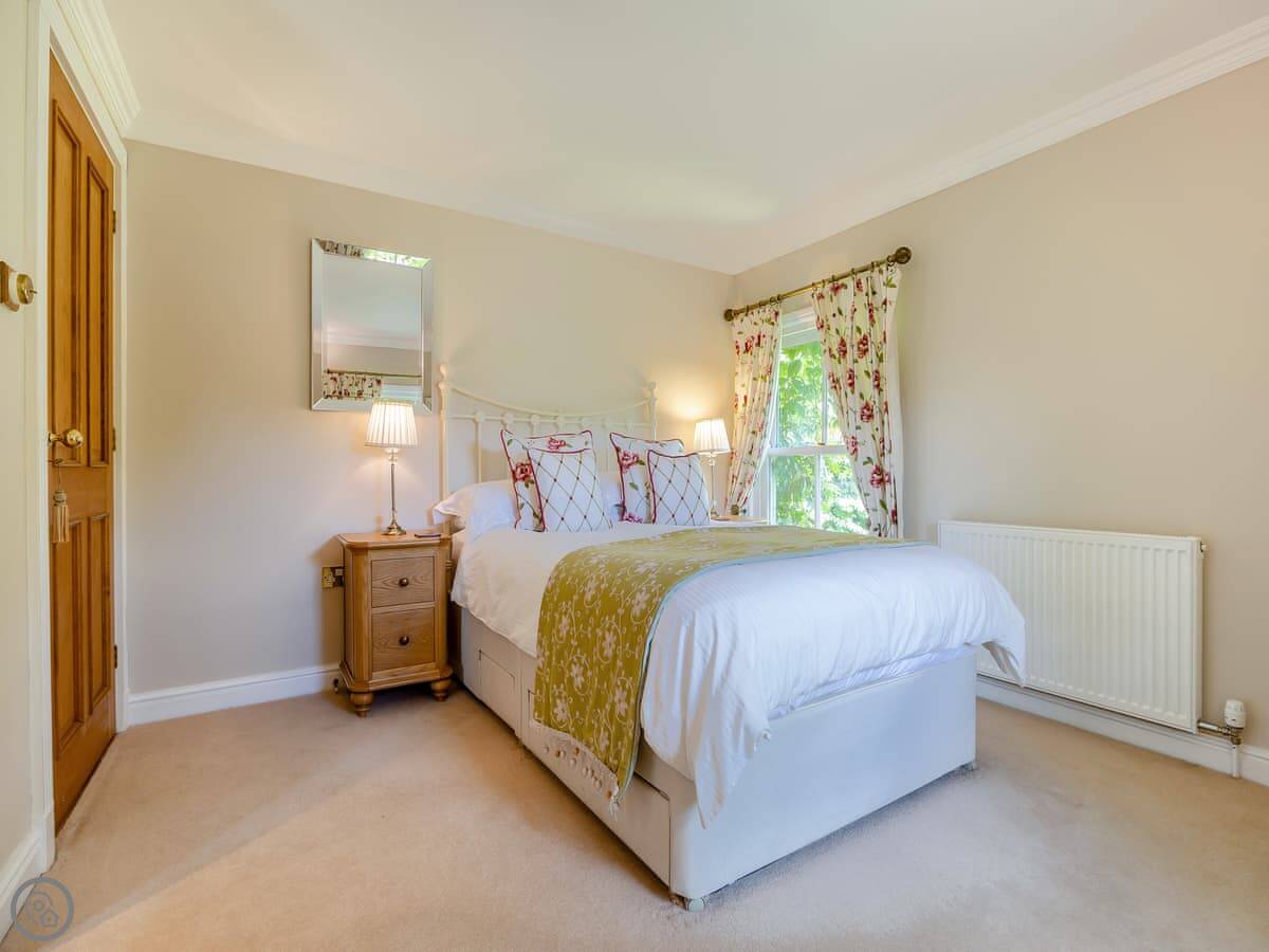 It sleeps twelve. That's five bedrooms and four bathrooms. It's a 4 Star property, so everything is in good order. It's been done up in a country style with oak beams and floors.