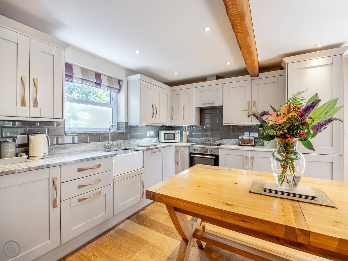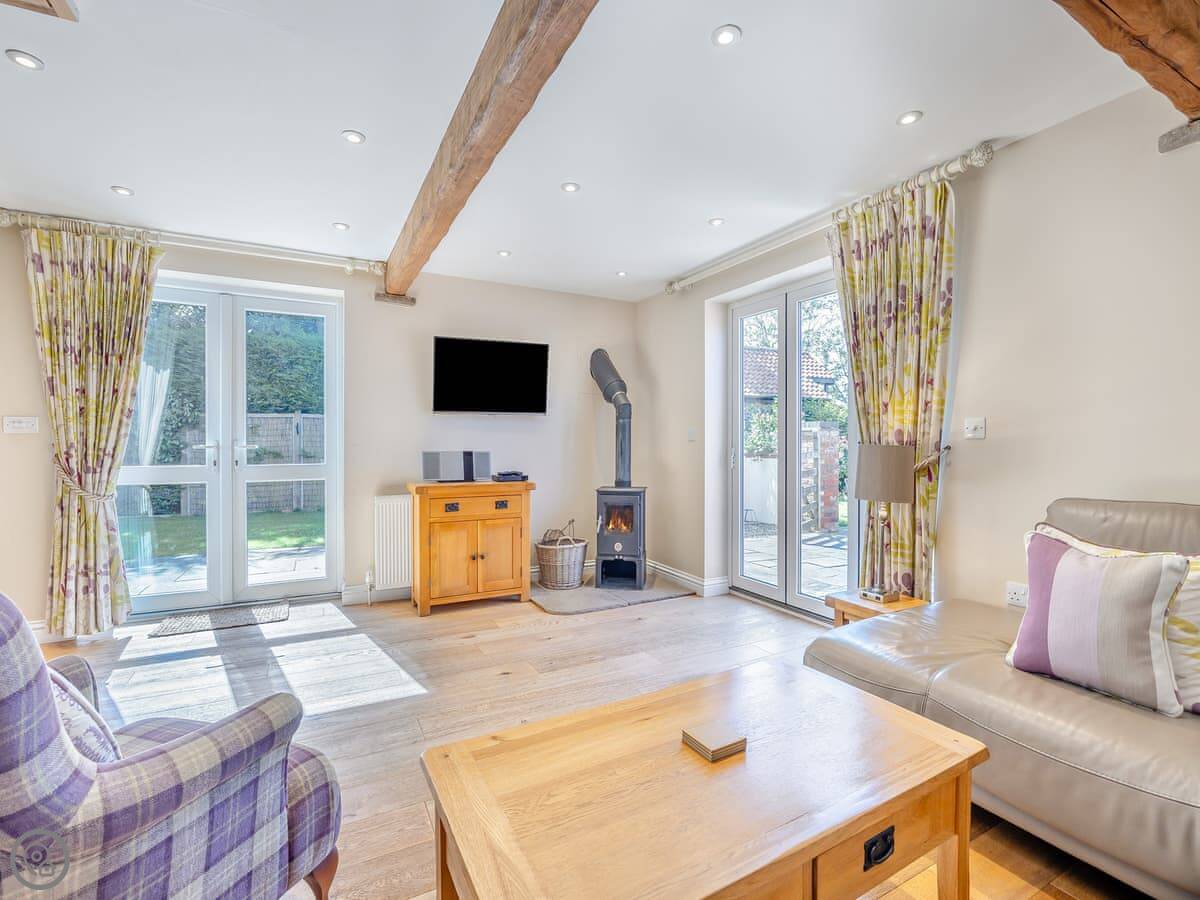 There's a wood burner in the living area. We provide the first basket of logs. The garden is private and fully enclosed, so it's safe for dogs and kids. There's a shared hot tub on site that you can book directly with us for a fee during your stay.