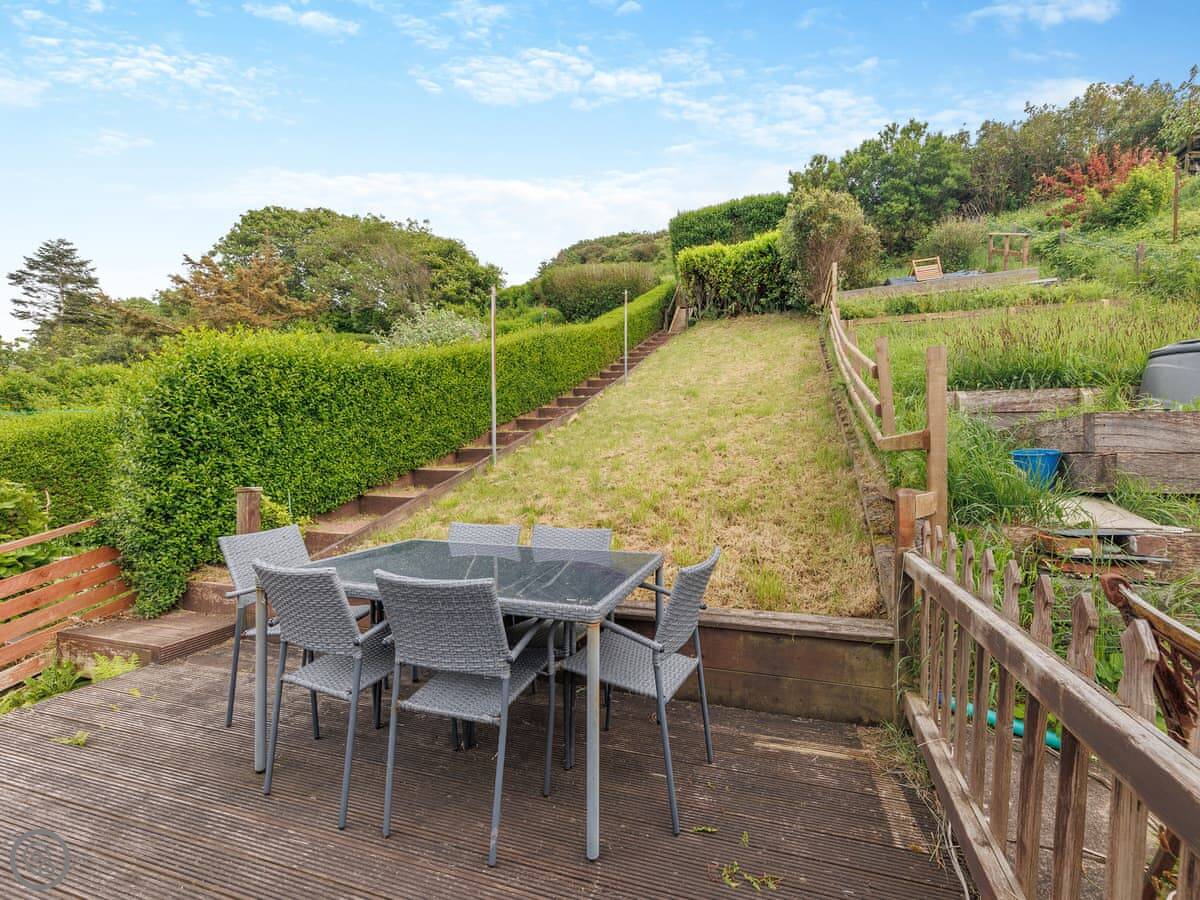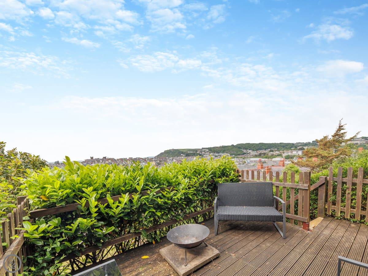 Outside at the back there's a small lawned area and a terrace with a table. That's where the best view is. The garden is enclosed.