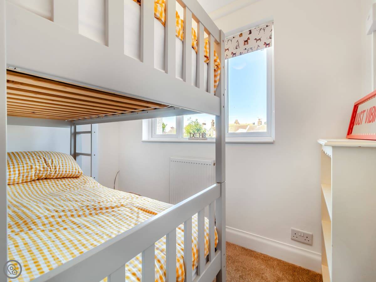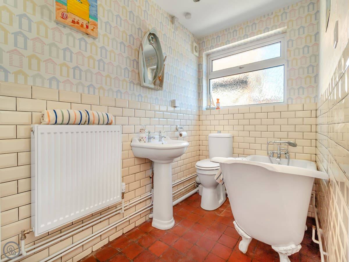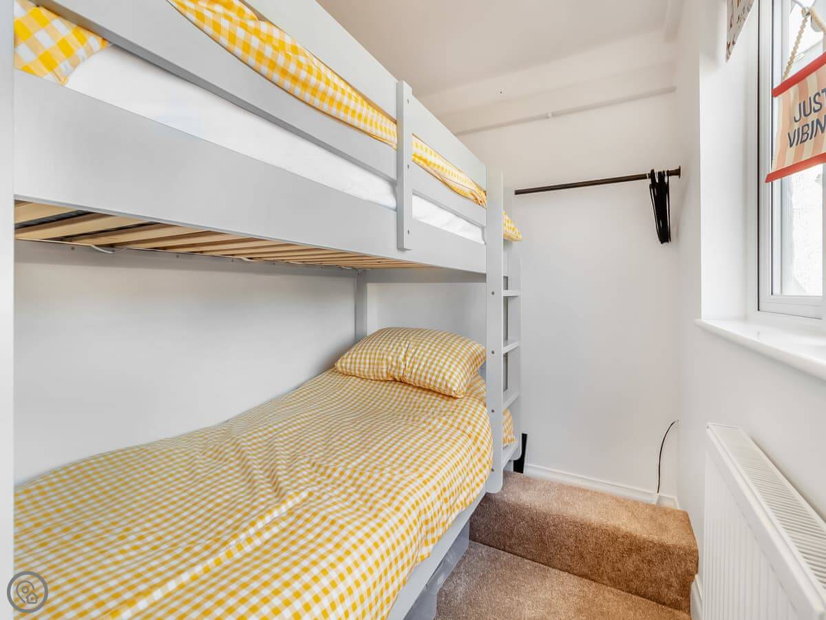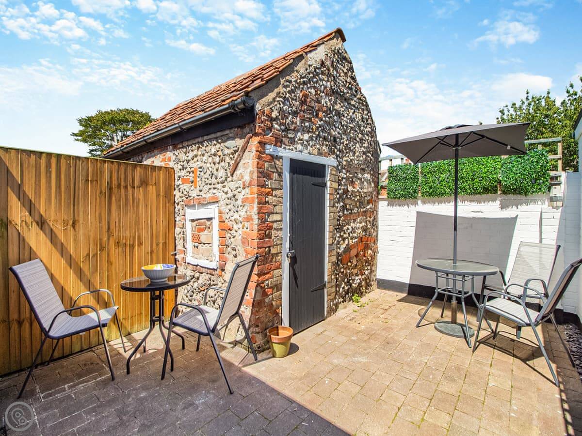 The back garden is private, with a patio. It's sheltered, which is handy as it can be breezy on the front. The stairs are quite steep, typical for a cottage this age.