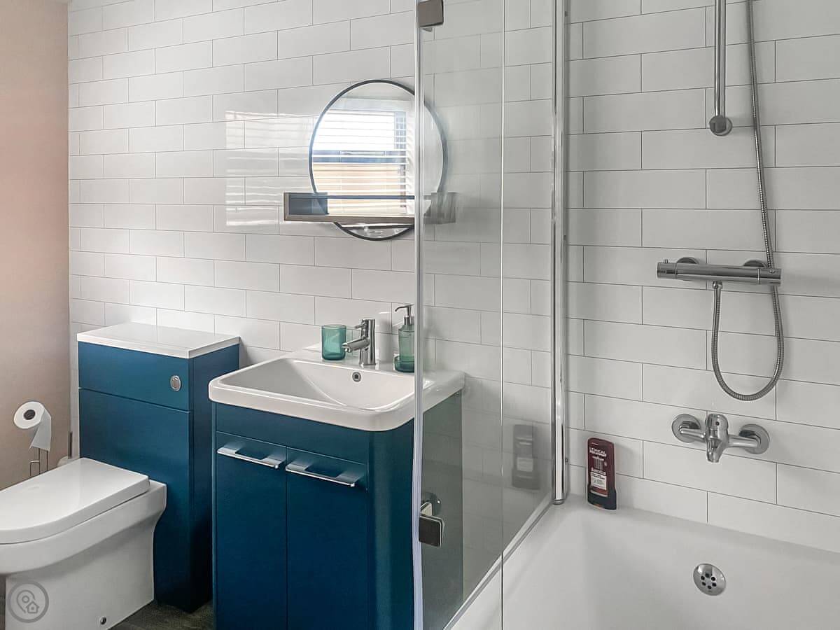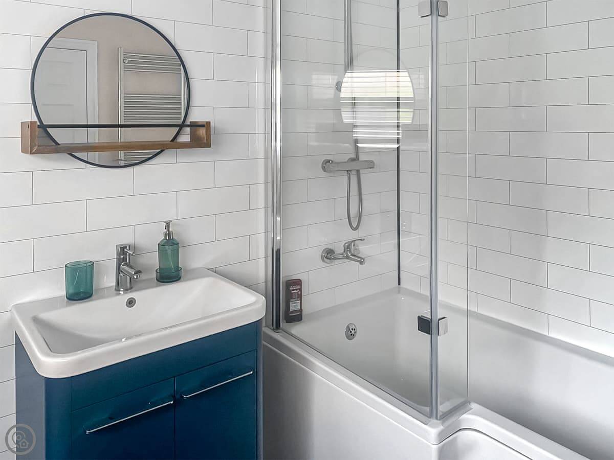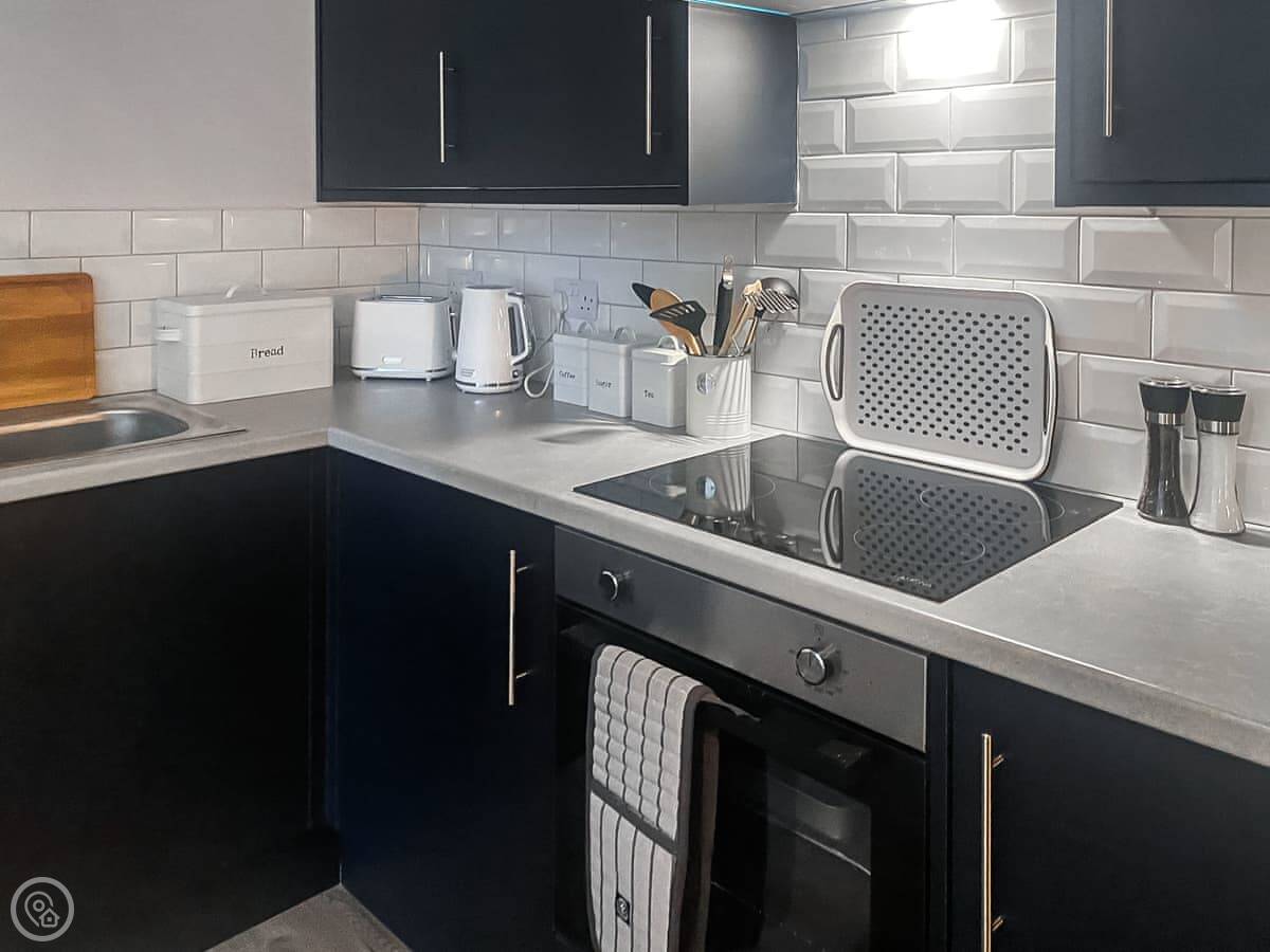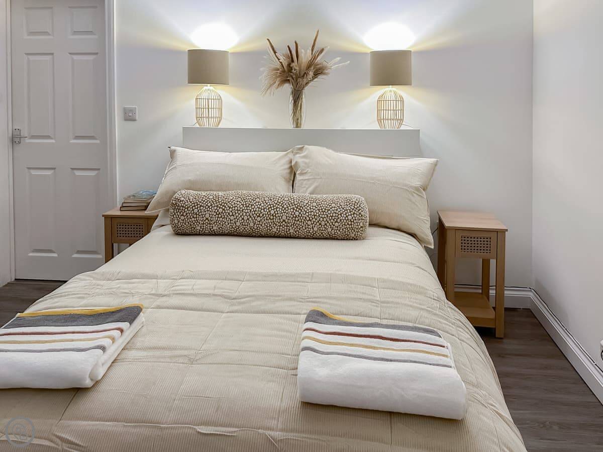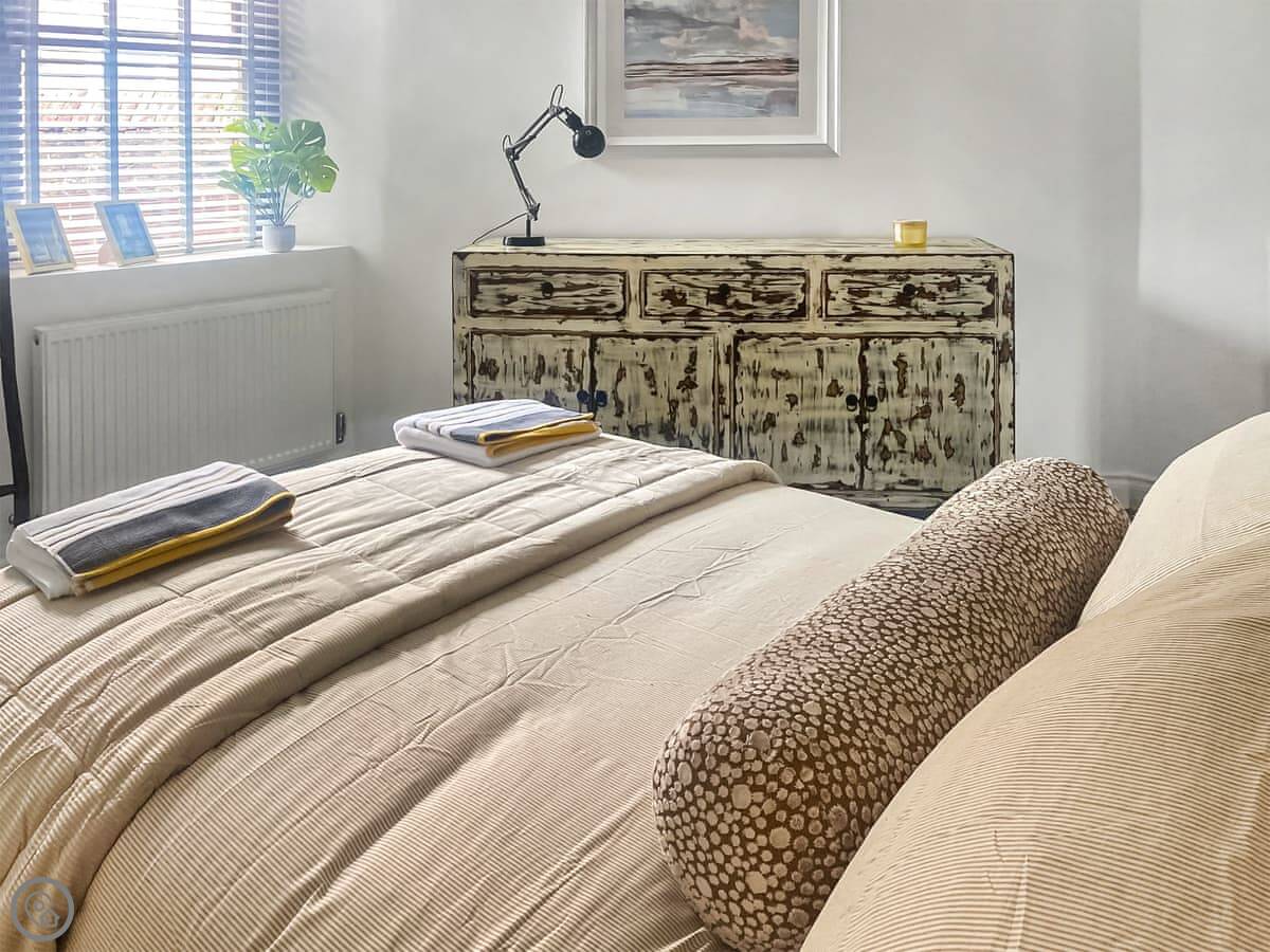 It's about a ten-minute walk into the town centre. You can leave the car. The bedroom is a good size and the bathroom is large. The living area is open-plan with the kitchen.