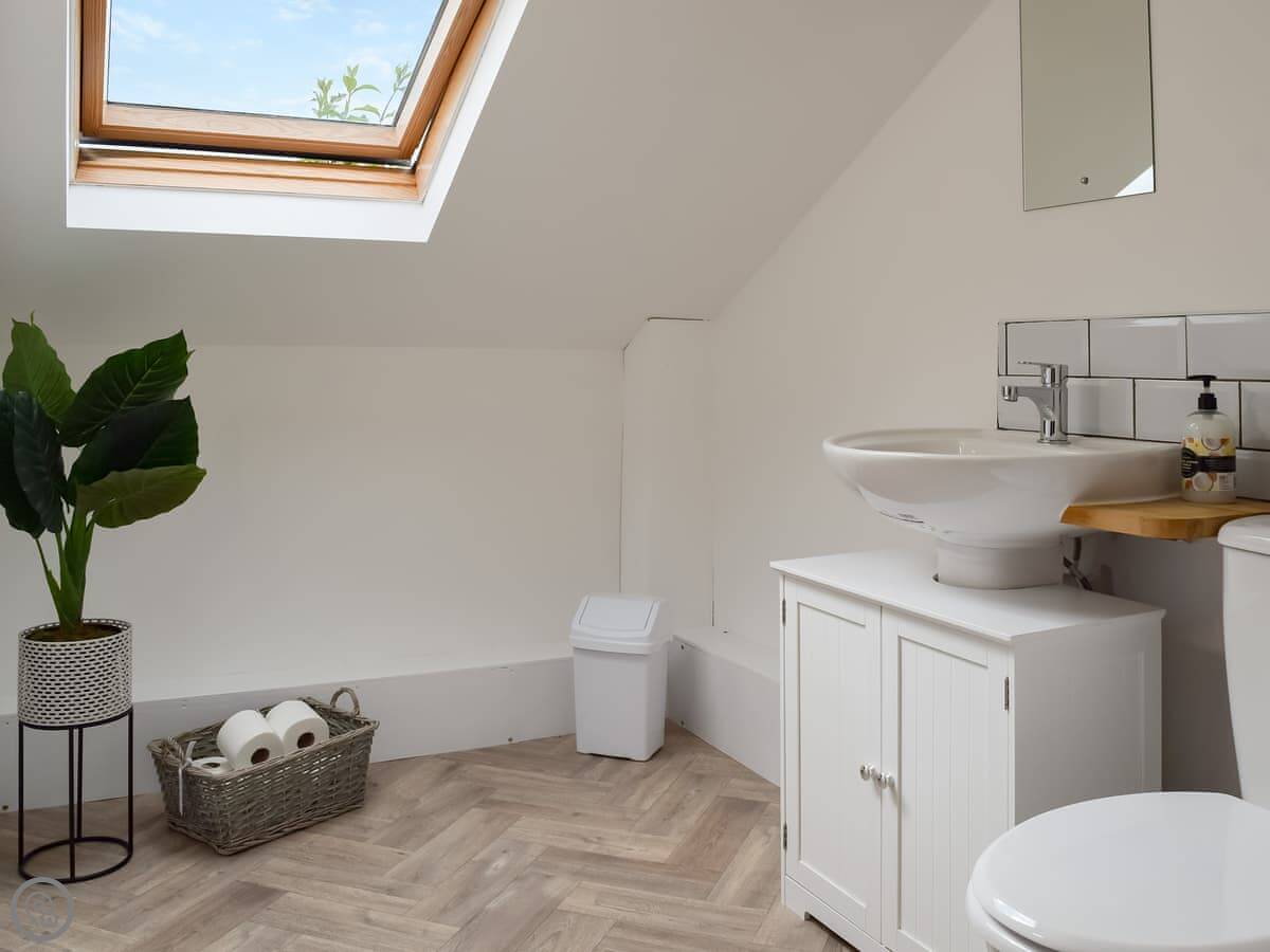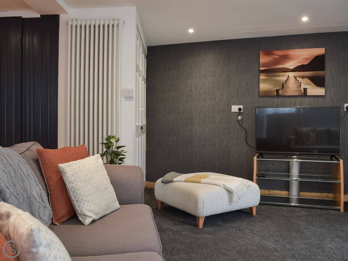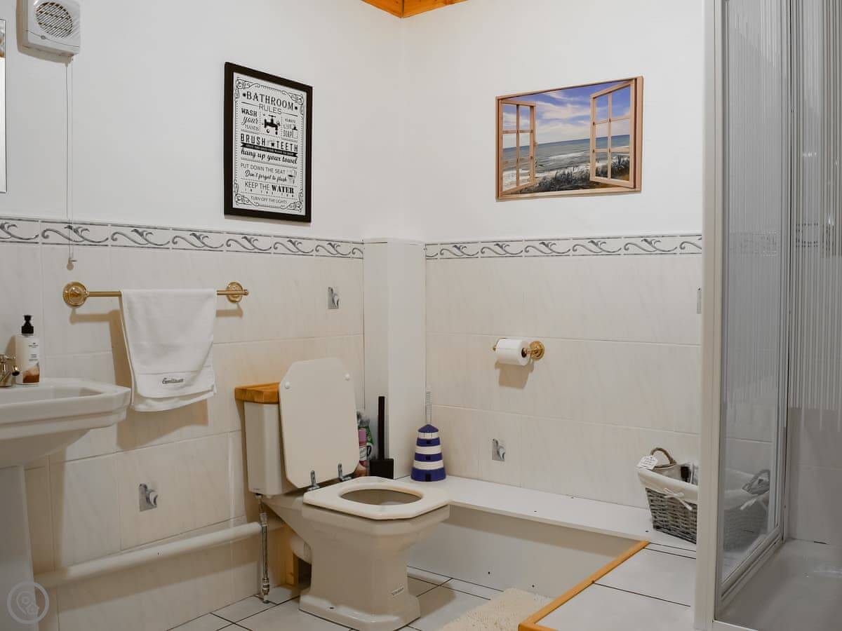 It sleeps five. There are two bedrooms upstairs, one double and one single. The sofa in the living room pulls out into a double bed. One bathroom, it's a shower room, on the ground floor. There's a separate loo as well. It's got a 4 Star rating. It's clean and comfortable.