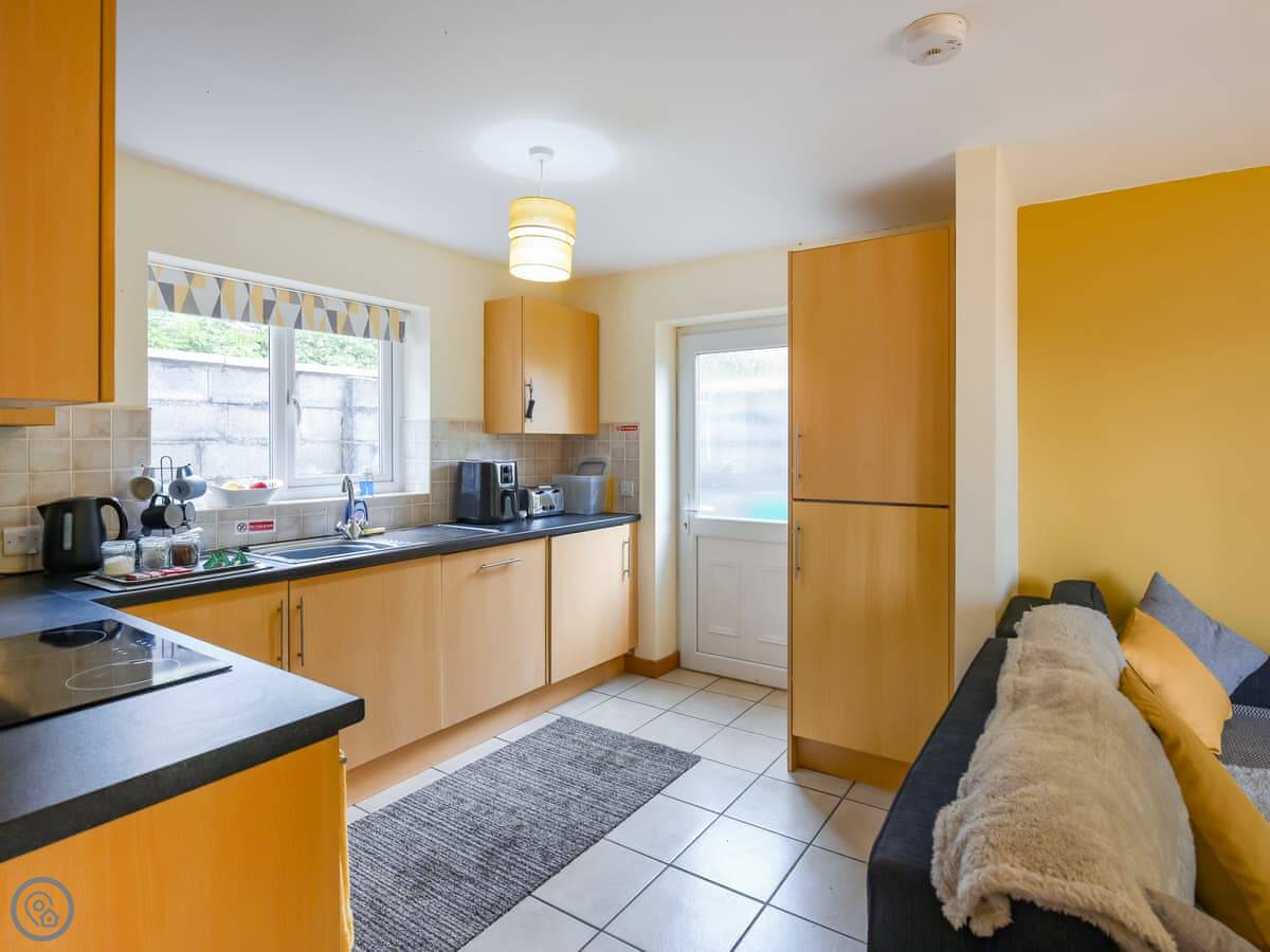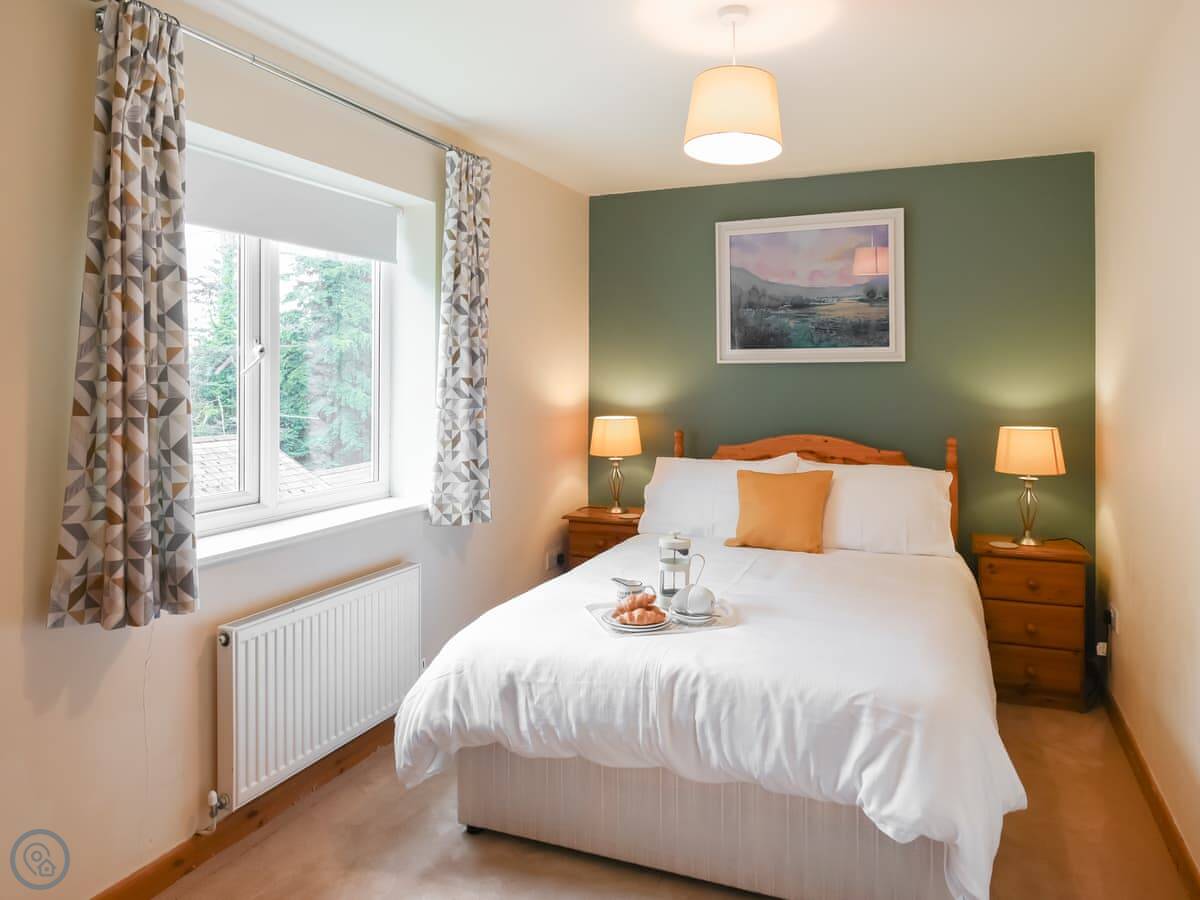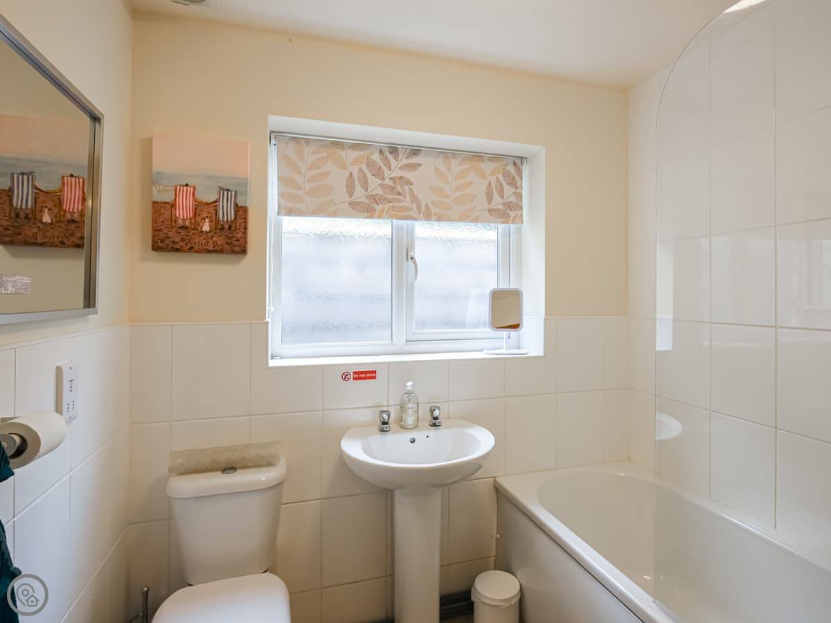 It sleeps four, in two bedrooms. One double and one twin. There is also a bed settee in the lounge if you need a fifth spot. The bathroom has a full-sized bath with a shower over it. The place has a 4 Star rating, which means it's comfortable and well-equipped. It's clean and tidy.