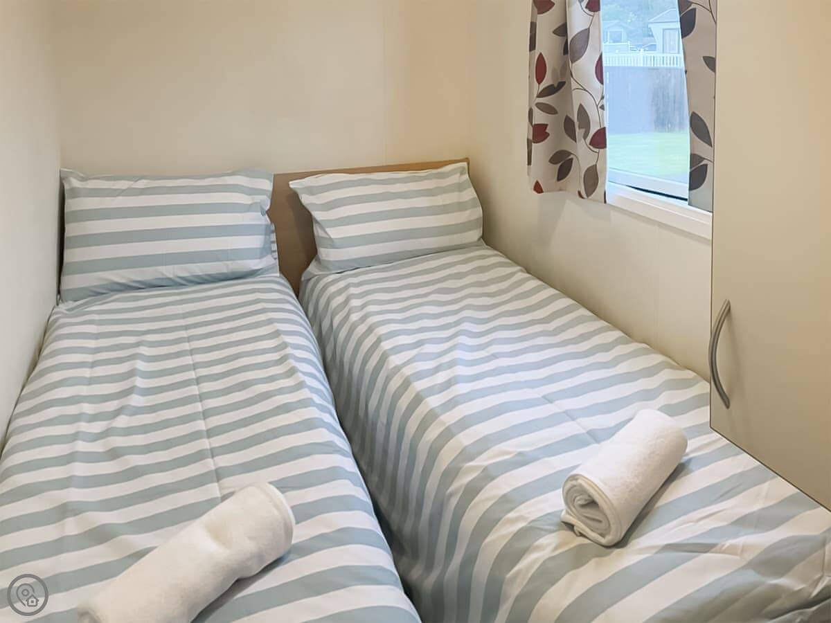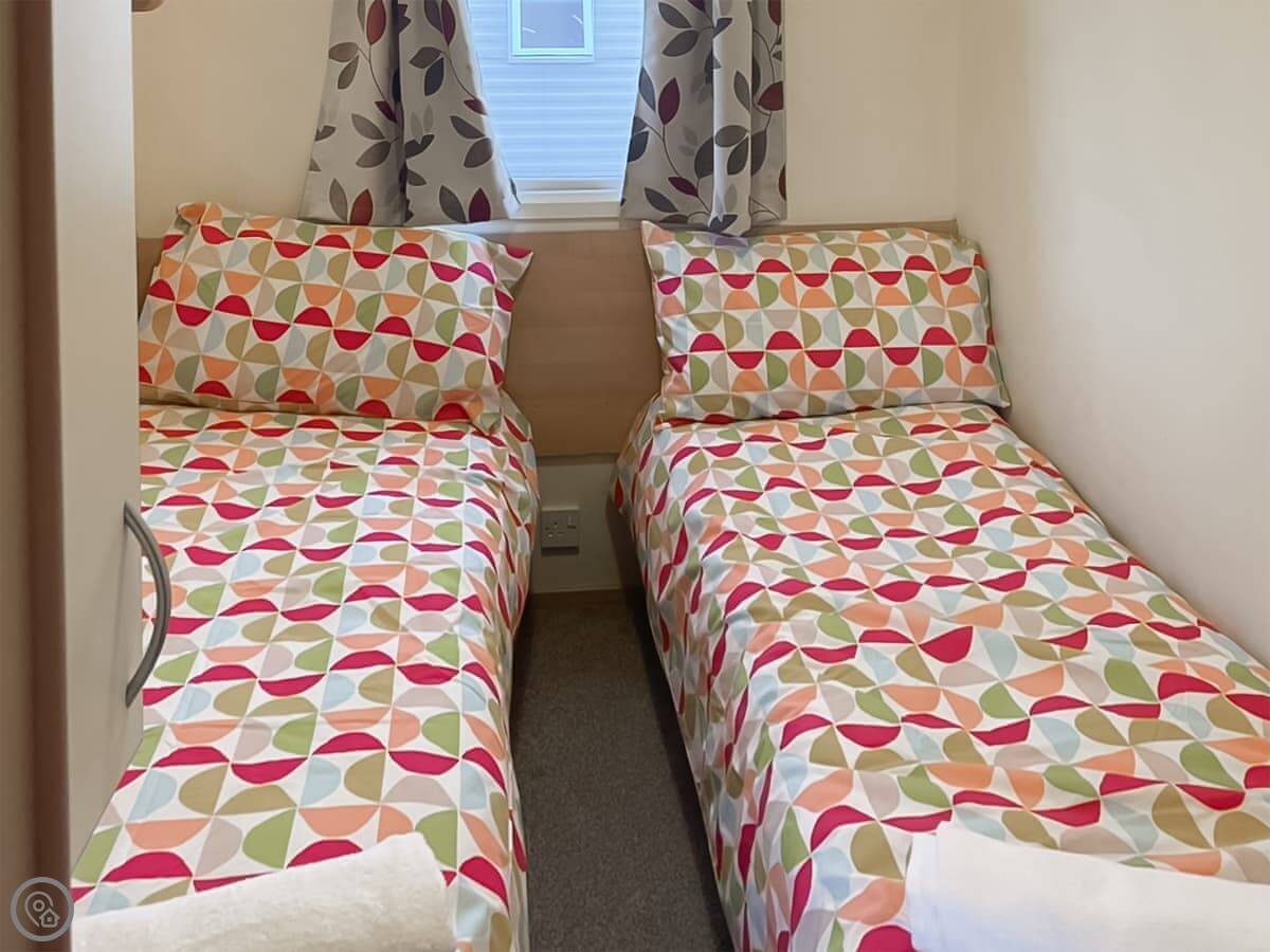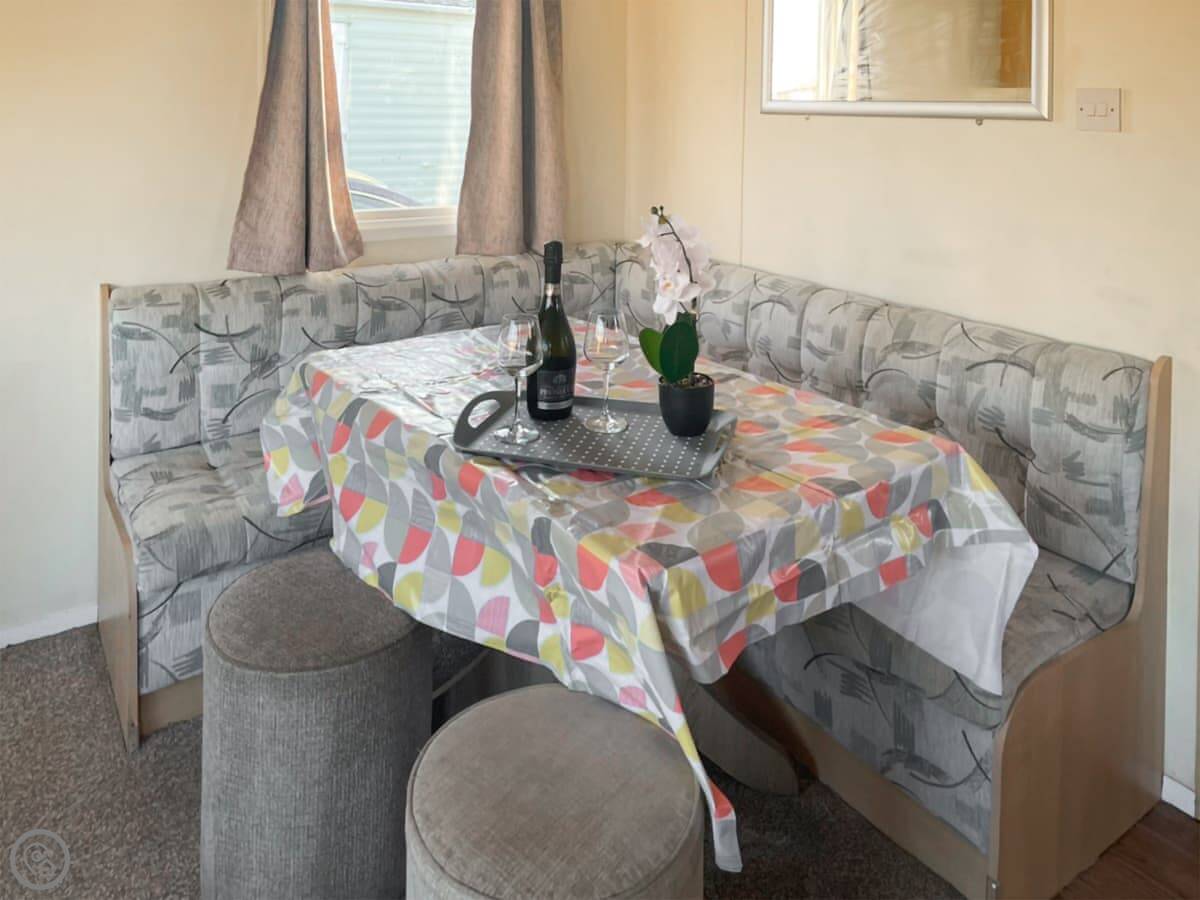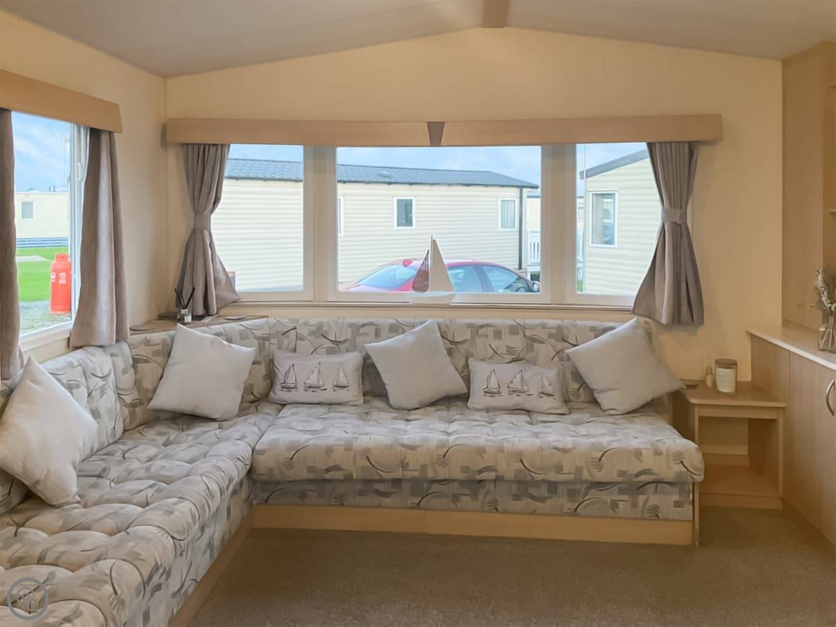 Sea Breeze is a mobile home on a holiday complex in Middleton, just outside Heysham. It's detached, so you've got your own bit of space around it. It sleeps six, in three bedrooms. There's a double and two twins. One bathroom with a shower and a separate WC.