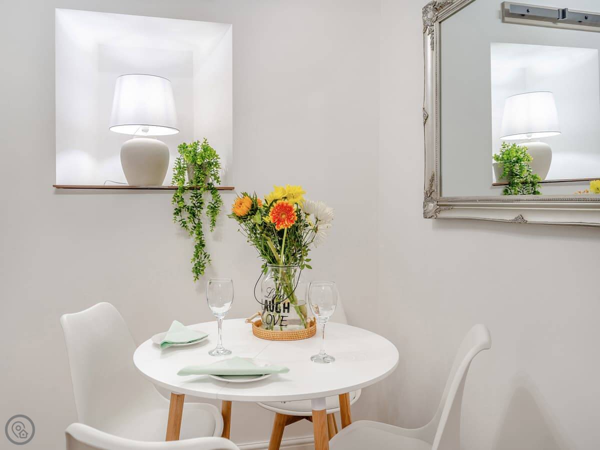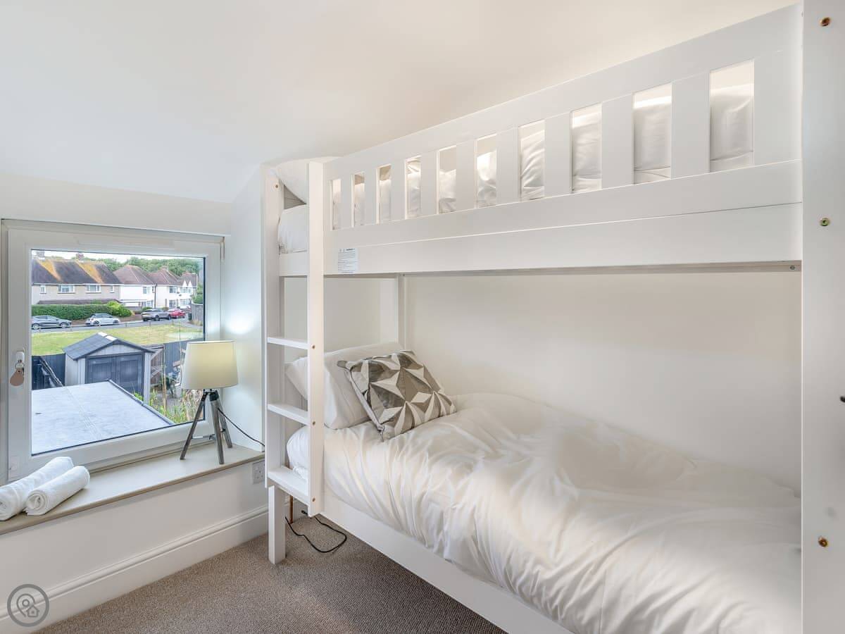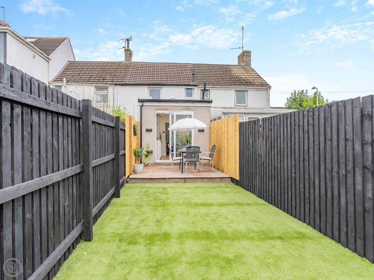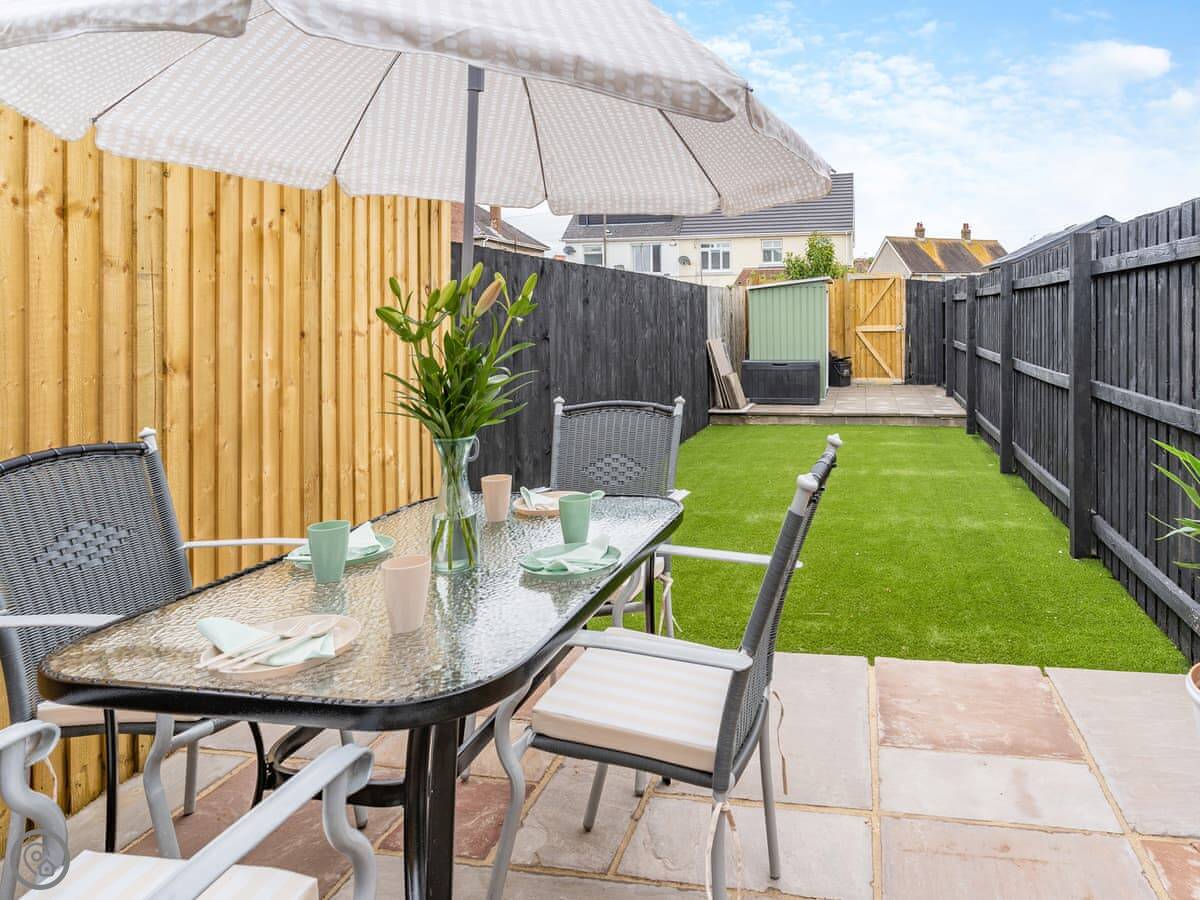 Outside, there's an enclosed garden at the back with a patio and a barbecue. You can park on the street right behind it. It's not right on the seafront, but the beach and the town centre are just a short walk away.