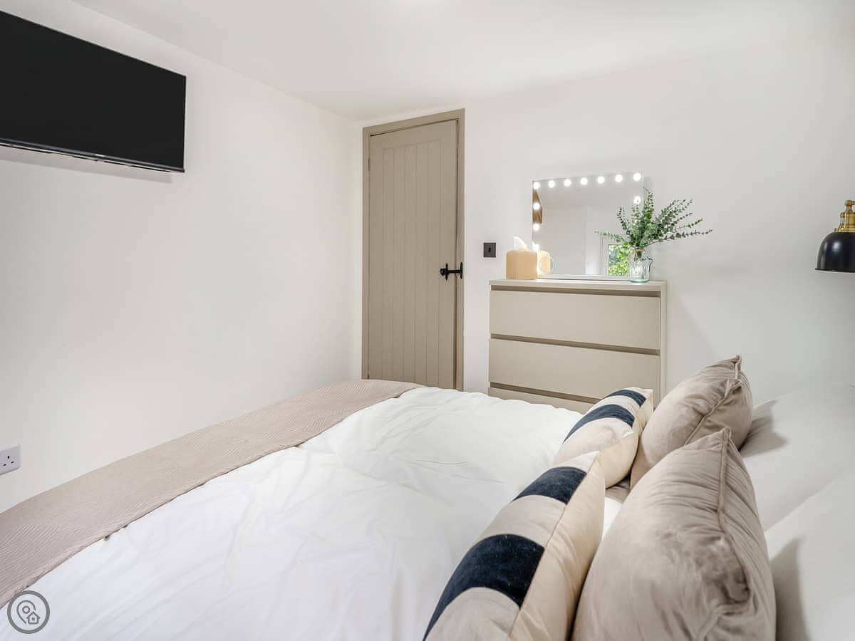 Inside, it's got a washing machine, a TV, and WiFi. Bedding and towels are included. There's a cot and a highchair if you need them.