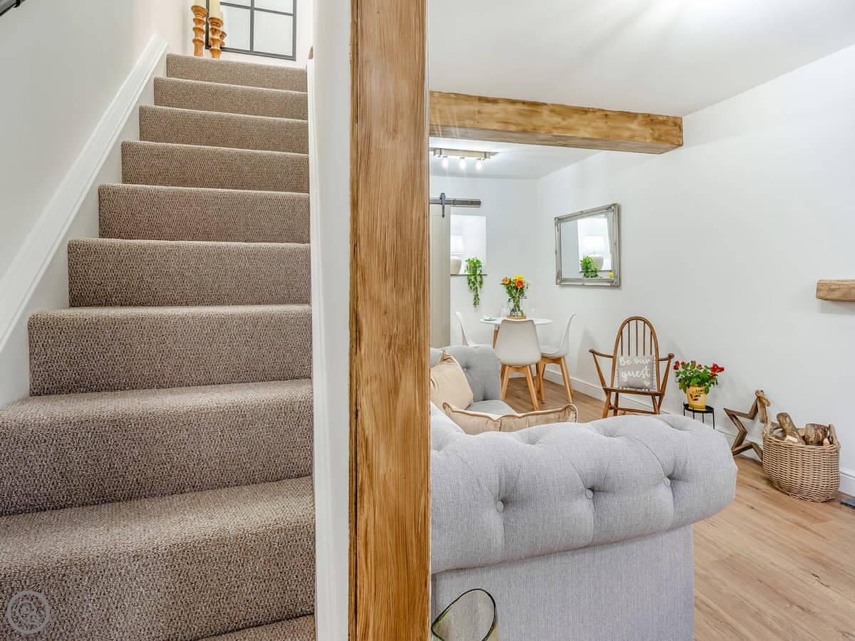 It's a small place but nicely done. There's a woodburning stove for cooler evenings and the kitchen has a glass roof panel which lets in a lot of light. The stairs are a bit steep, as you'd expect.