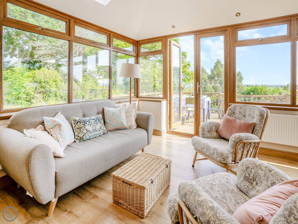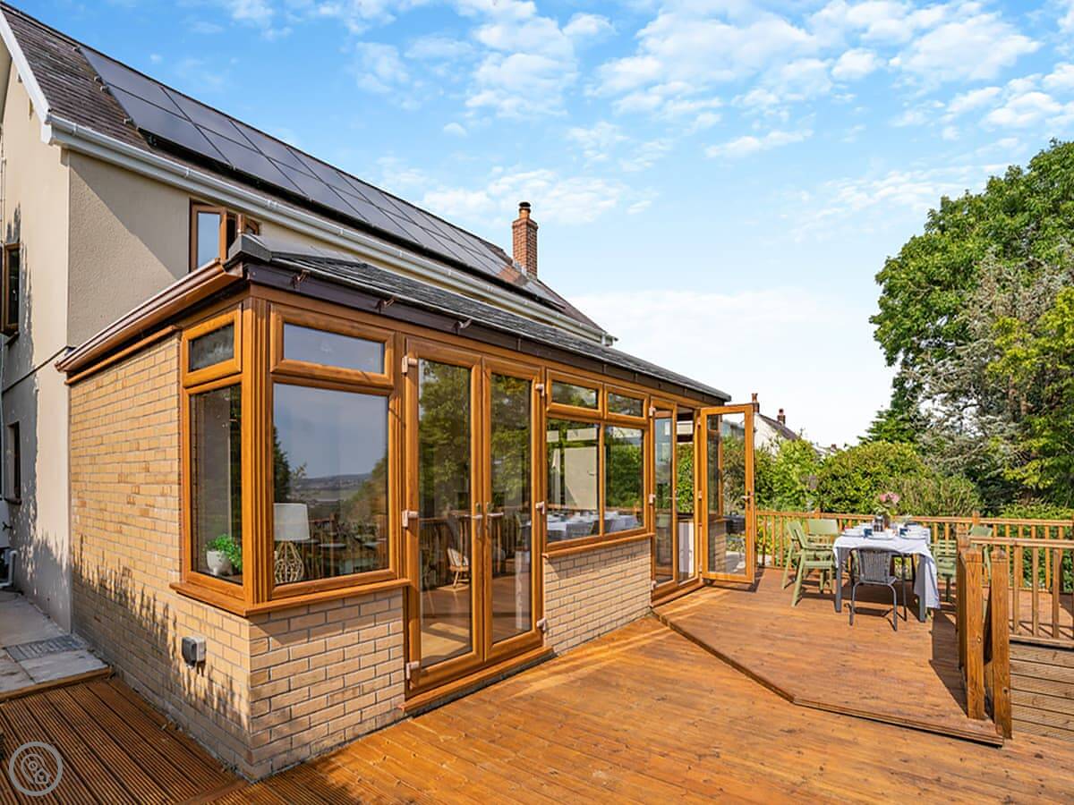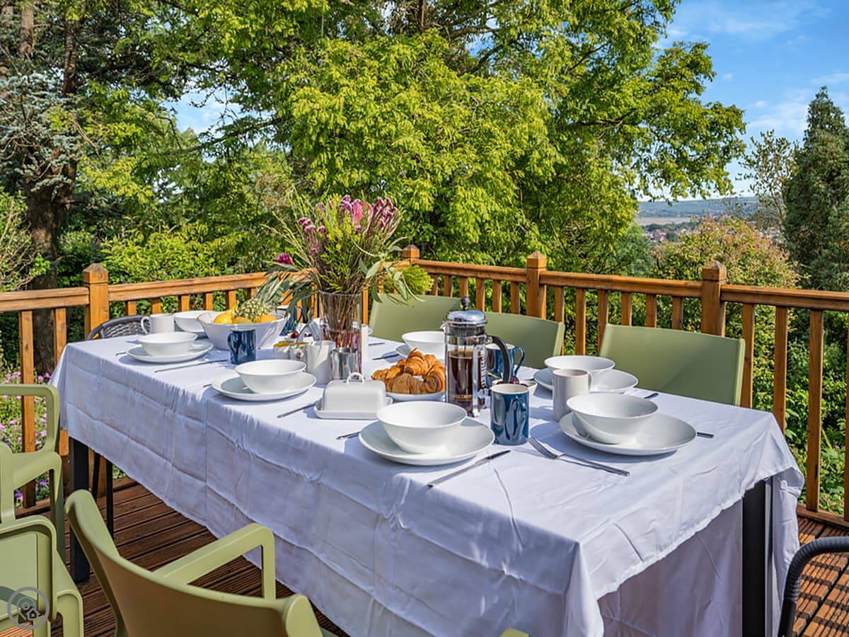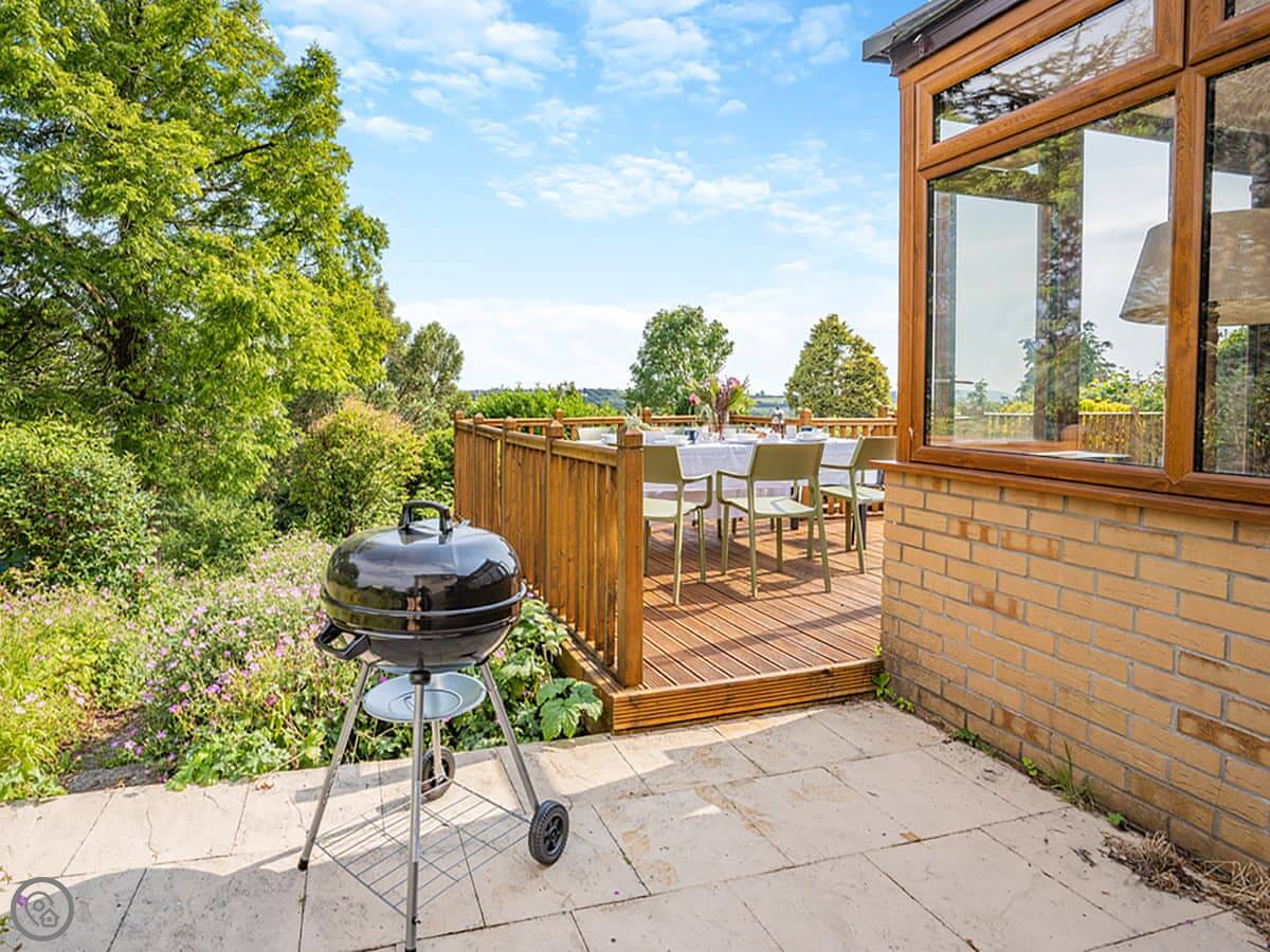 There's a big deck with a table outside. The garden is enclosed. The driveway takes two cars and there's a garage too. You can put bikes or kit in there.