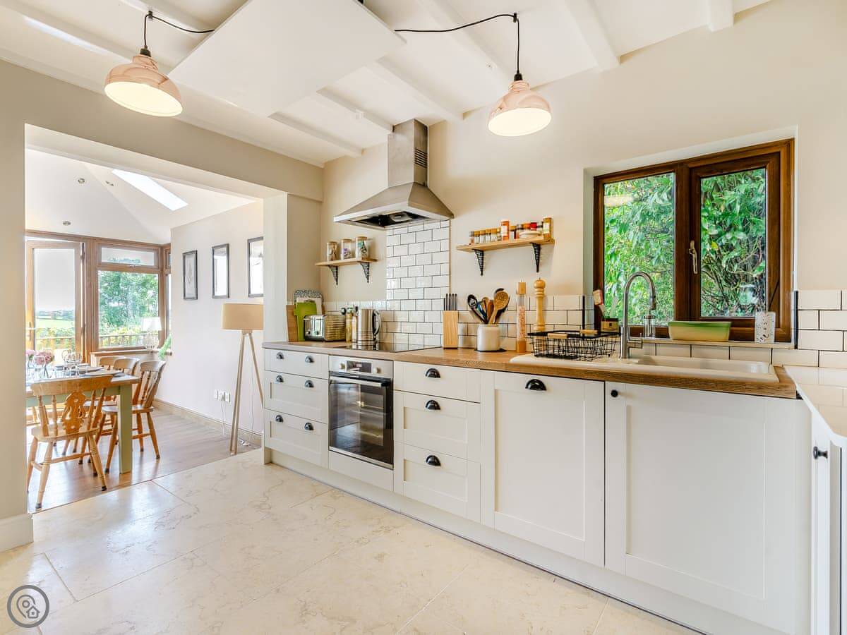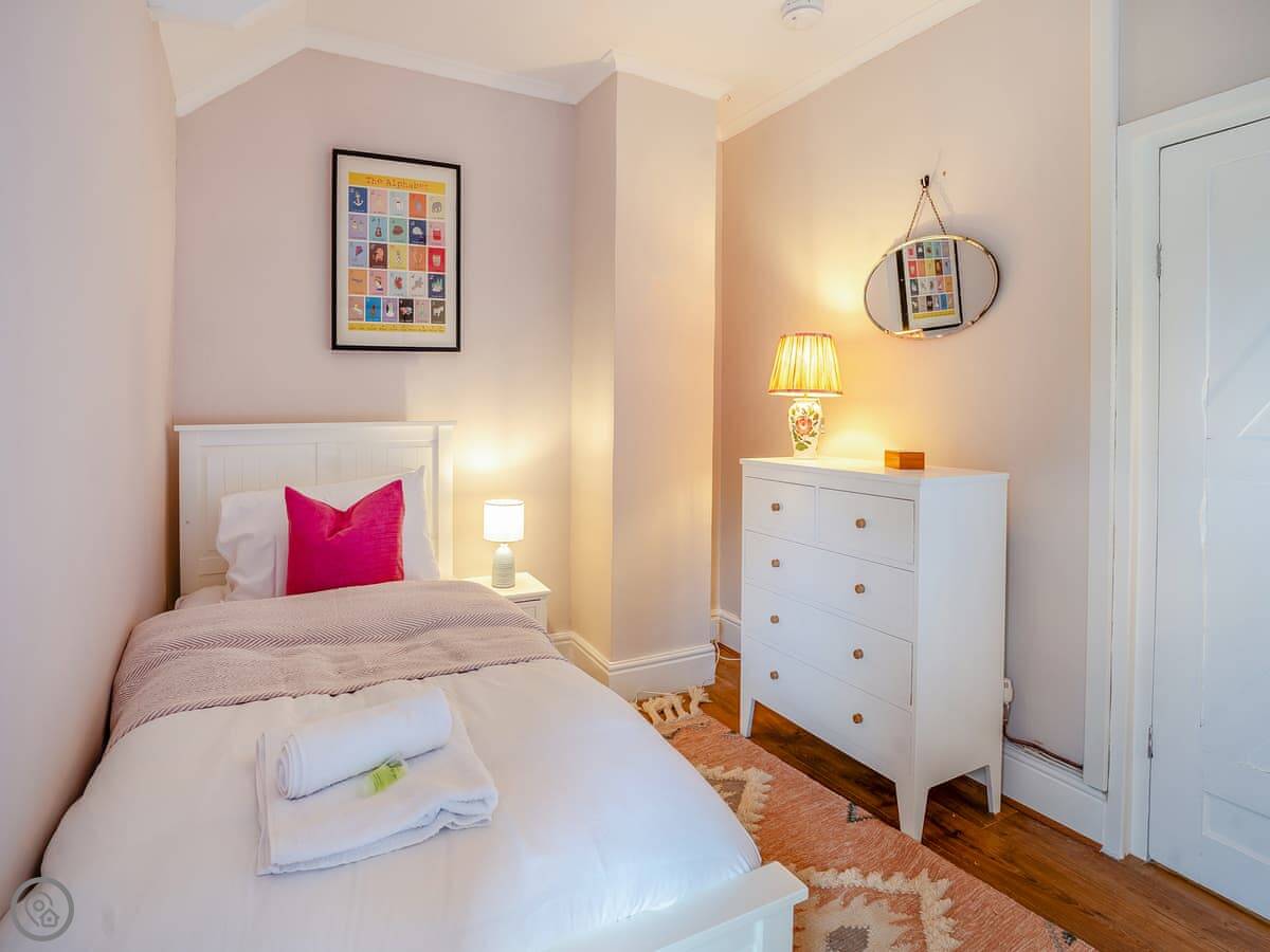 It sleeps eight. Four bedrooms, two bathrooms. One bathroom is downstairs. It's a 5 Star place, which means it's been done up to a high standard. Everything's new and it feels spacious.