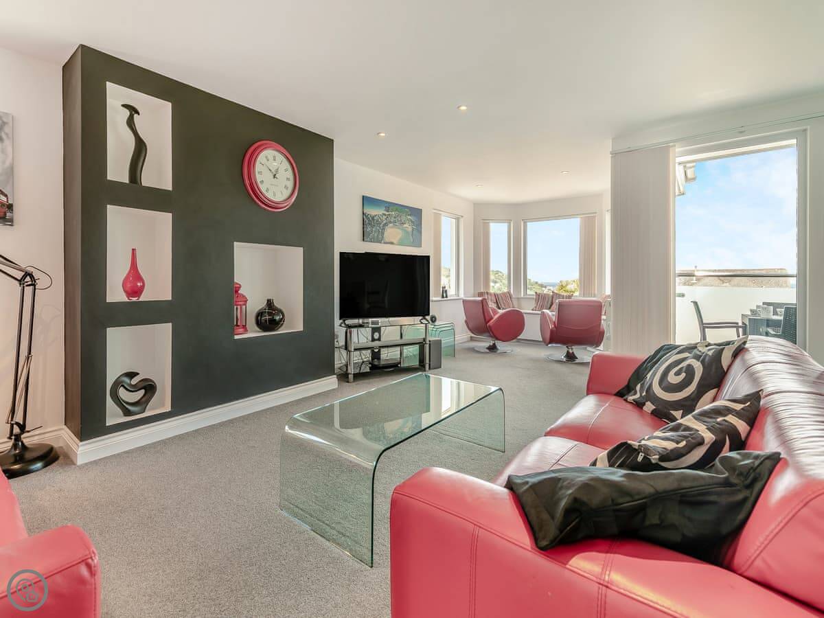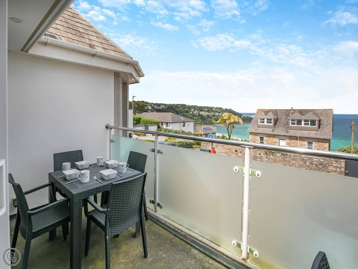 Chapel View is in Carbis Bay, just outside St Ives. It's a detached house set back from the road on a bit of a slope, so you get a clear view over the bay. You can see the sea from most of the upstairs rooms.