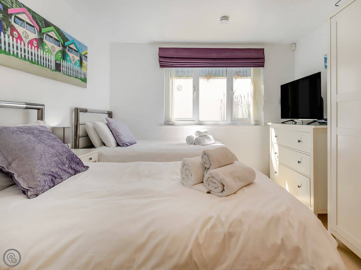 Carbis Bay beach is a short walk down the hill. It's sheltered, so the water is often calmer than at St Ives. From there, you can walk the coast path into St Ives. Driving into St Ives in summer is difficult, so it's easier to walk or get the train. The station is nearby and it's about three minutes on the train.