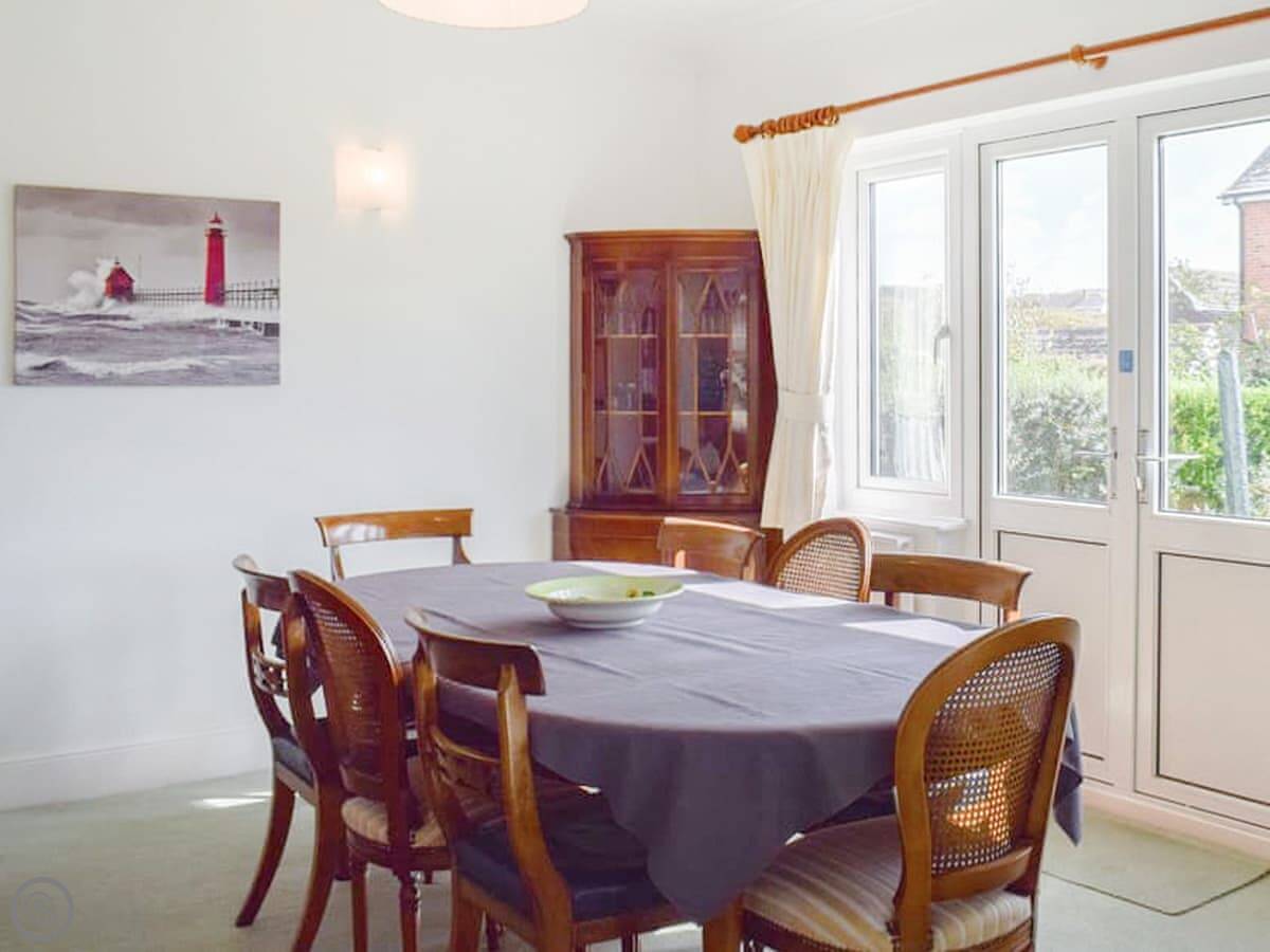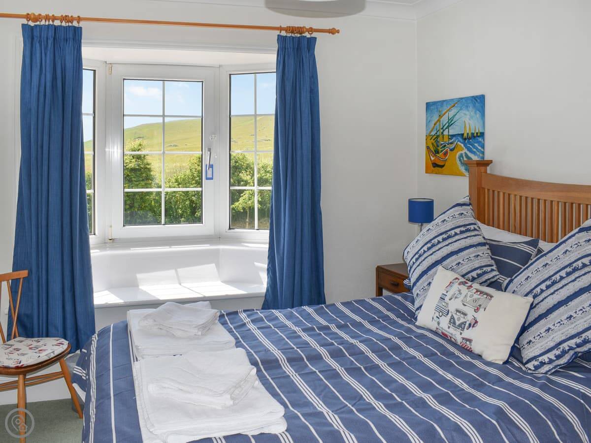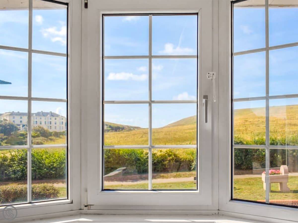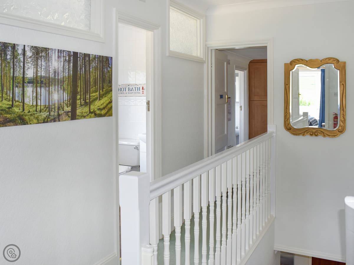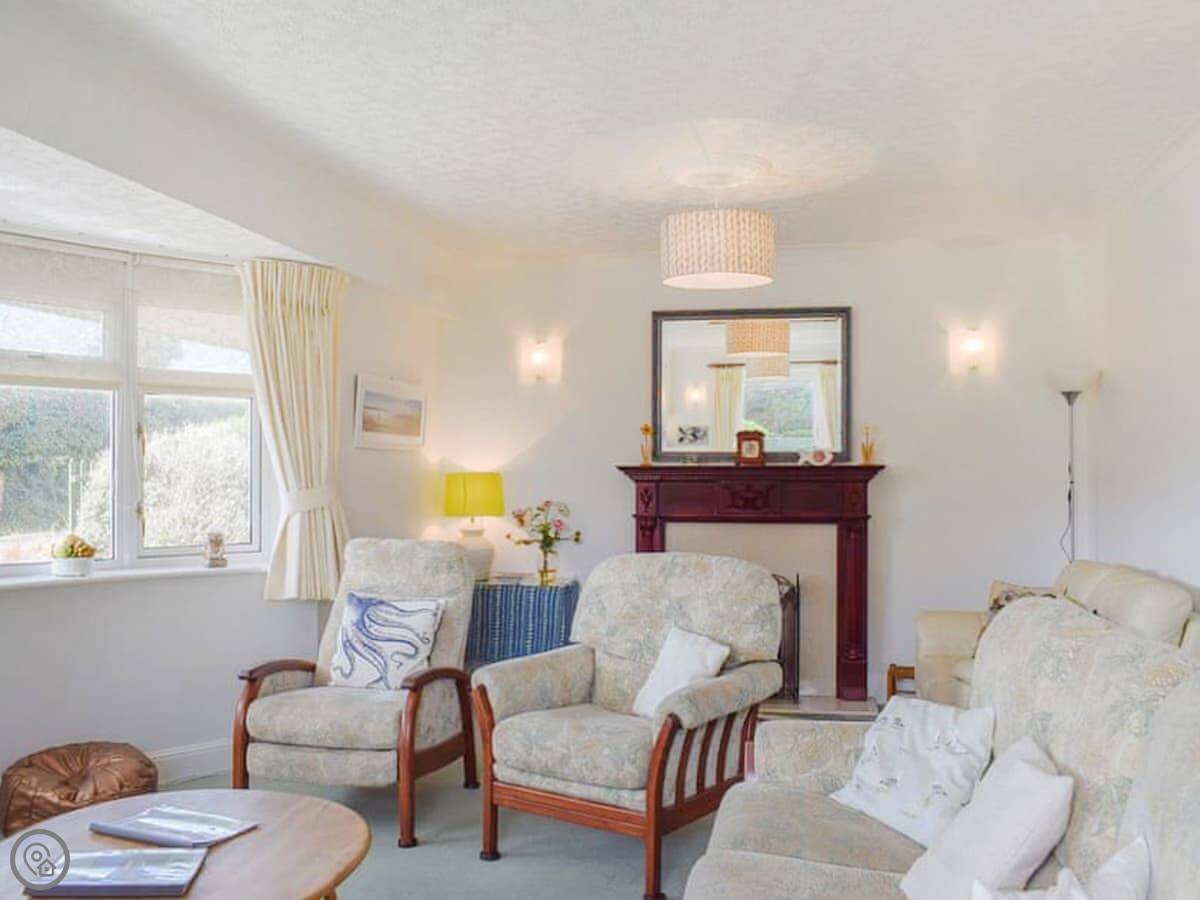 Inside, the front room has a baby grand piano. It's tuned and you're welcome to play it. The furniture is a mix of styles. The bedrooms upstairs have views, some over the downs and you can see a bit of the sea from the front ones.