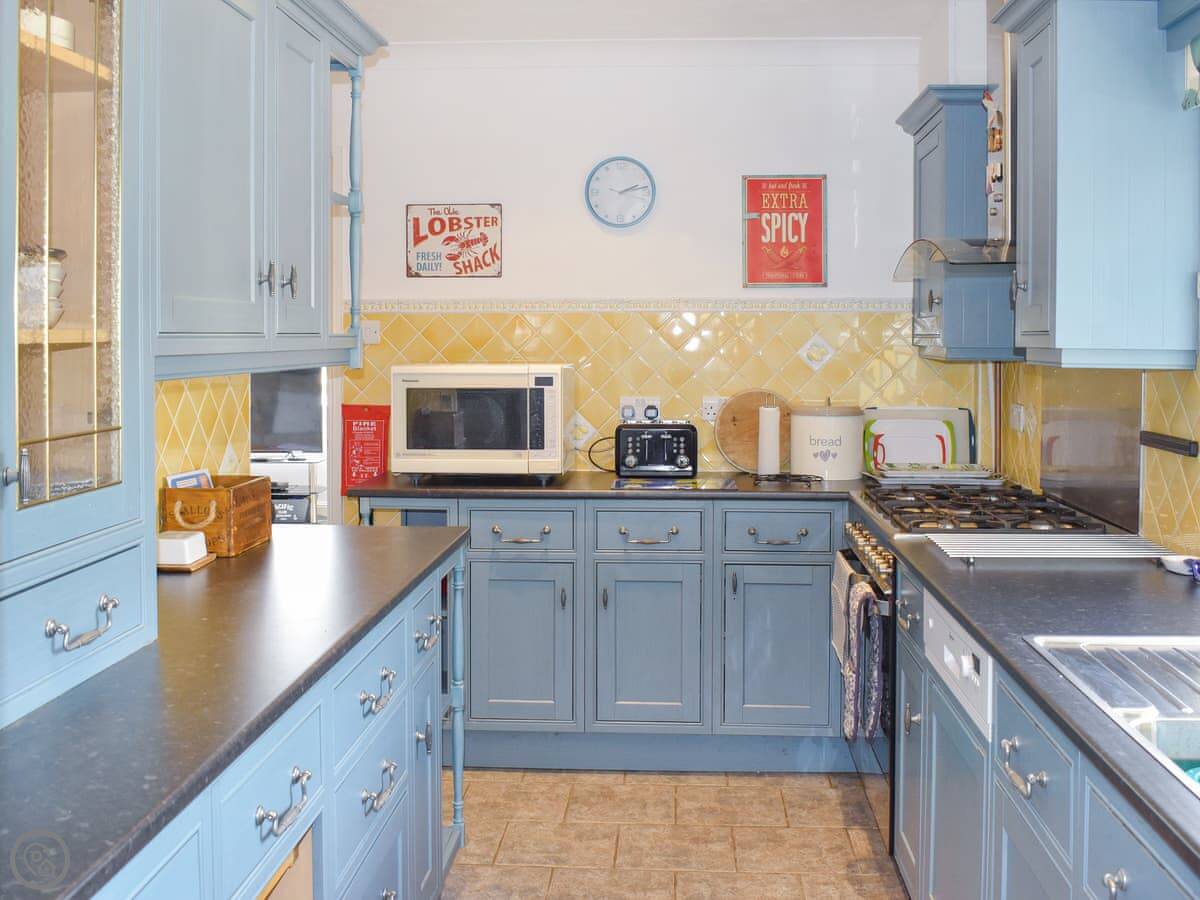 It's a big place, sleeps eight in four bedrooms. There are two bathrooms. It's got the full five-star rating, so everything's been looked after to a high standard. The garden at the back is a good size. There's furniture and some games out there, plus a patio area at the front. You can park on the drive at the side.