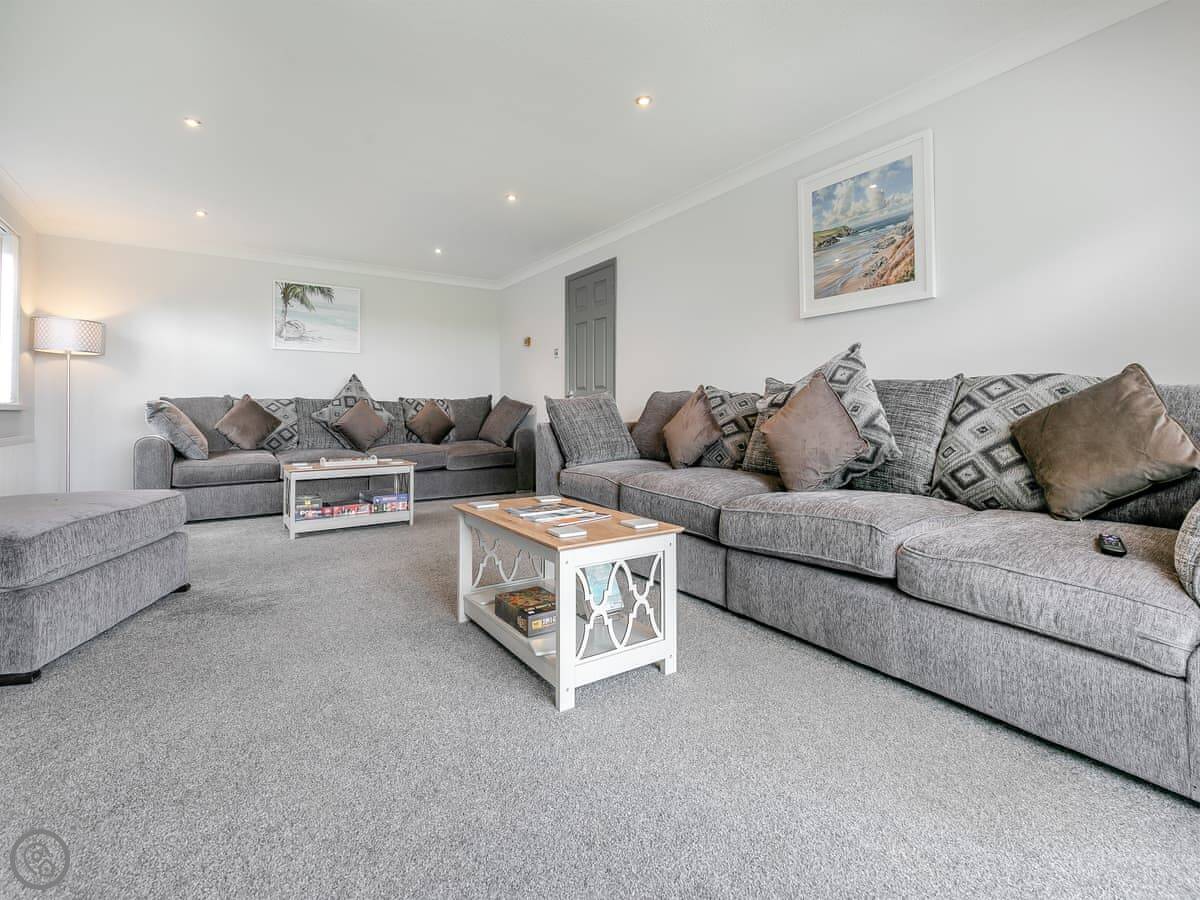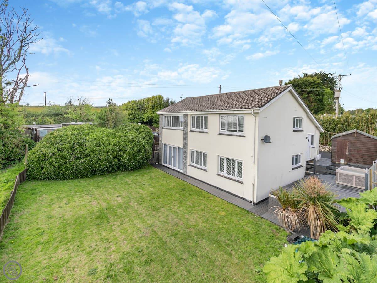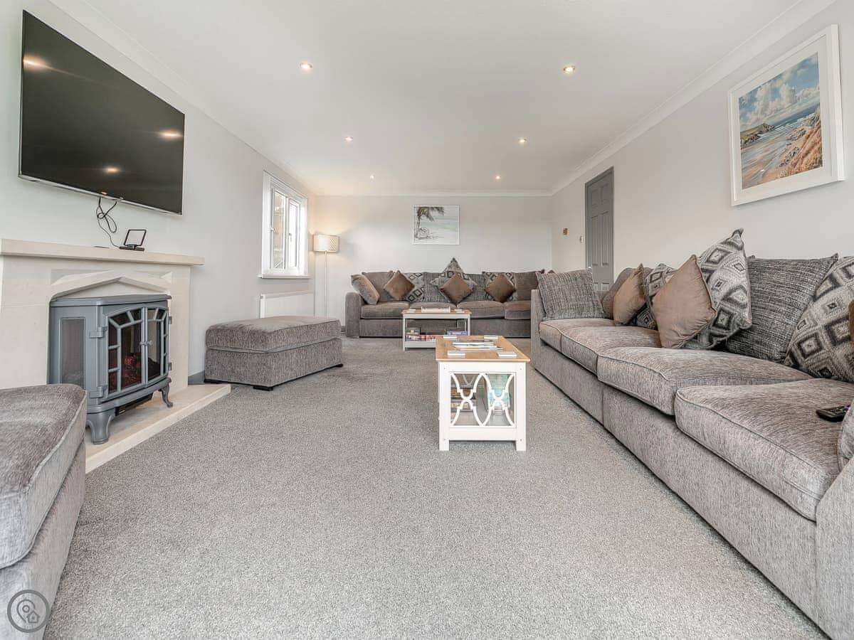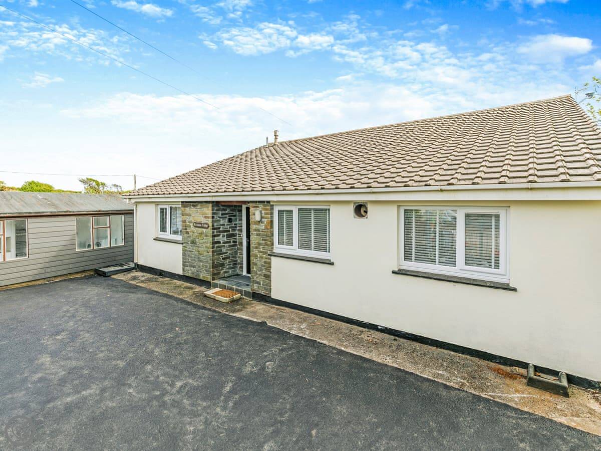 The Lodge is on Retanna Holiday Park, just outside Carnkie. It's a detached house on three floors, so it's quite big. It sleeps ten, in five bedrooms, with three bathrooms. It's got a 5 Star rating, which means it's well-equipped and finished to a good standard.
