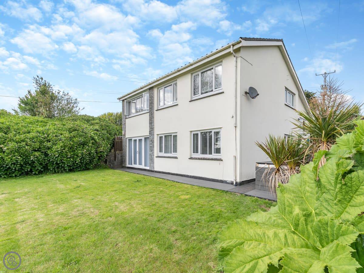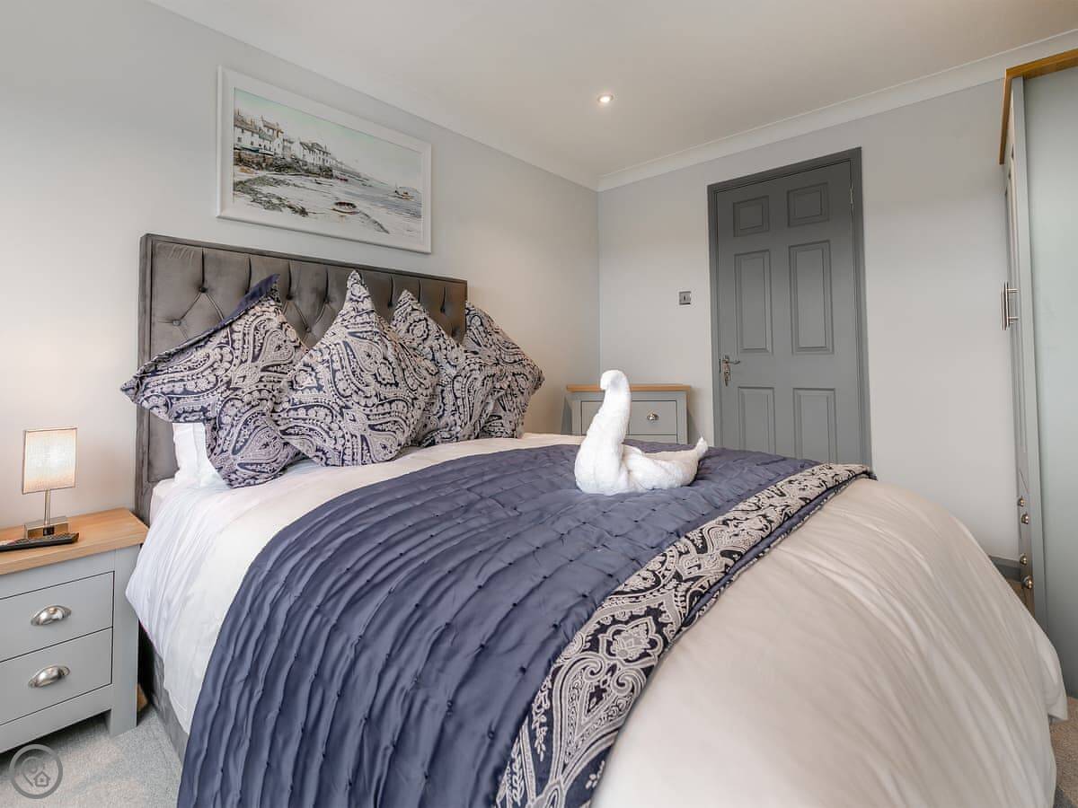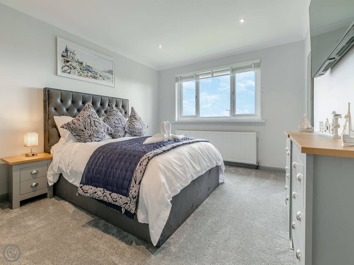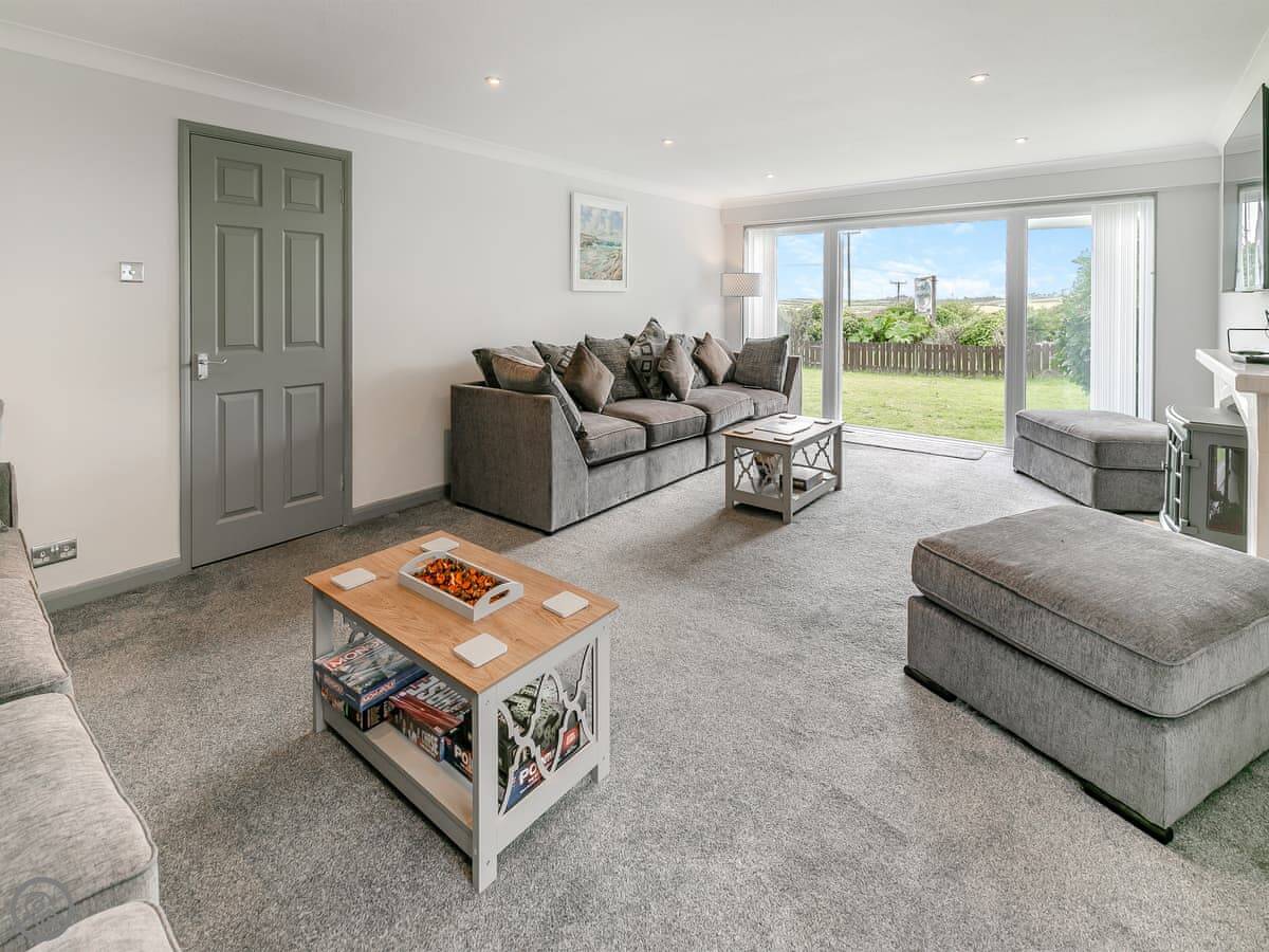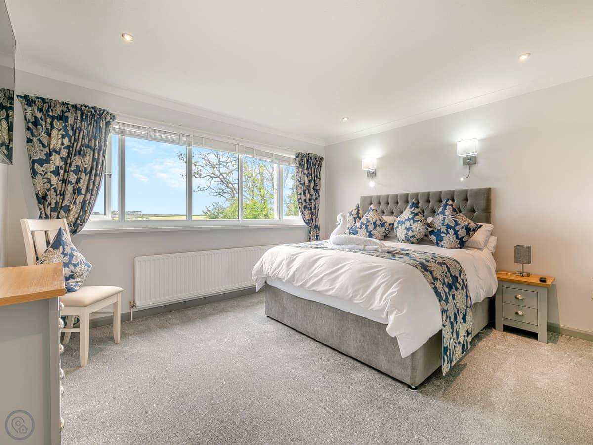 The Lodge is on Retanna Holiday Park, just outside Carnkie. It's a detached house on three floors, so it's quite big. It sleeps ten, in five bedrooms, with three bathrooms. It's got a 5 Star rating, which means it's well-equipped and finished to a good standard.