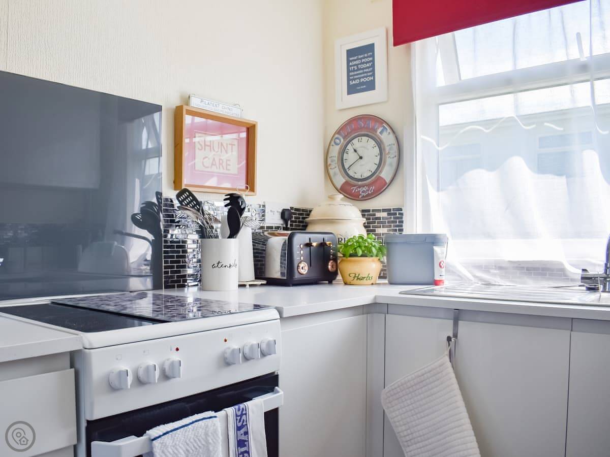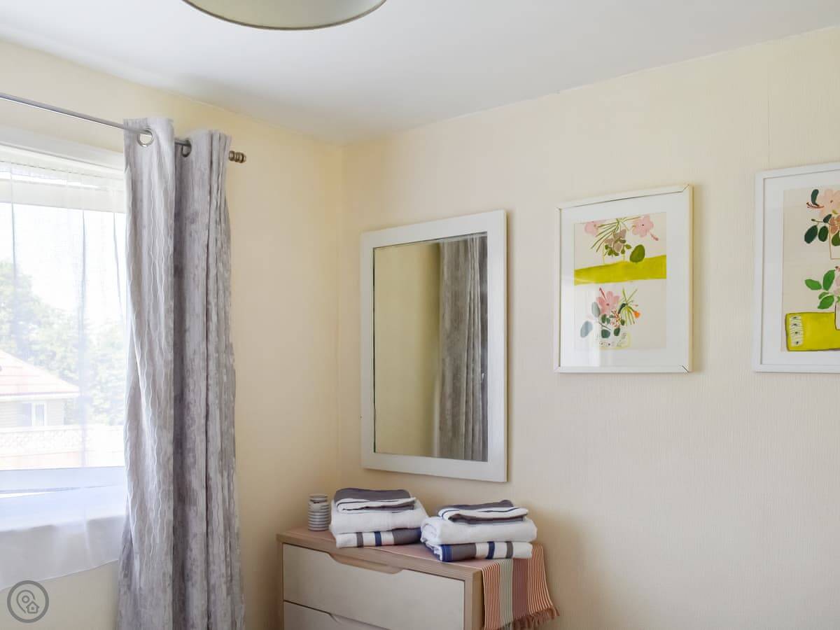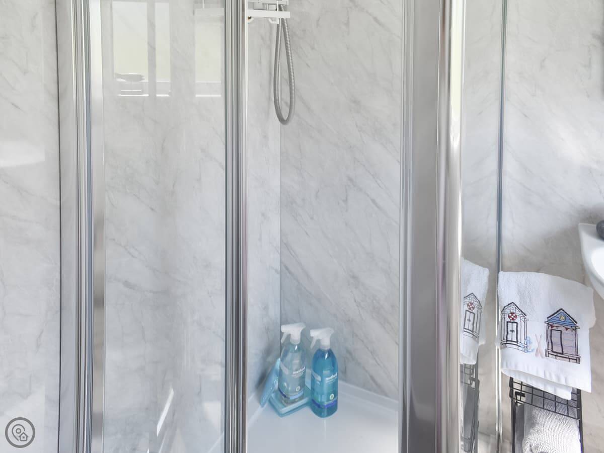 Inside, it's one level. Open plan living, kitchen, and dining area. The kitchen has a dishwasher. There's one bathroom with a shower. One bedroom has a double bed, the other has full-sized bunk beds. It’s got a 4 Star rating, which means it’s comfortable and well-equipped. It’s not huge, but it's fine for a week by the coast.