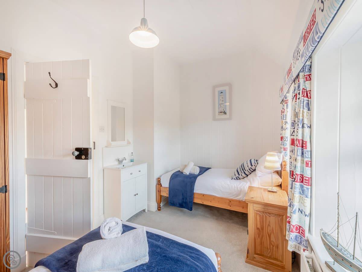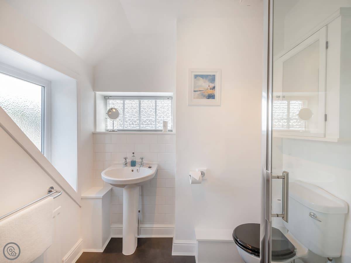 The main thing here is the view. From the upstairs windows you look out over the fields towards the sea. It's a good spot for watching the weather come in.
