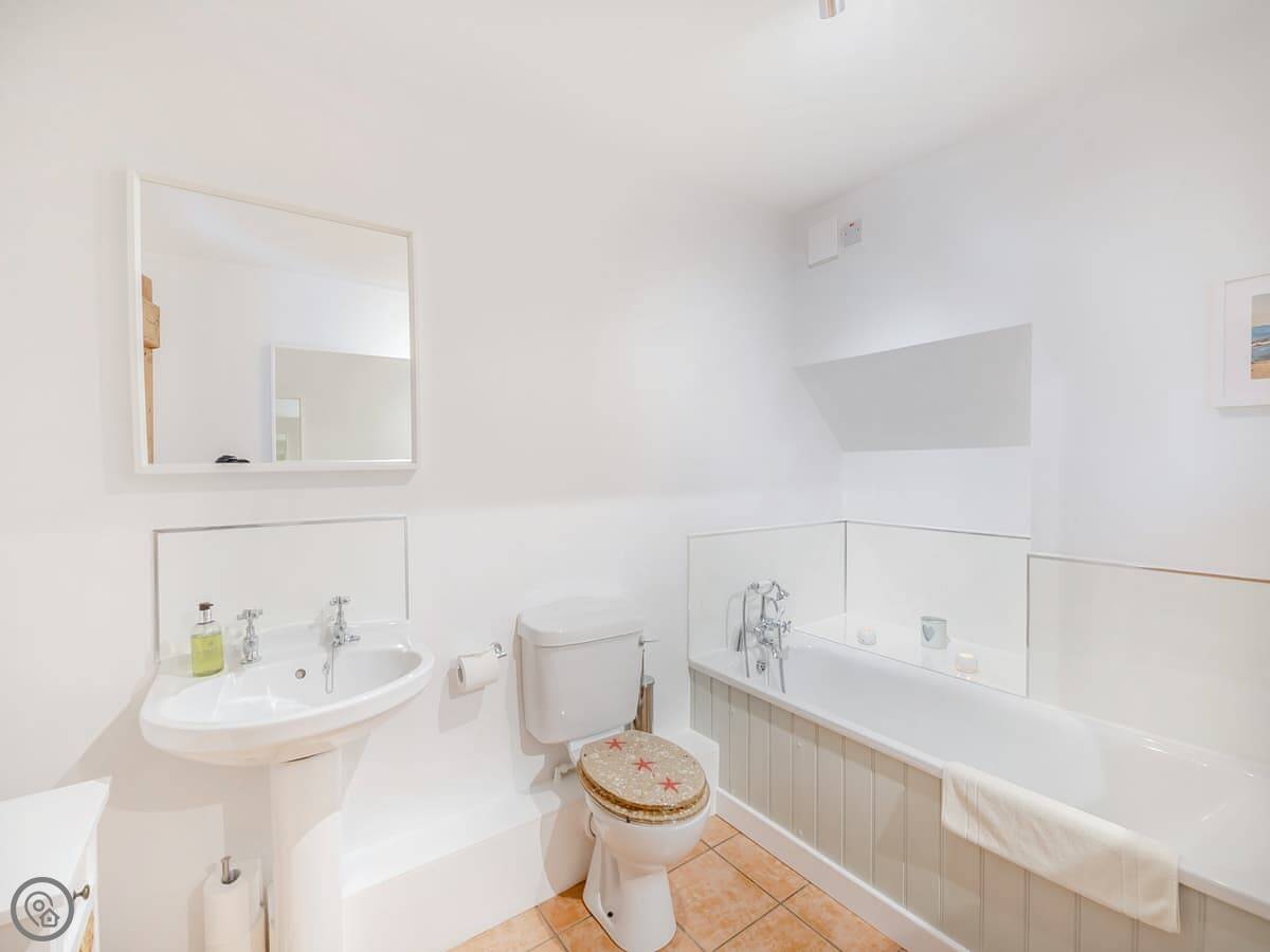 It sleeps six. Three bedrooms, three bathrooms. It's got a 4 Star rating, which means it's well-equipped and comfortable. You should know the staircase is open and the steps are steep. That's fairly normal for these cottages, but take care on them.