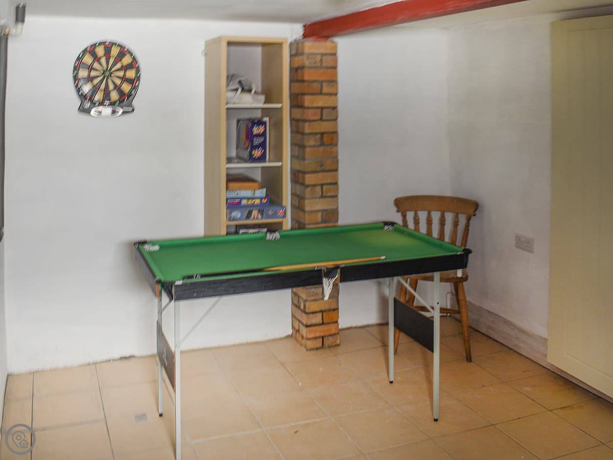 Downstairs is where they used to keep the boats. It's below sea level, so the ceiling is low and it feels a bit like a cellar. There's a pool table and darts board down there, and a separate shower room. It's a useful space if the weather turns.