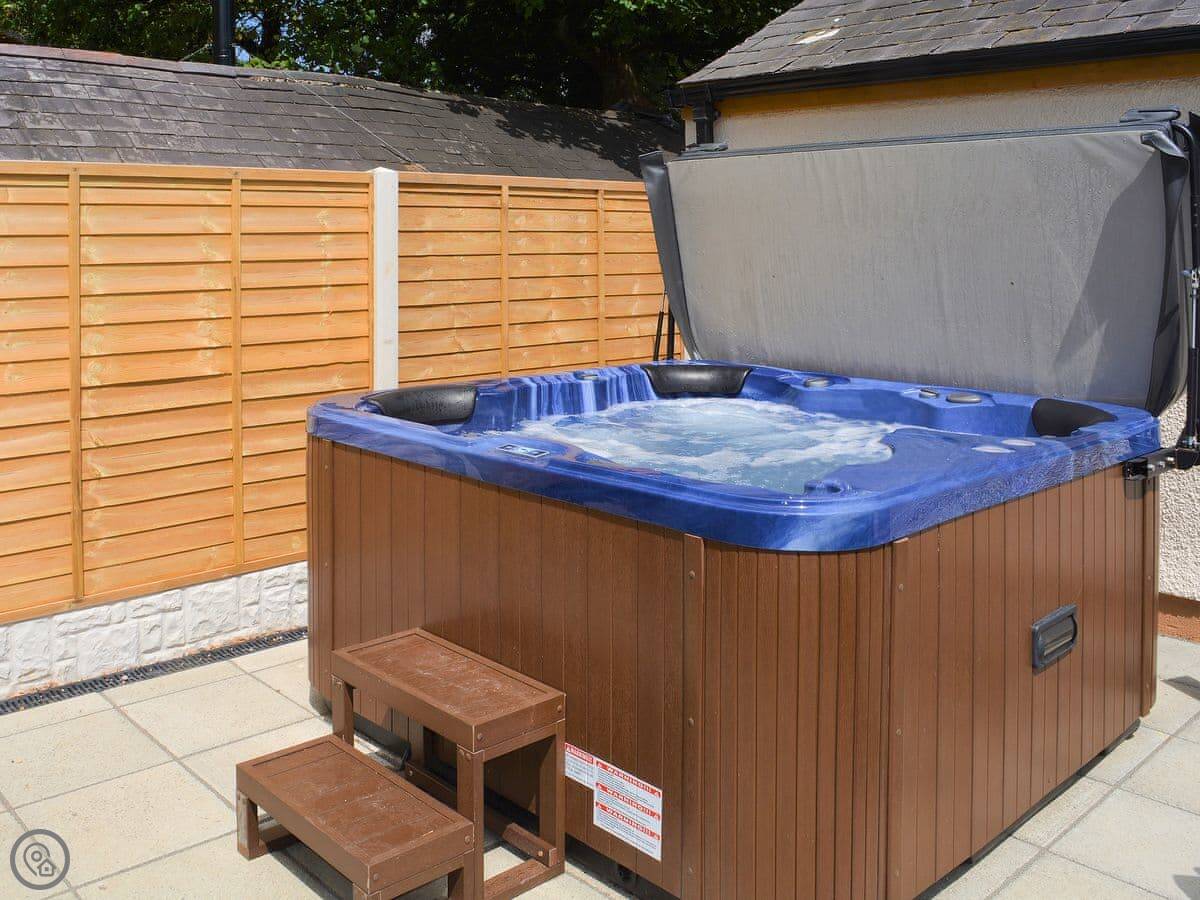 You've got your own hot tub outside. There's a wood burning stove for cooler evenings. It has a dishwasher and a washing machine. Bedding and towels are included. Parking is right outside.