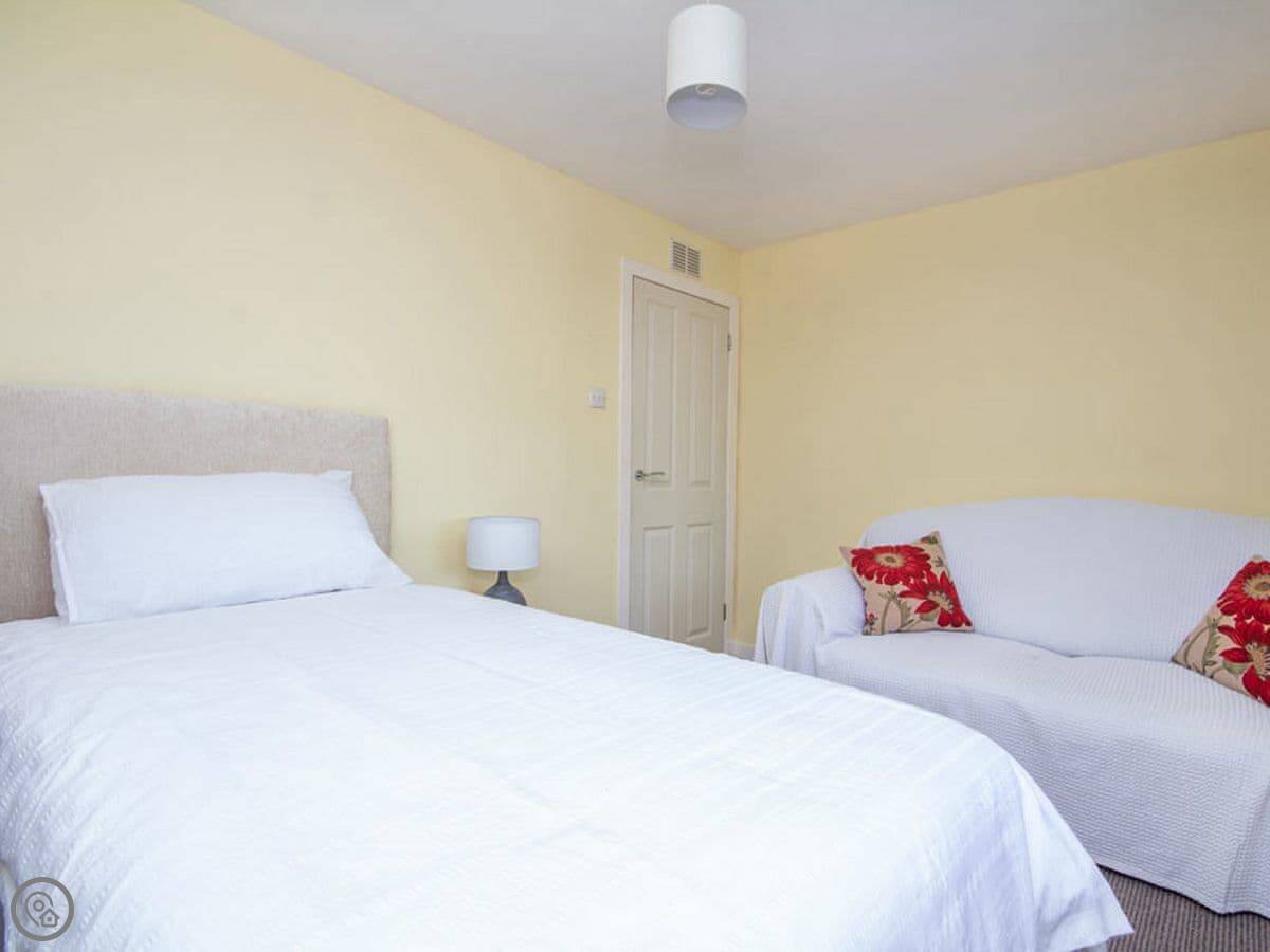 It sleeps five. Three bedrooms, one bathroom with a shower. It's got a 4 Star rating, which feels about right. It's clean, warm, and everything works. The garden is big and enclosed, which is good if you've got kids or a dog. Pets aren't allowed though, sorry.