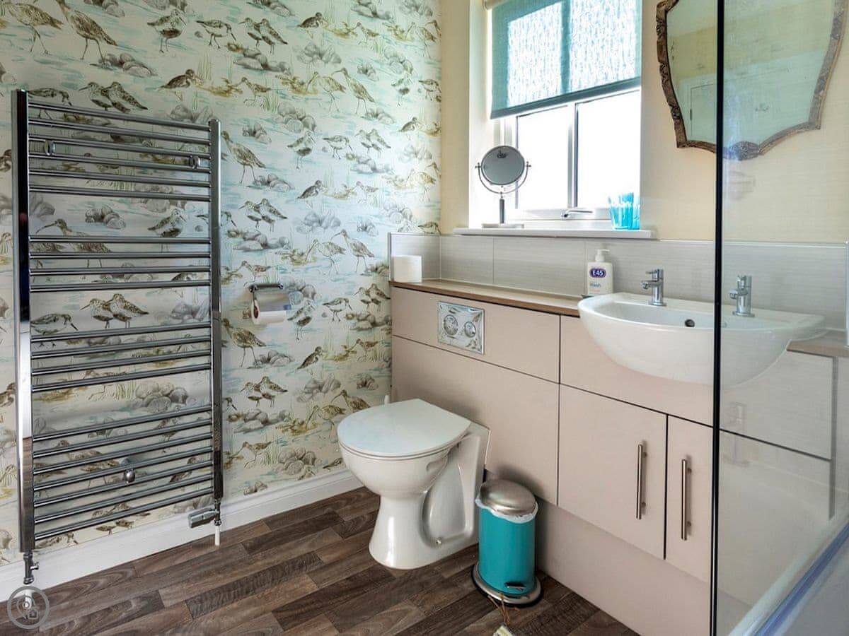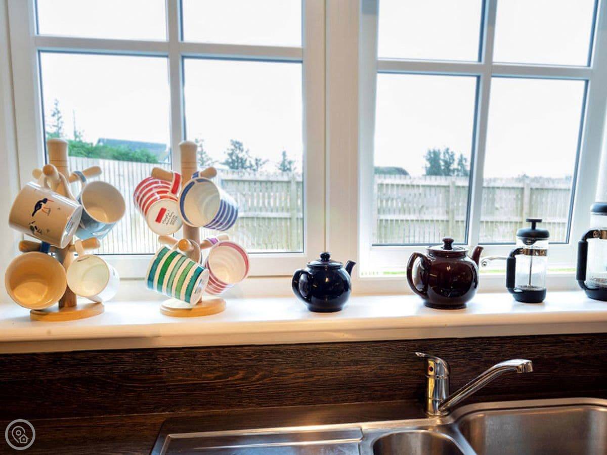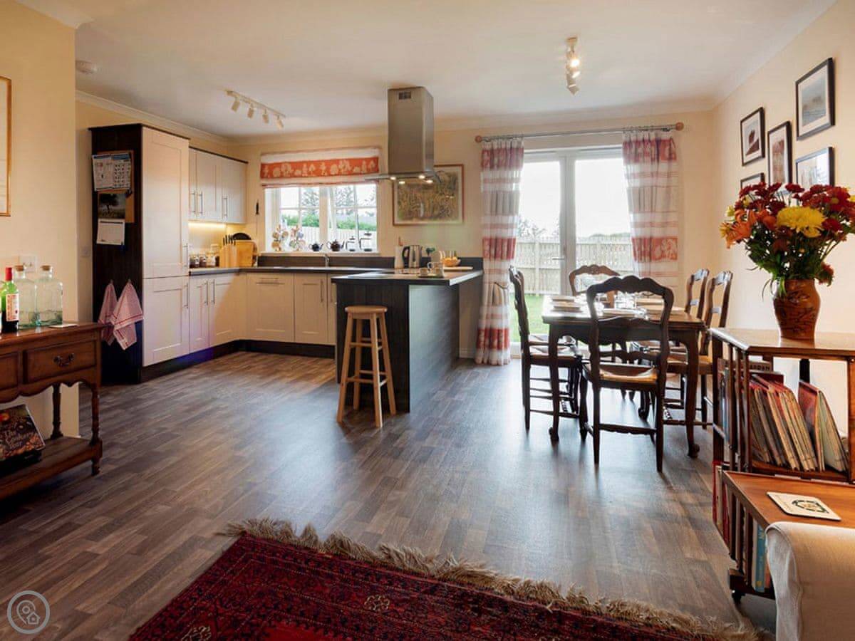 Inside, it’s open plan. There’s a Smart TV with Sky, a dishwasher, washing machine, and WiFi. We’ve left some books, games, and jigsaws there. Bedding and towels are included.
