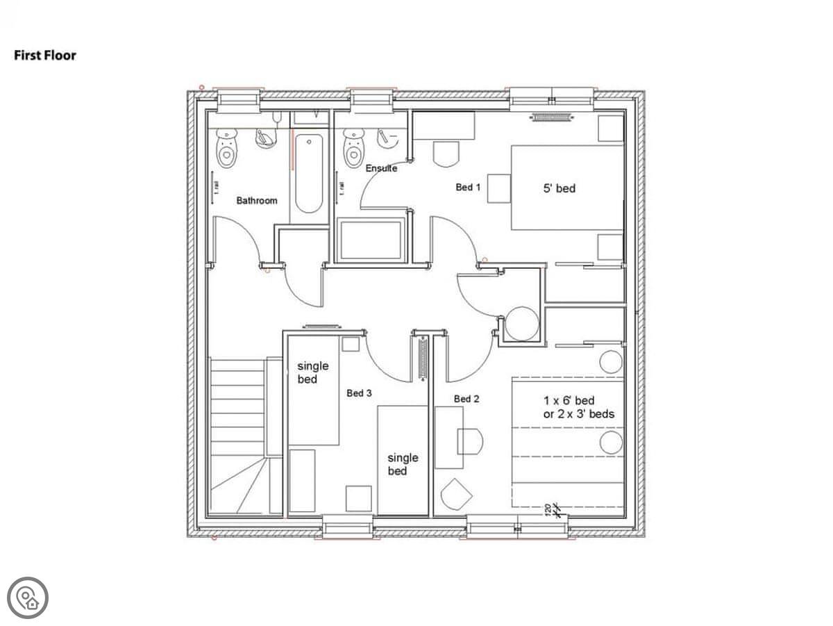 It sleeps six. Three bedrooms, two bathrooms. It's got a 4 Star rating. Everything is on one level, so it’s fine if you have trouble with stairs. The garden is enclosed, with a patio that gets the sun. There’s a big shed you can put bikes or golf clubs in.