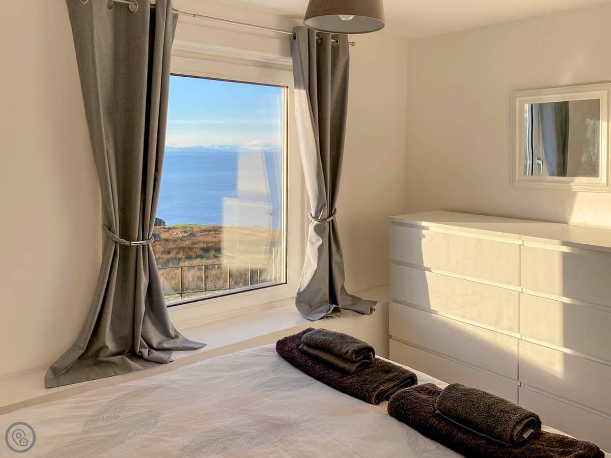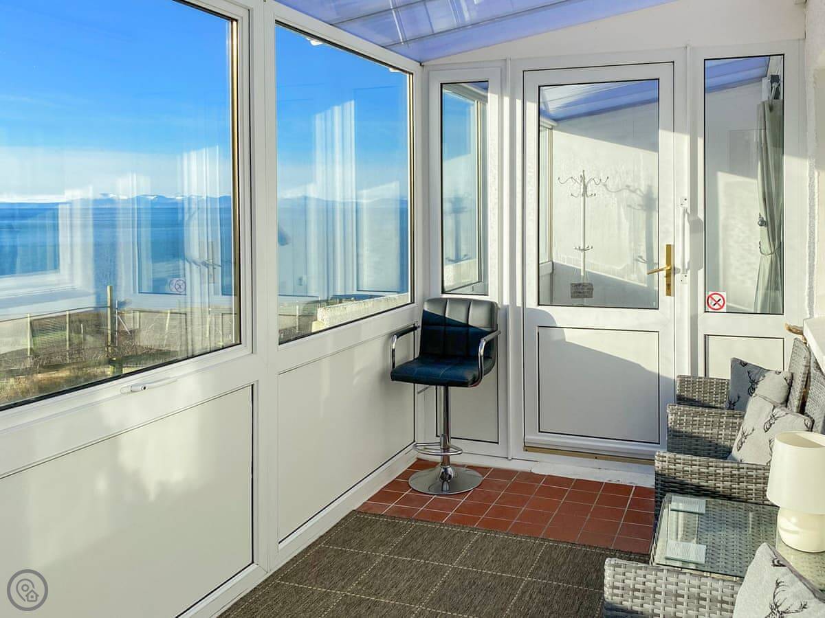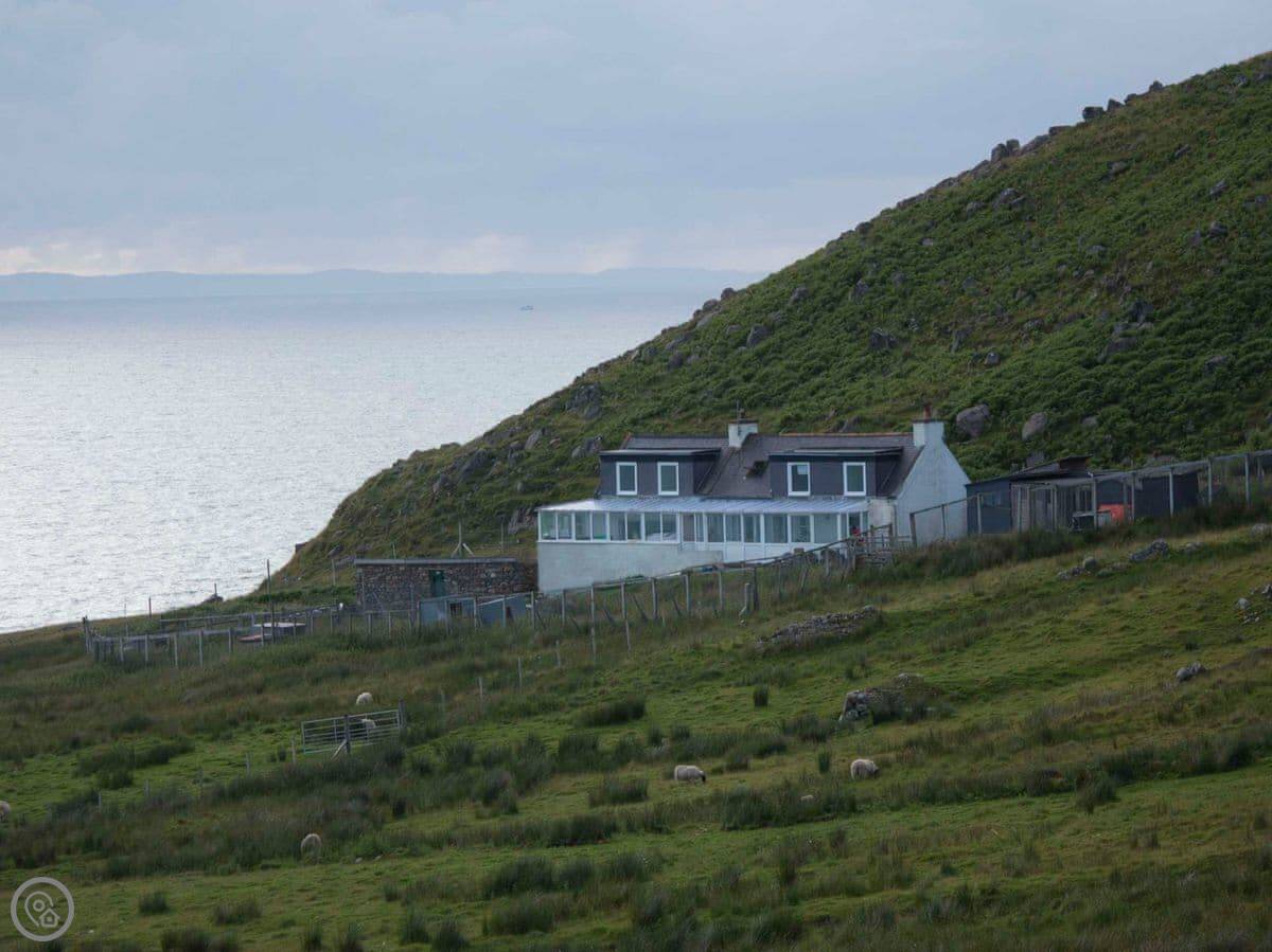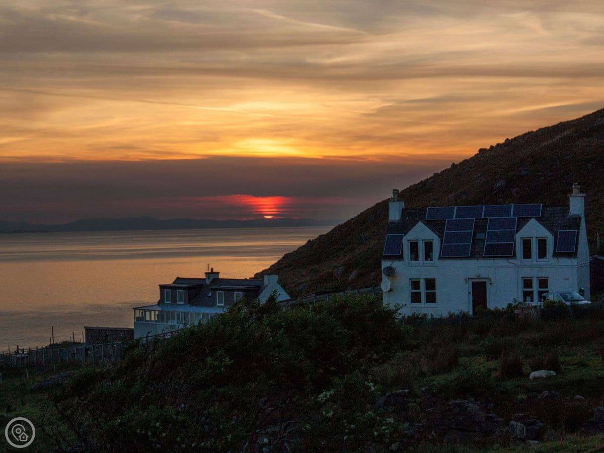 Otterburn 1 is a semi-detached cottage in Melvaig. It's up the hill, so you get the view. You can see right out over the Minch to the islands from the conservatory and the bedrooms.