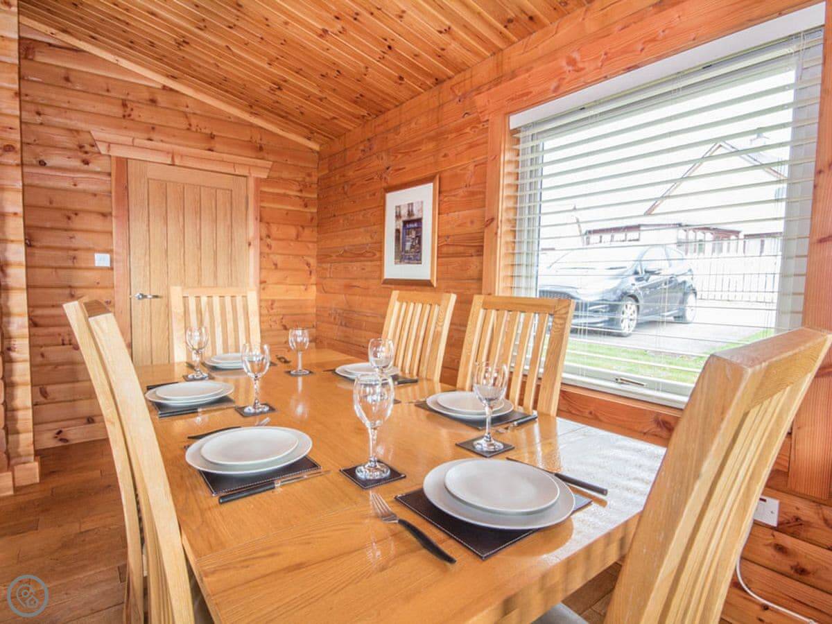 This place is called Gael Cham. It's a Scandinavian-style log cabin just outside Aviemore. It's in a quiet spot so you don't get any noise, but it's only about a ten minute walk into the centre.