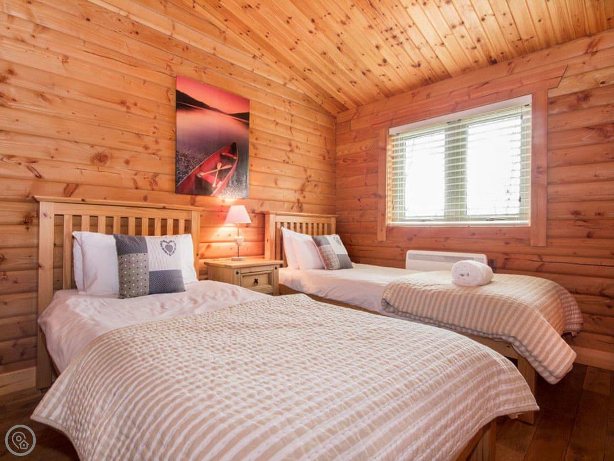 It's a detached cabin, so no neighbours through the walls. The living area is open plan. You get a highchair and a cot if you need them. We take up to two well-behaved dogs.