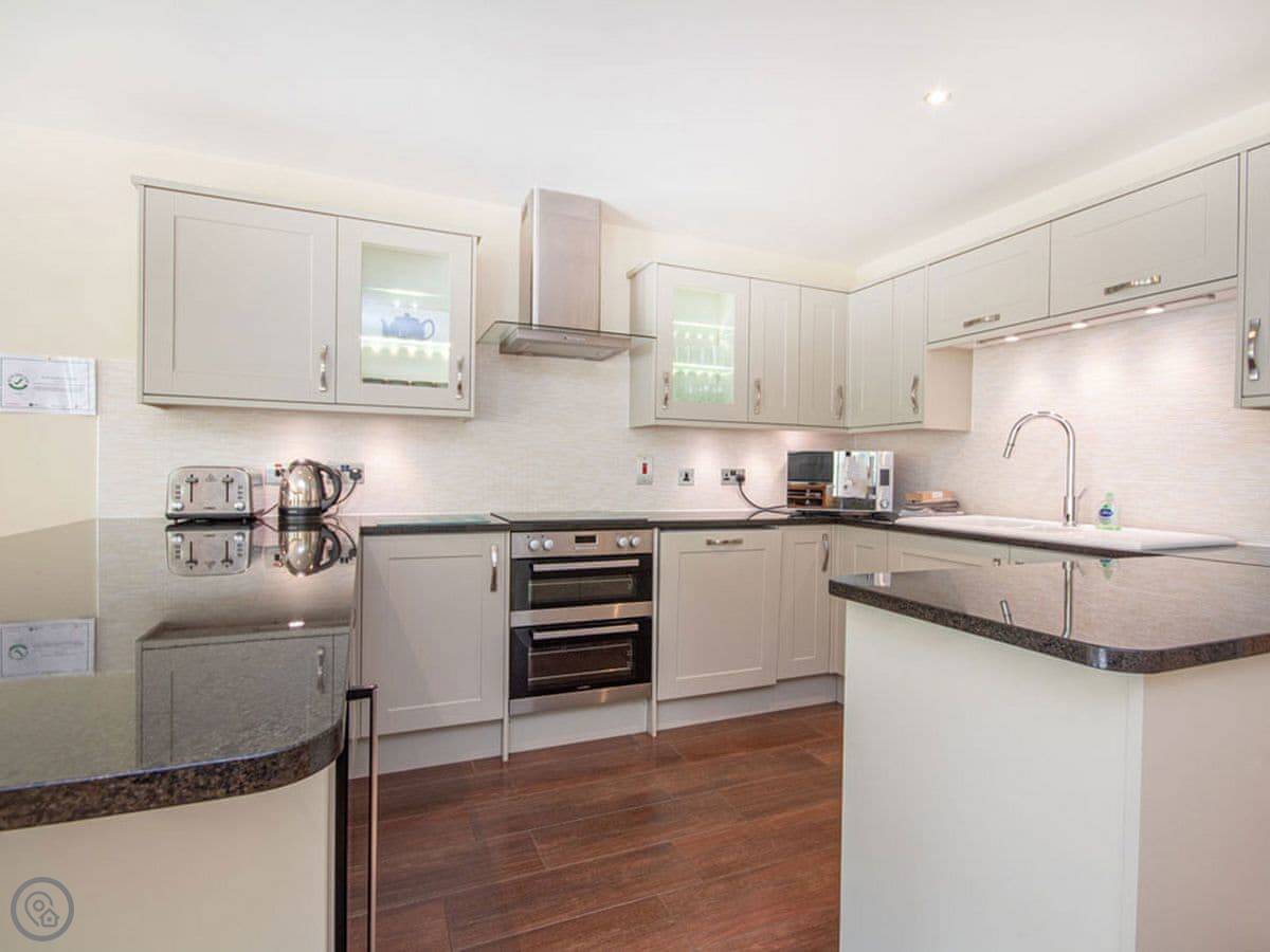 The place has a 4 Star rating. It's clean, modern, and well-equipped. The beds are comfortable. It's got a washing machine, a dishwasher, WiFi, and parking right outside.