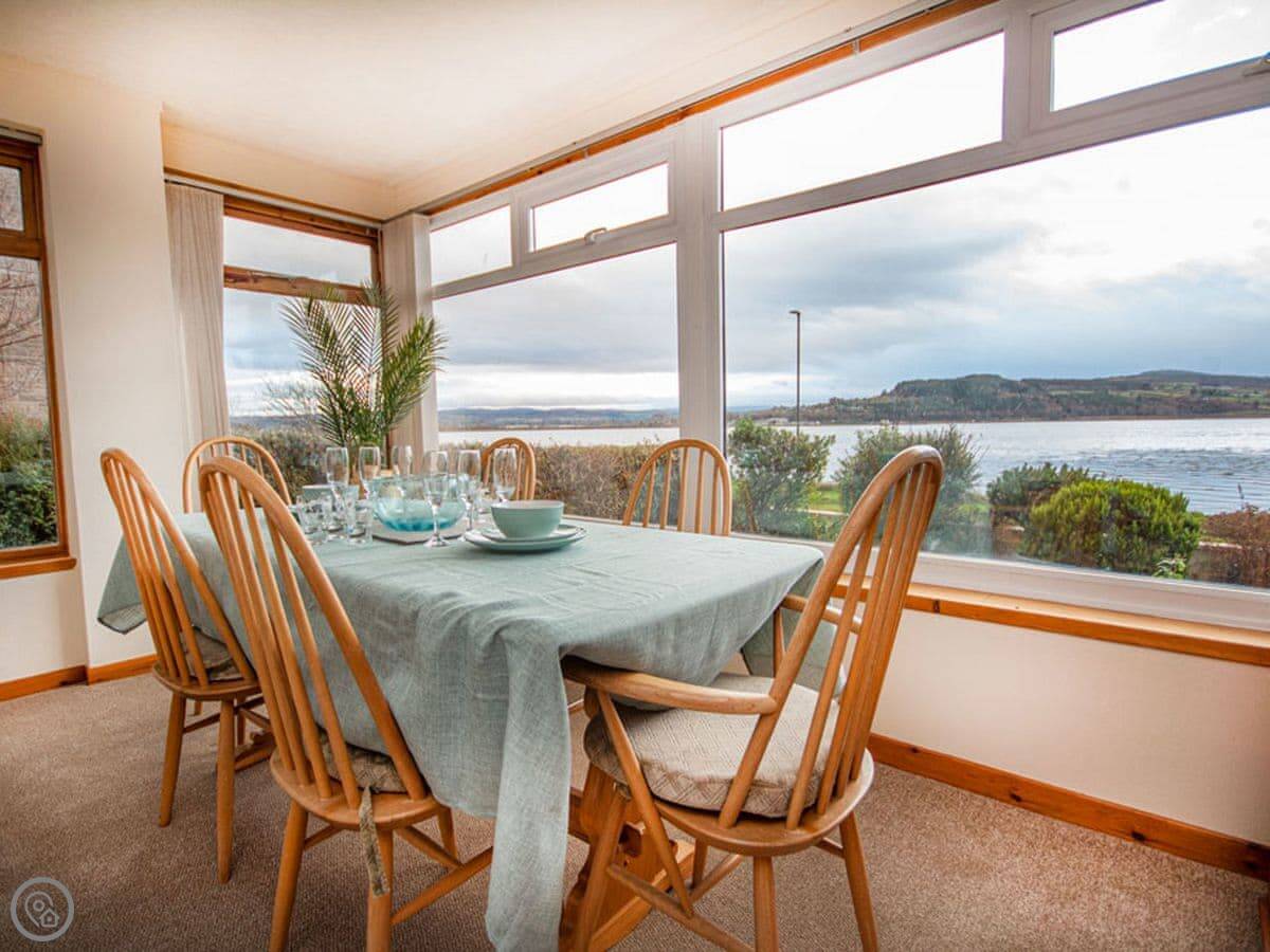 The big picture windows are the main thing. You look straight out over the water. You'll see the dolphins, seals, and birds from the living room. The Kessock Bridge is right there, leading over to Inverness.