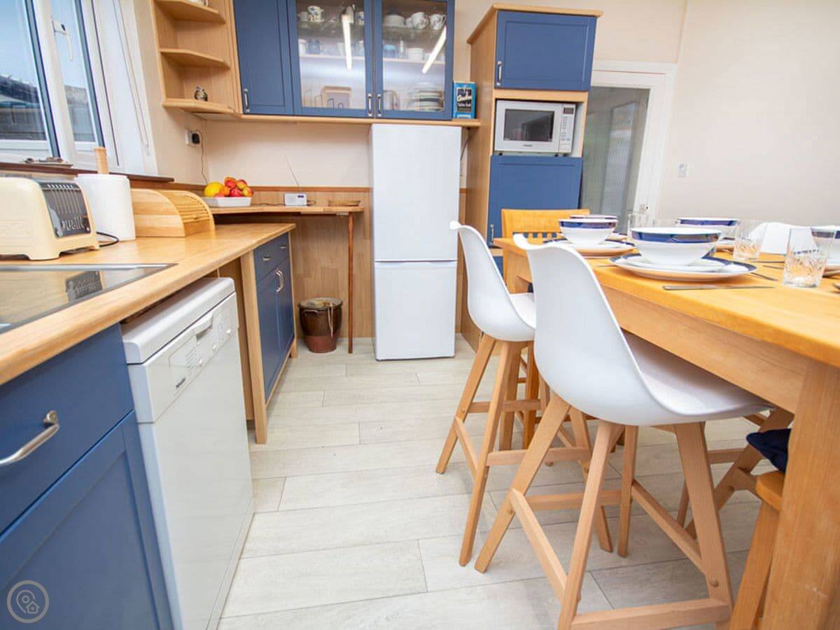The facilities are all there. Washing machine, dishwasher, WiFi, TV. Bedding and towels are included. There's parking on the drive. The garden is enclosed. Sorry, no pets.