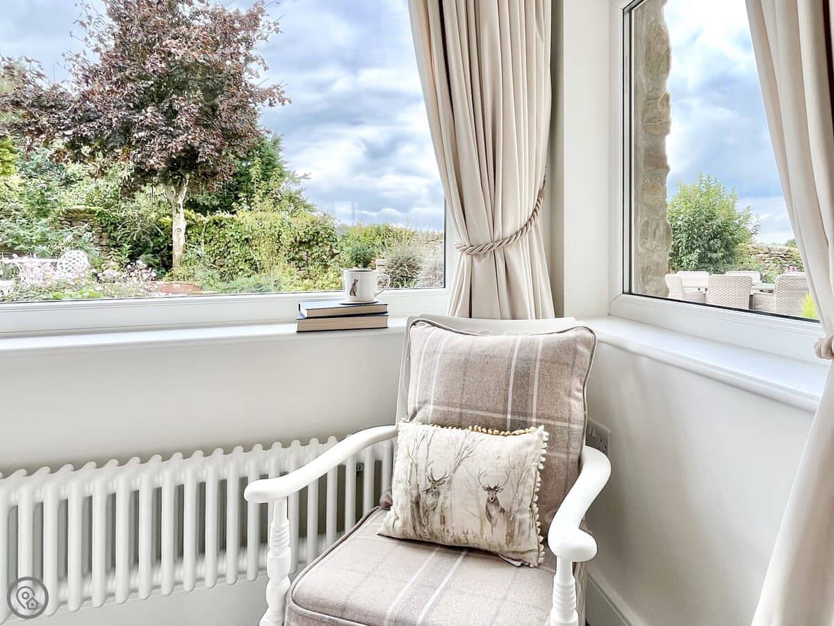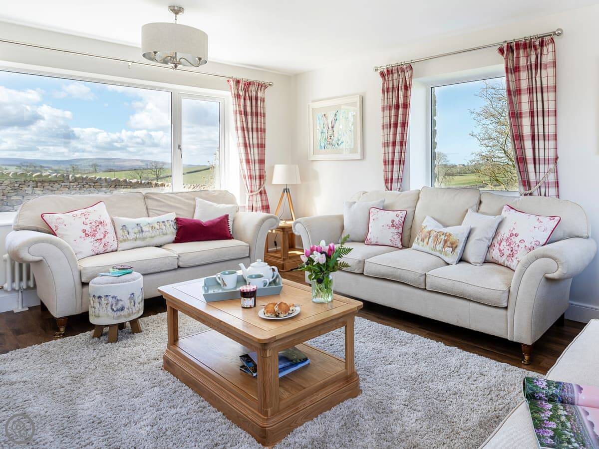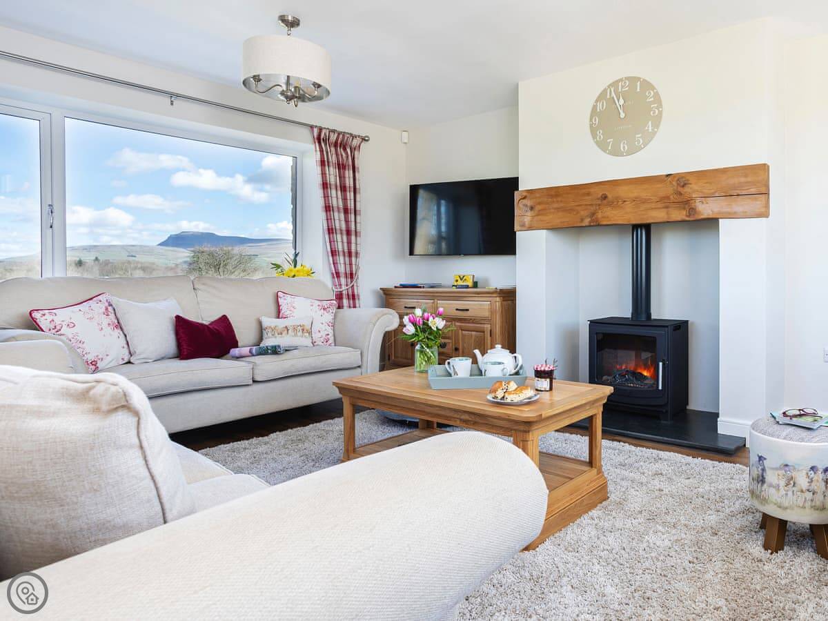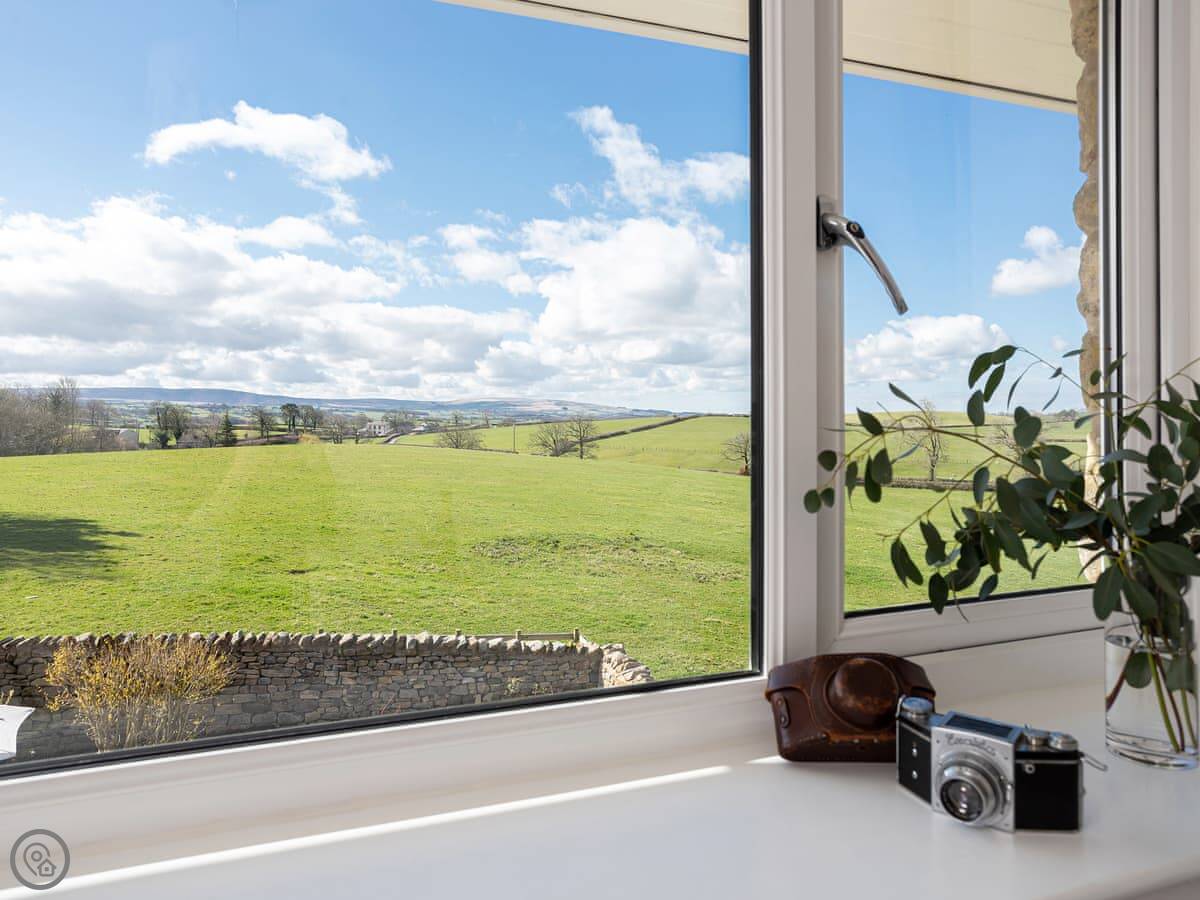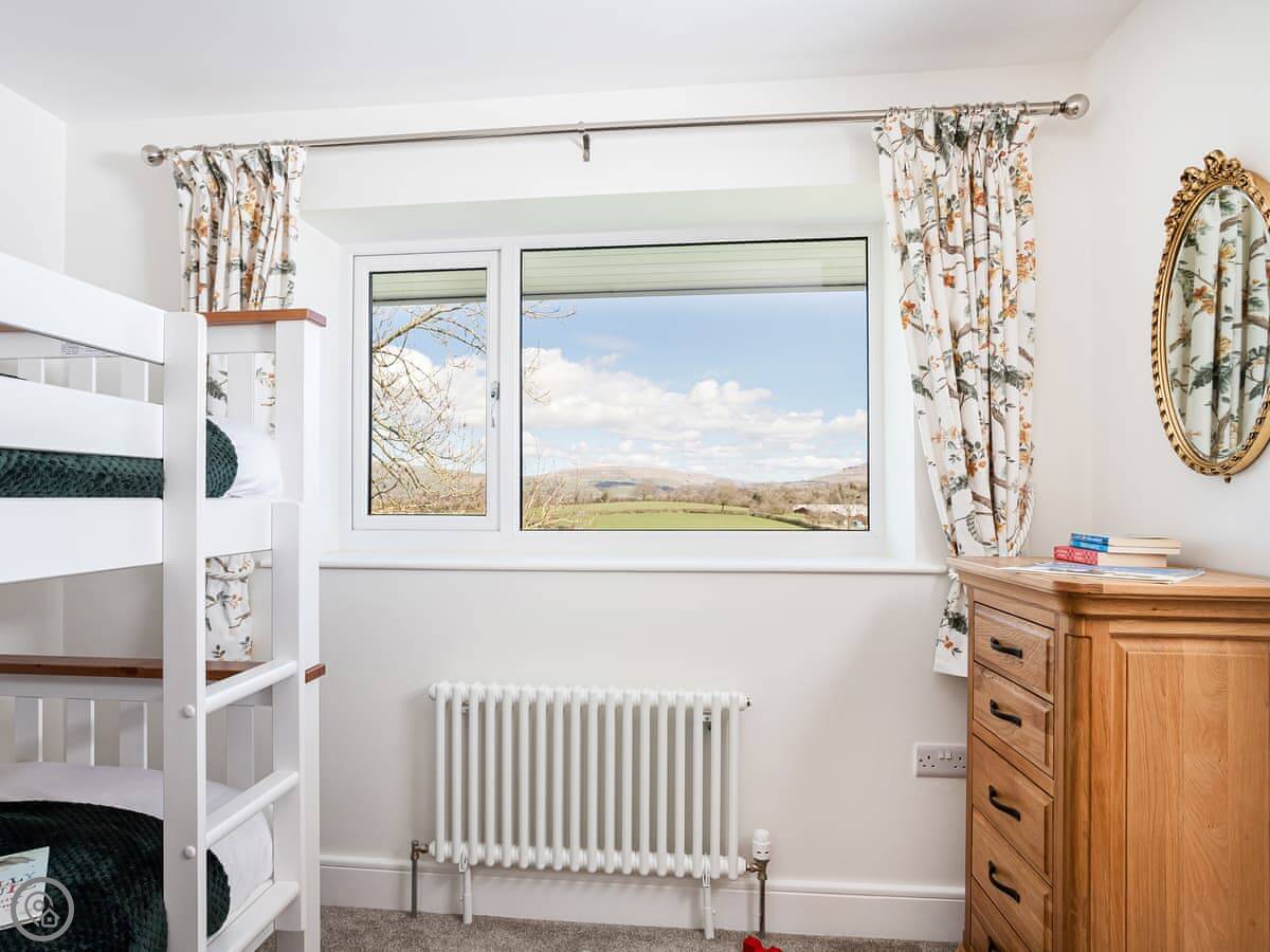It's detached, so no shared walls. The main thing is the view. You can see the Three Peaks from here, like Ingleborough and Whernside, and you look right down the valley. There are sunrises at the back and sunsets at the front.
