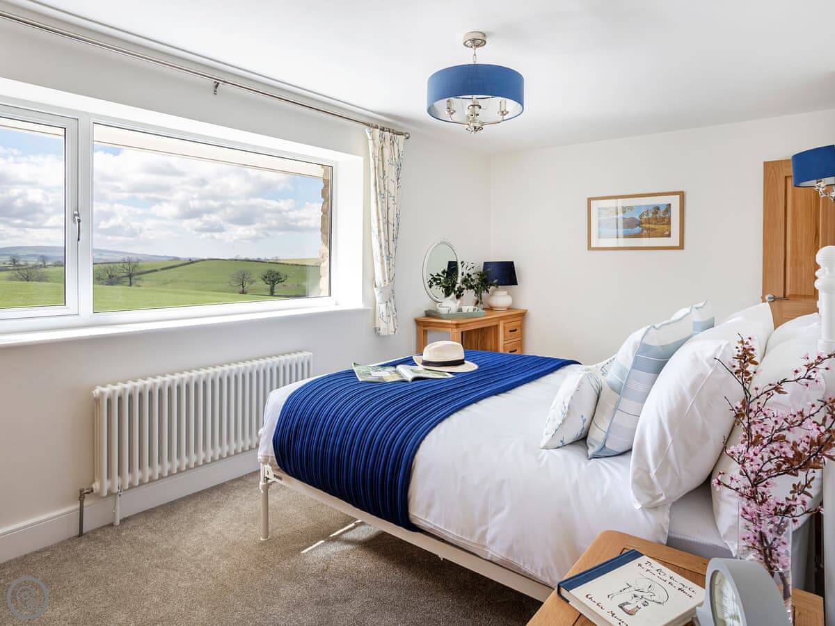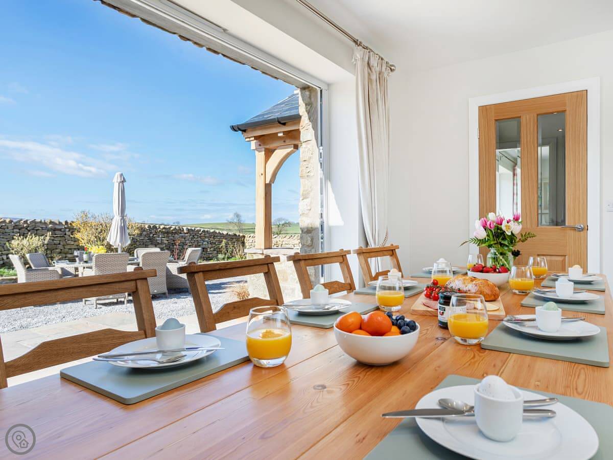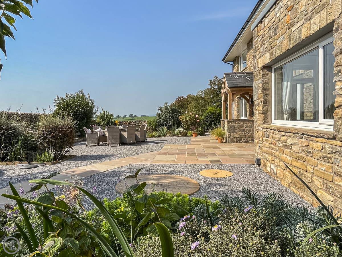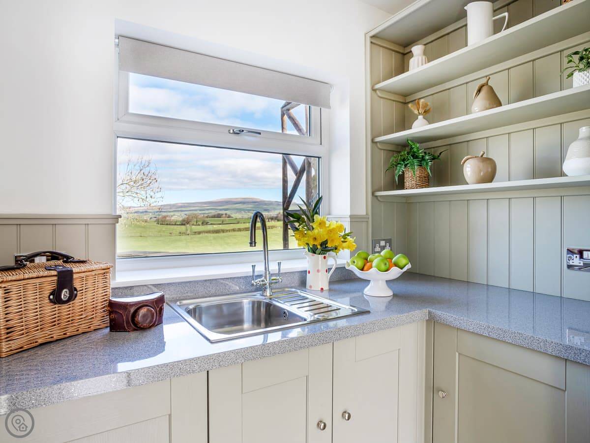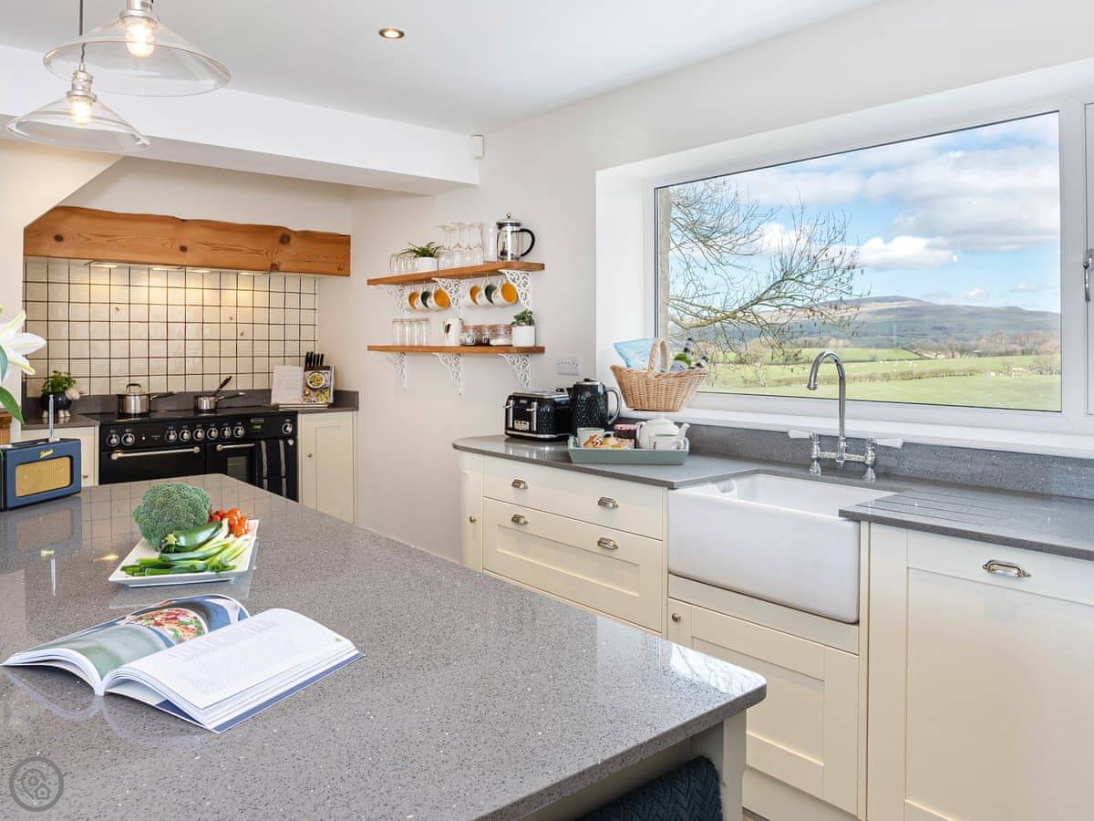 It's detached, so no shared walls. The main thing is the view. You can see the Three Peaks from here, like Ingleborough and Whernside, and you look right down the valley. There are sunrises at the back and sunsets at the front.