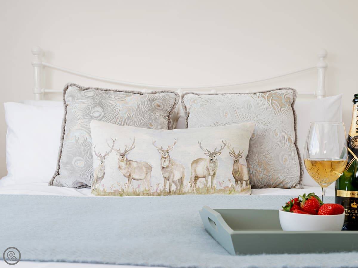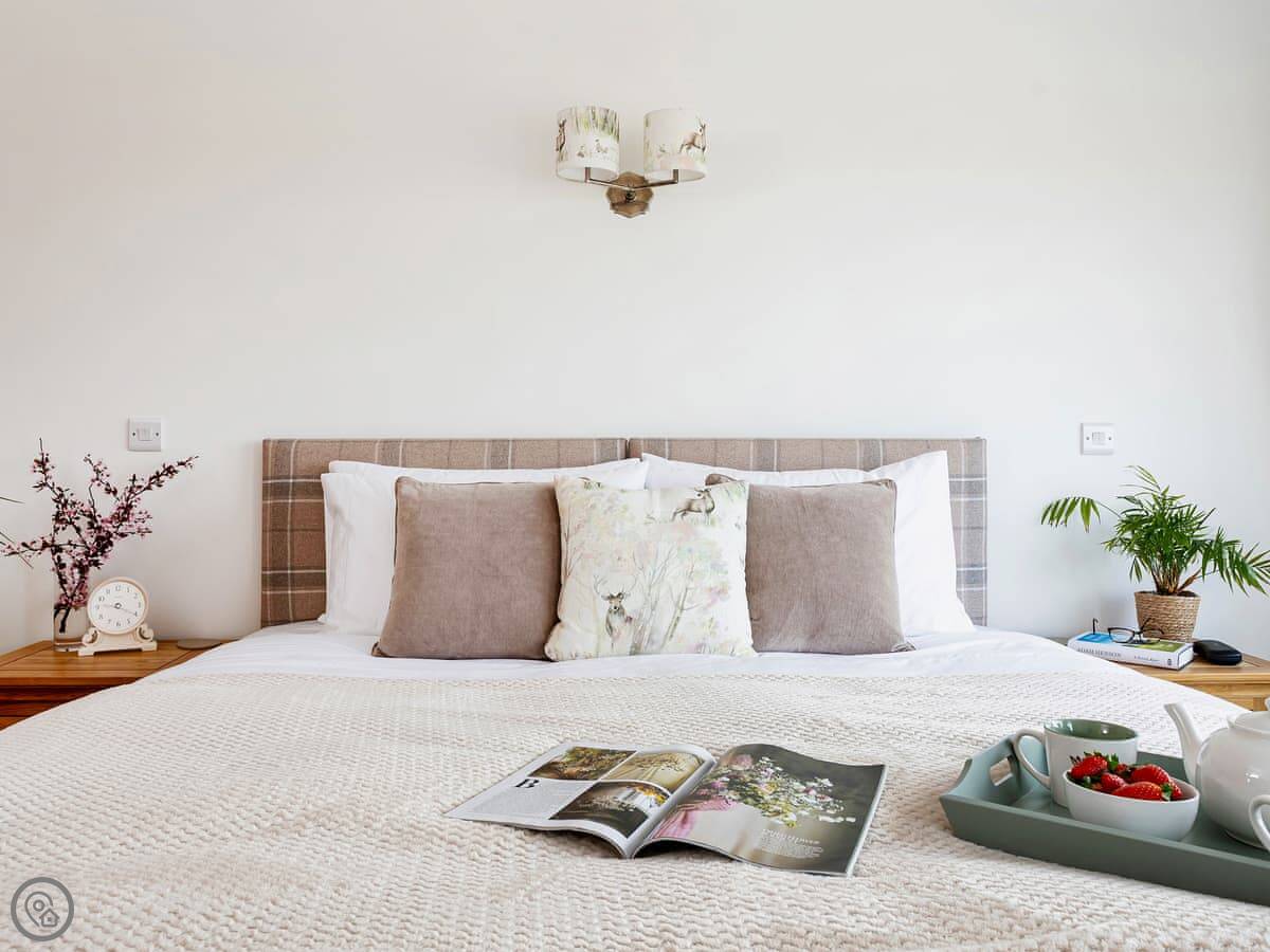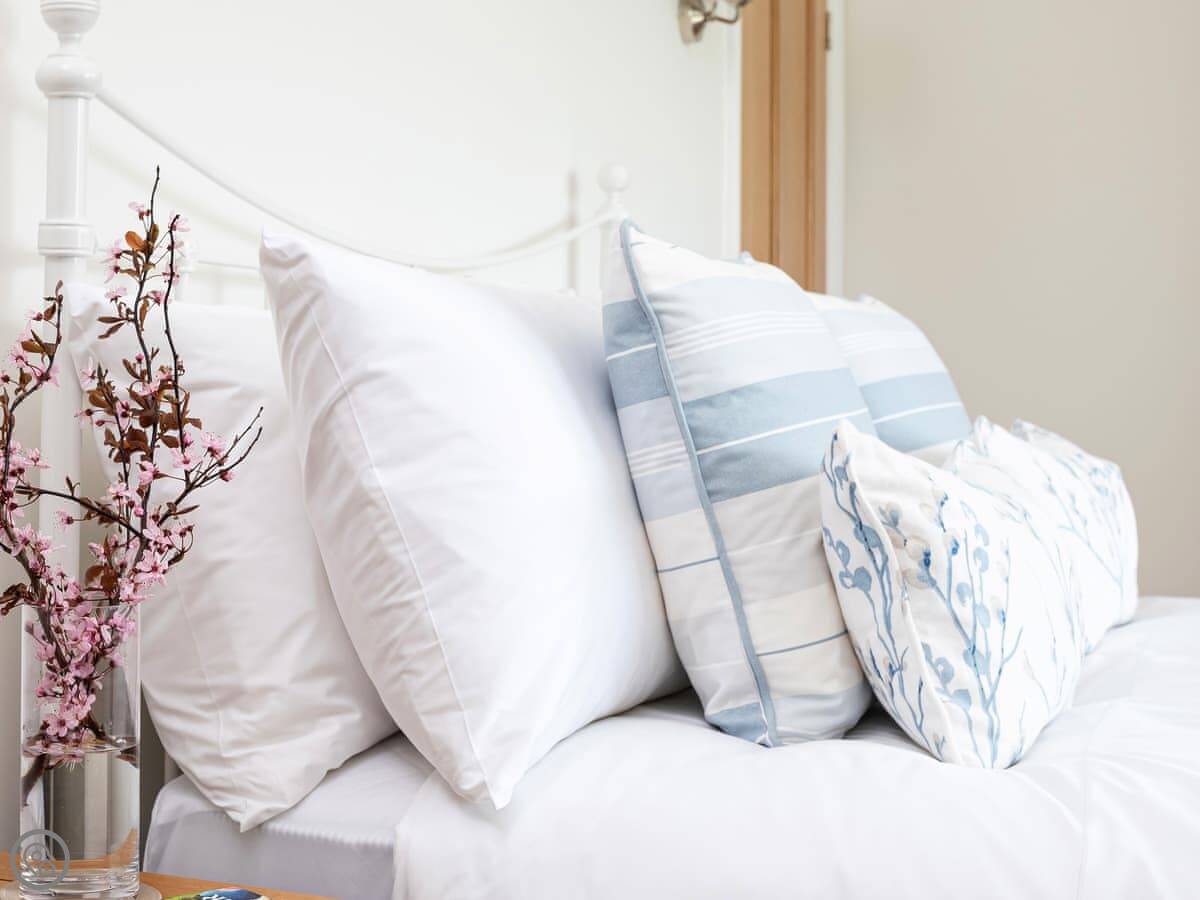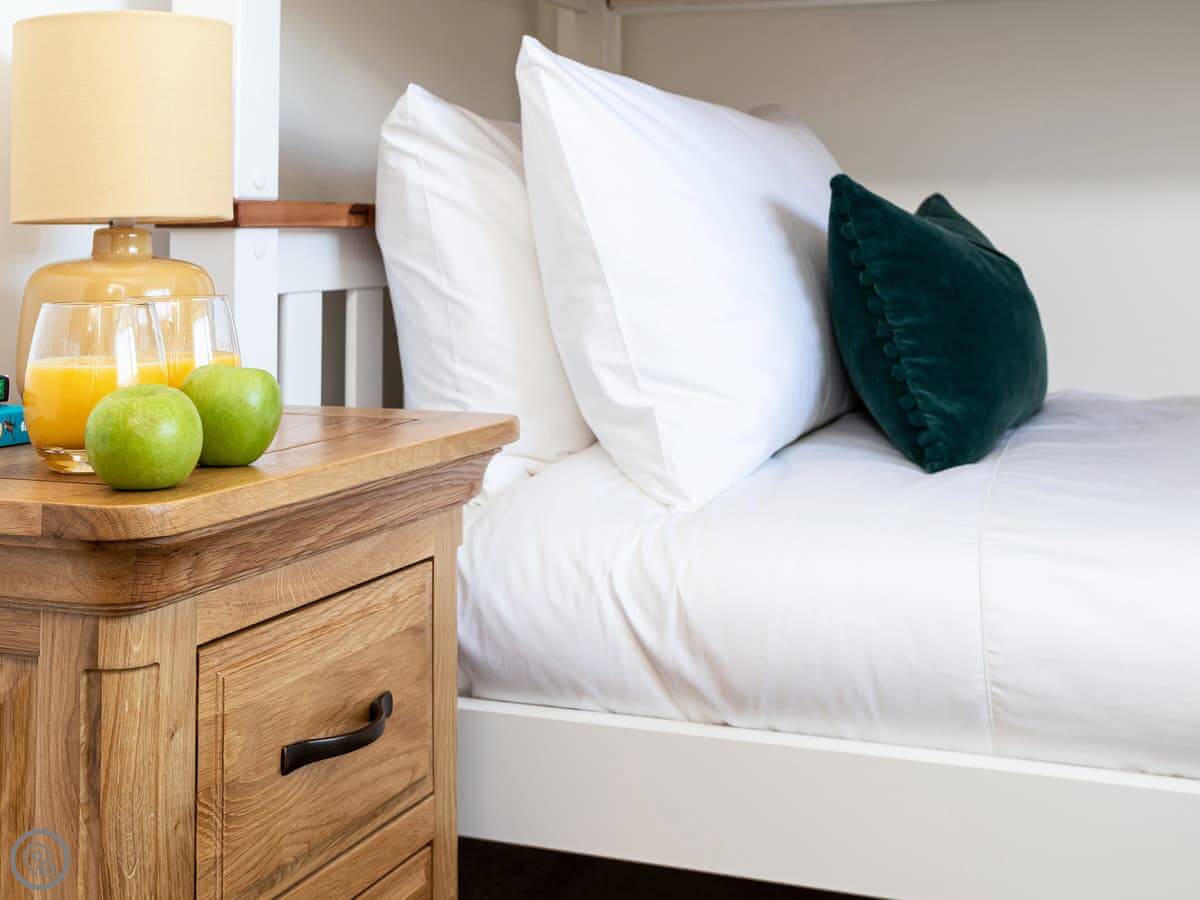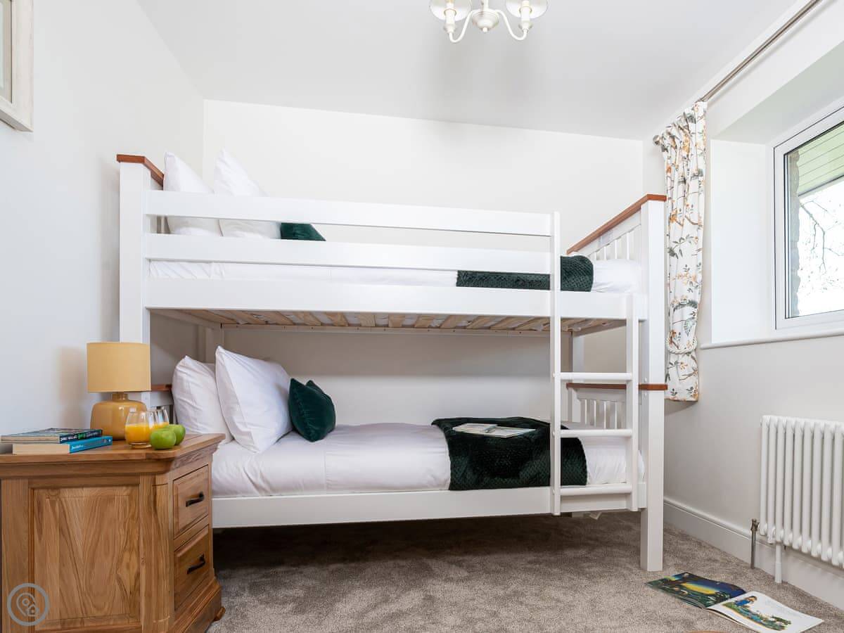 It sleeps up to six, in four bedrooms. Three of those are doubles, one has bunk beds. There are three bathrooms. One is downstairs.