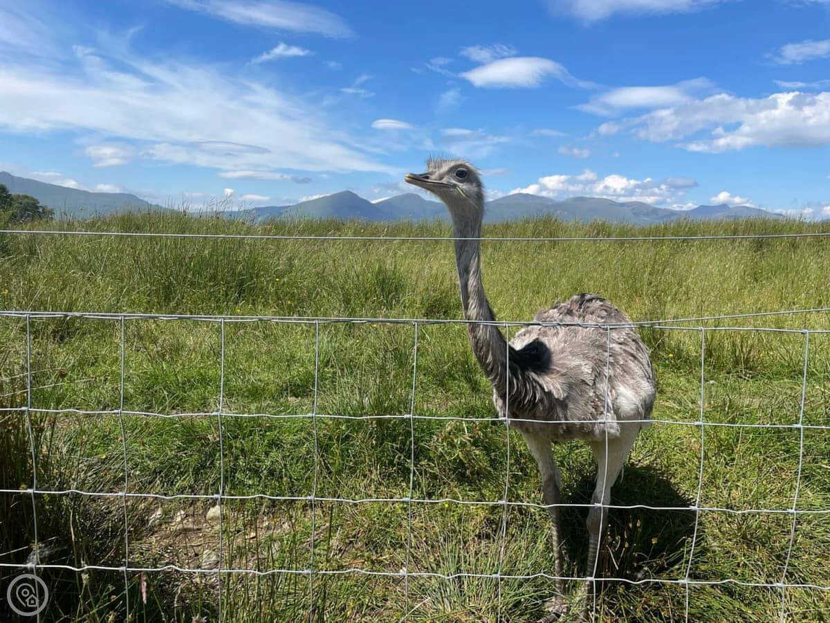 Right in front of the house there's a field. You'll see sheep. There are also two pet llamas. They're curious and often come over to the fence.