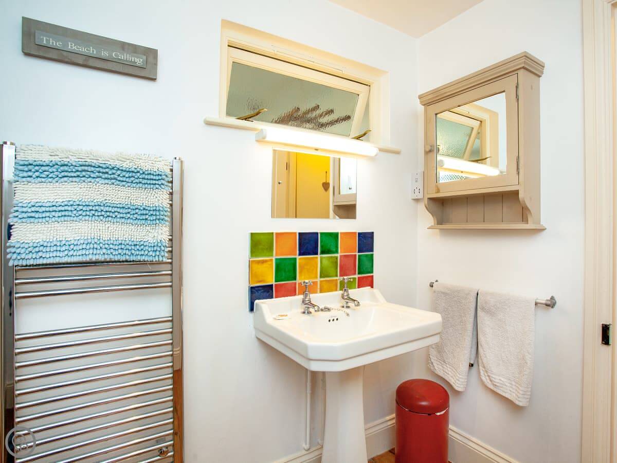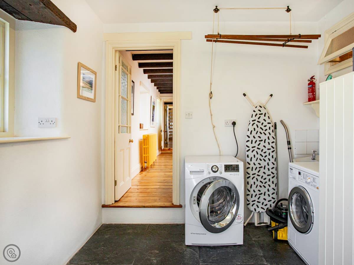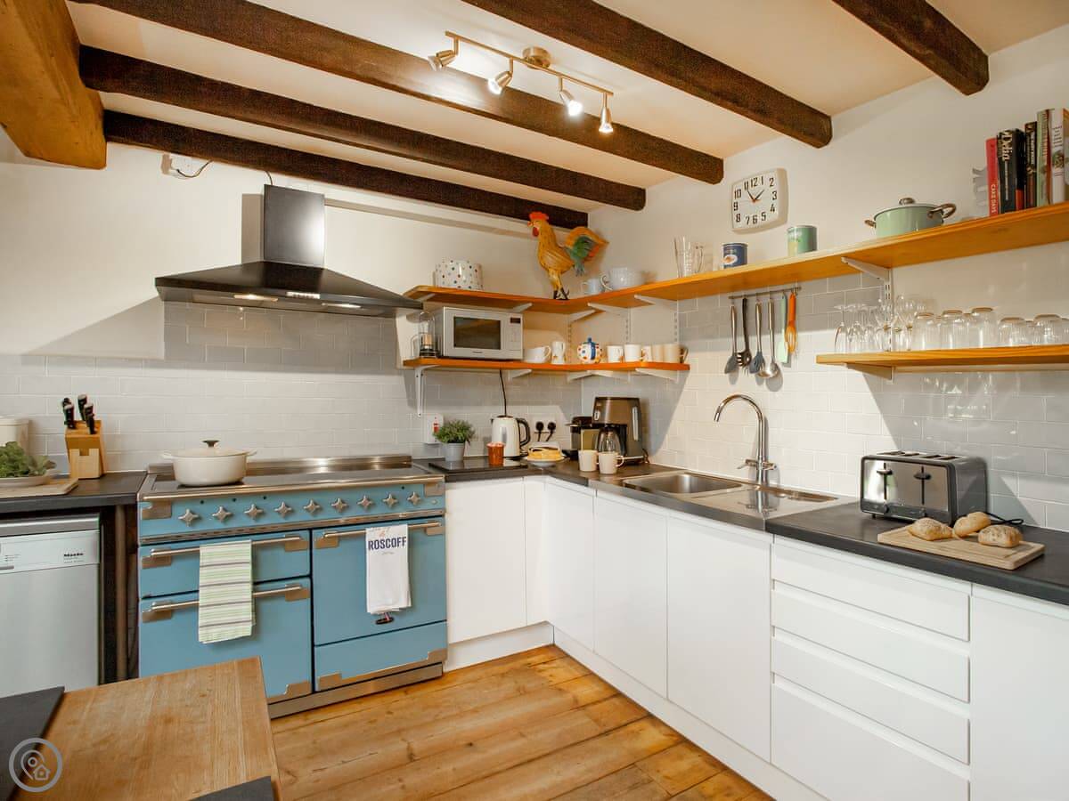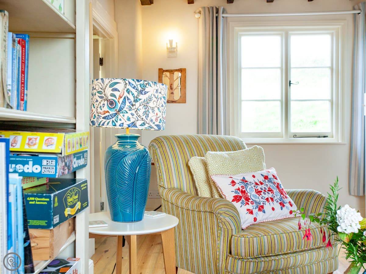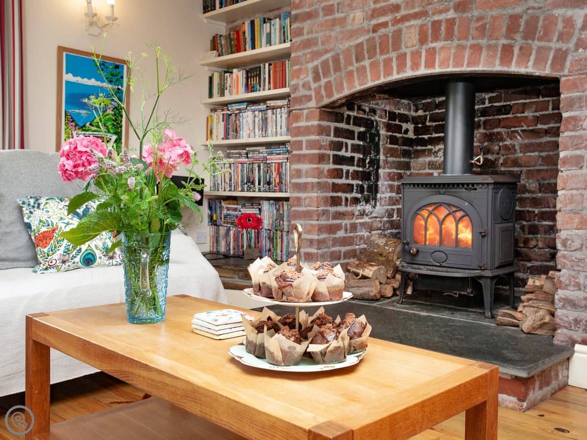 Inside, it's been done up. It's comfortable, not just old. There are two living rooms, both have wood burners and books. Upstairs, the main bathroom has a bath and the ground floor one has a walk-in shower.