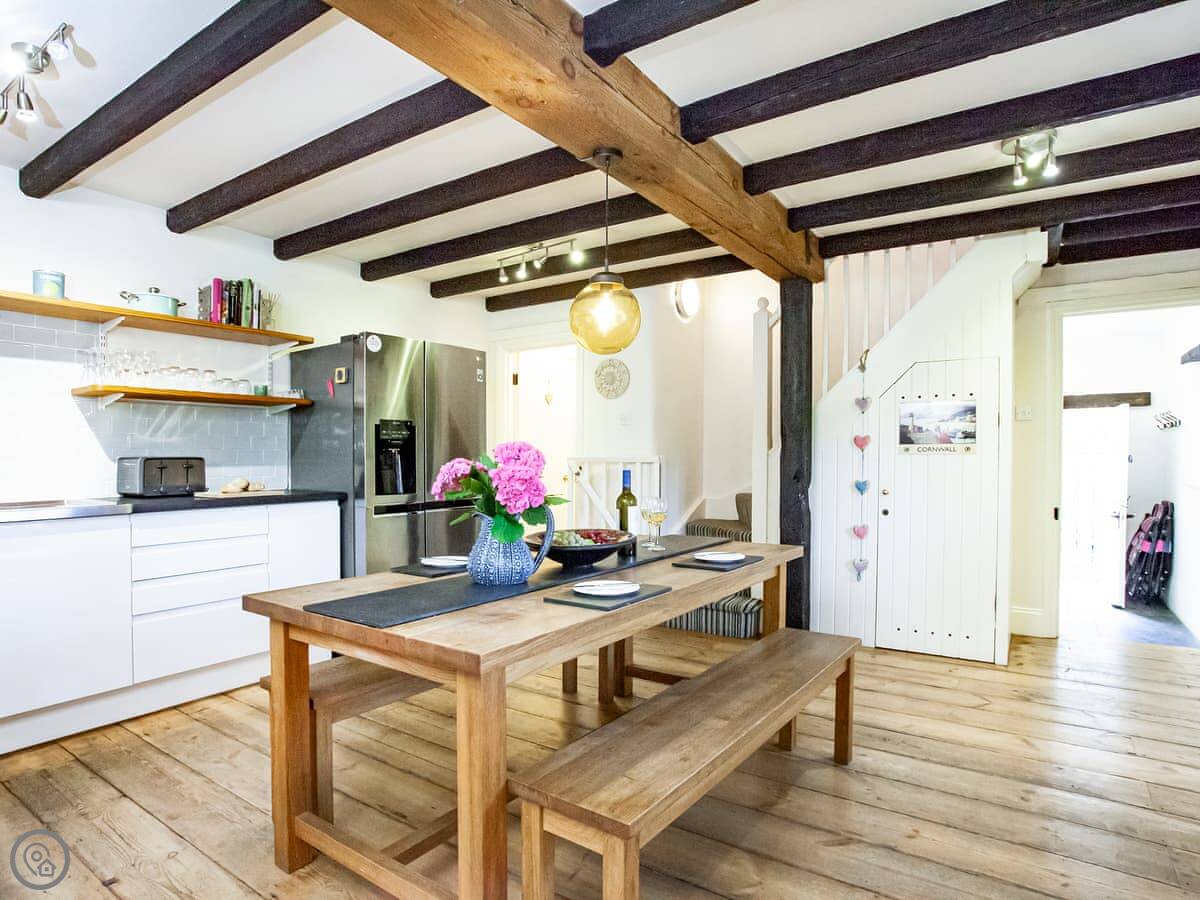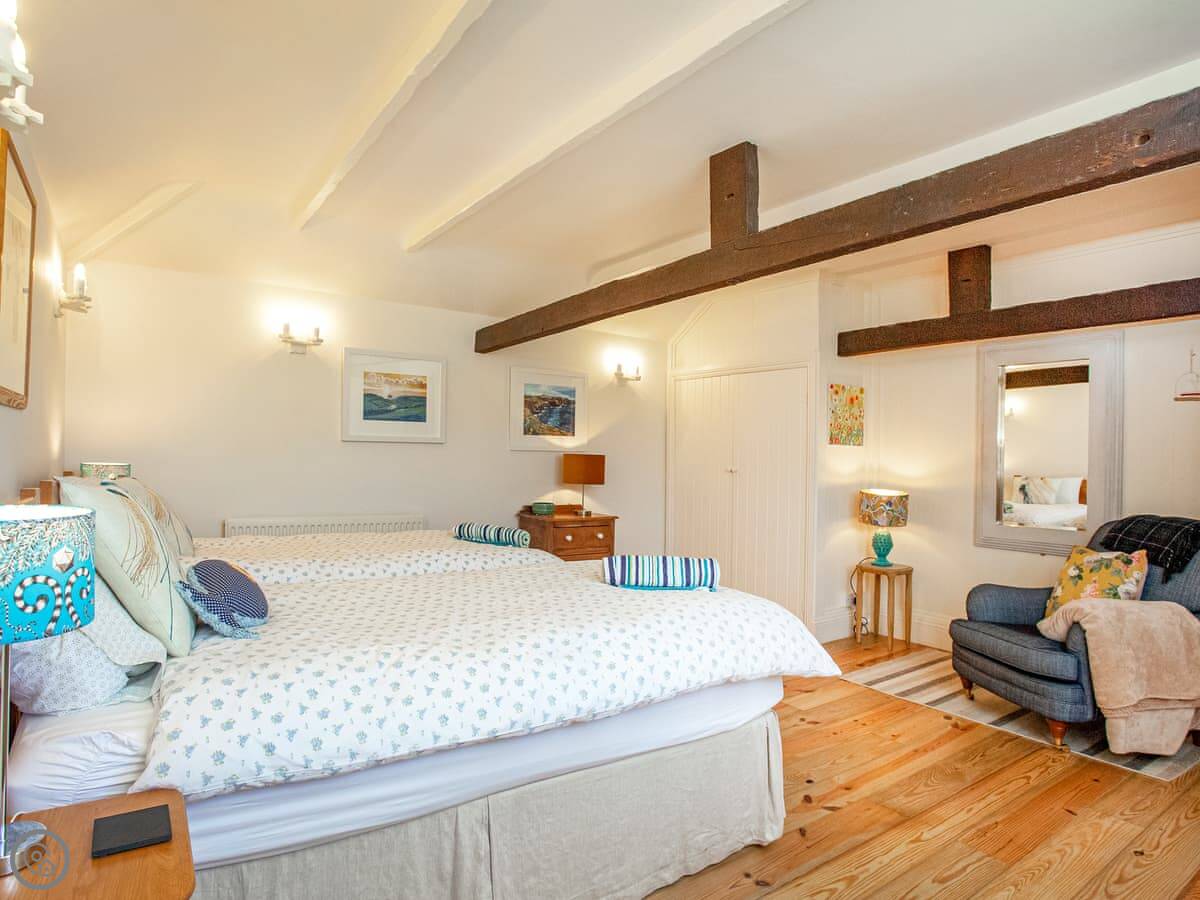 The cottage sleeps six. There are four bedrooms and two bathrooms. It's got a four star rating. It's a proper old farmhouse, so expect low beams and winding stairs. Some of the stairs are quite steep, just so you know.