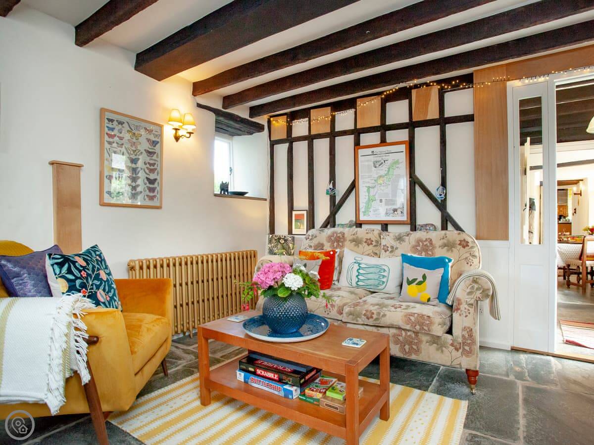 Outside, it's quiet. You're about a ten minute walk from Crackington Haven beach down the lane. It’s a steep walk back up. The coast path is right there. You can walk north towards Bude or south towards Boscastle.