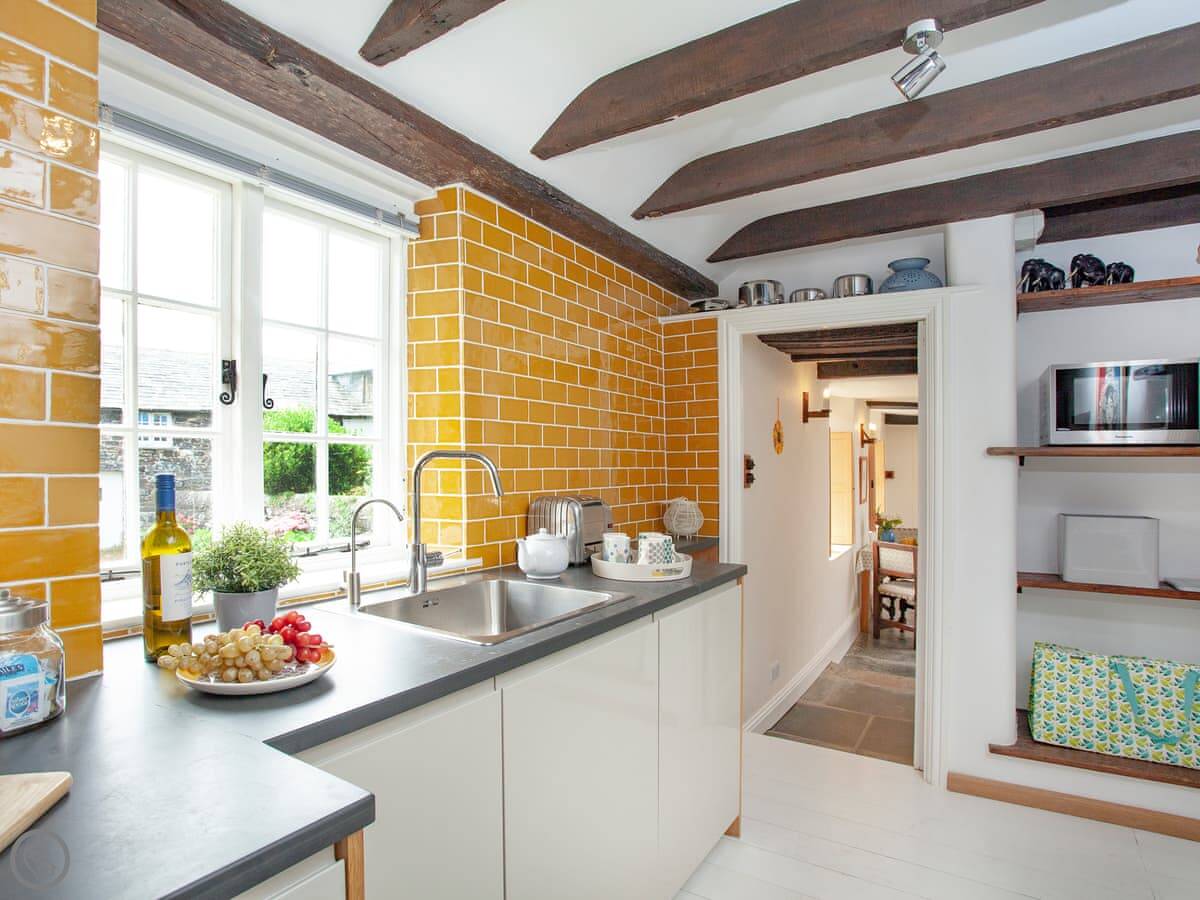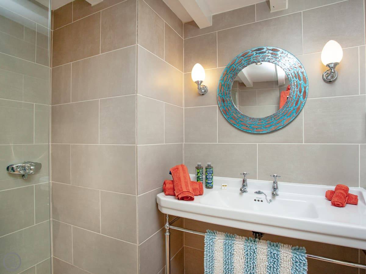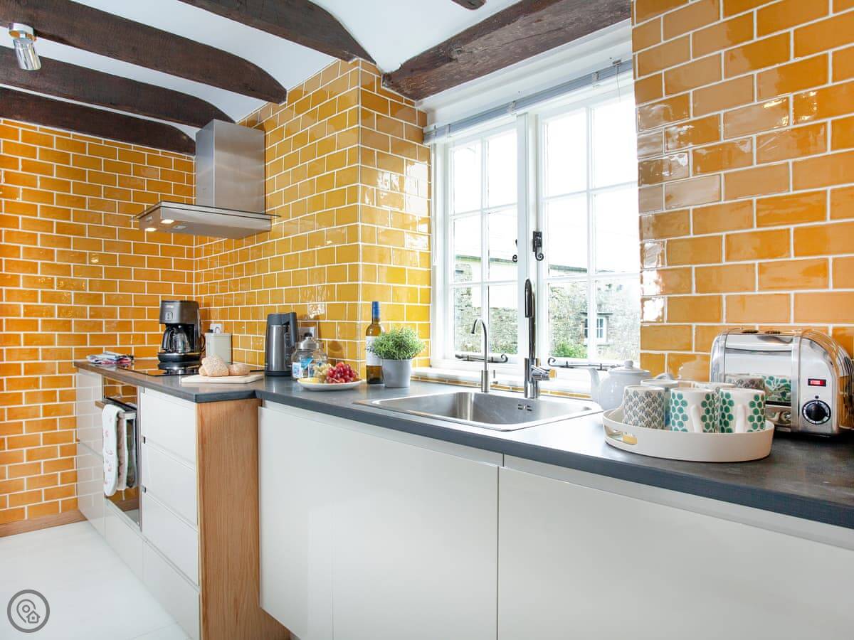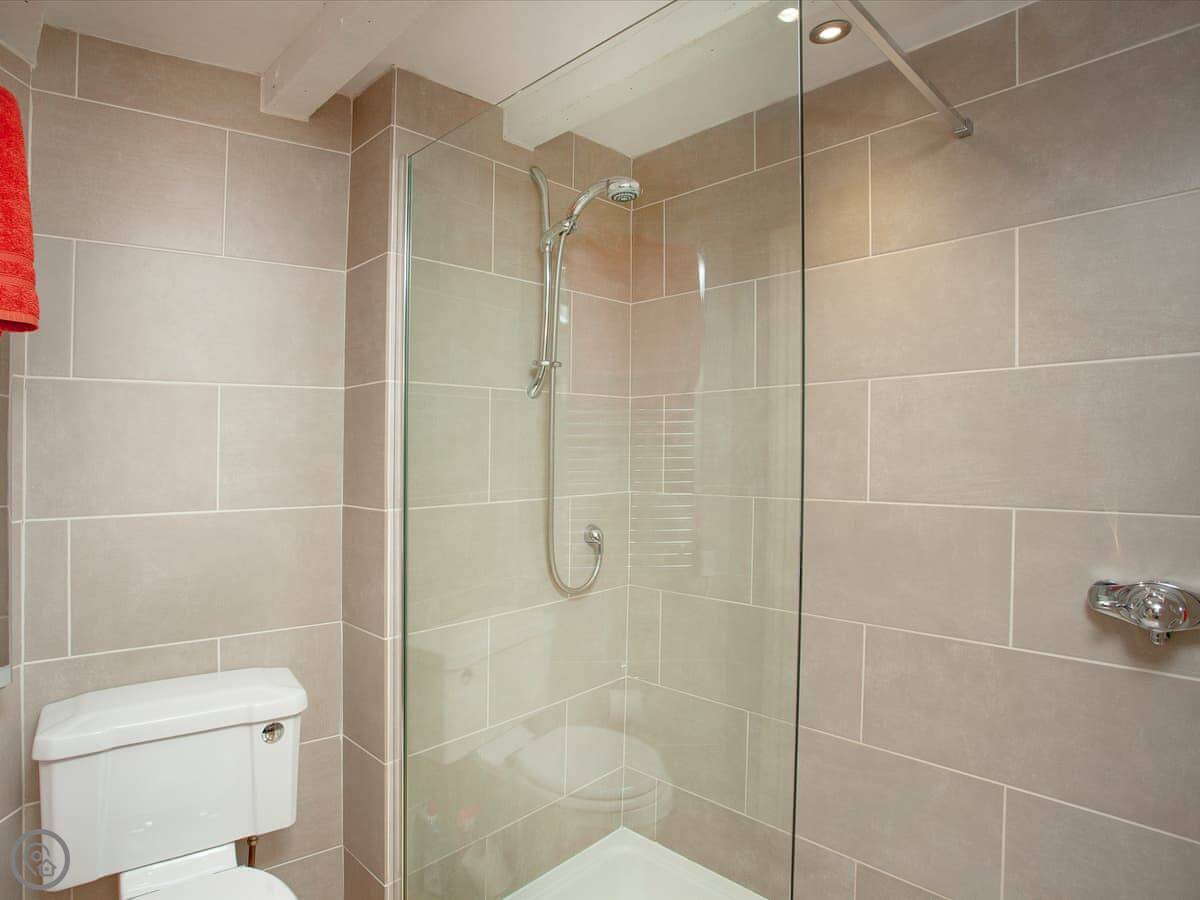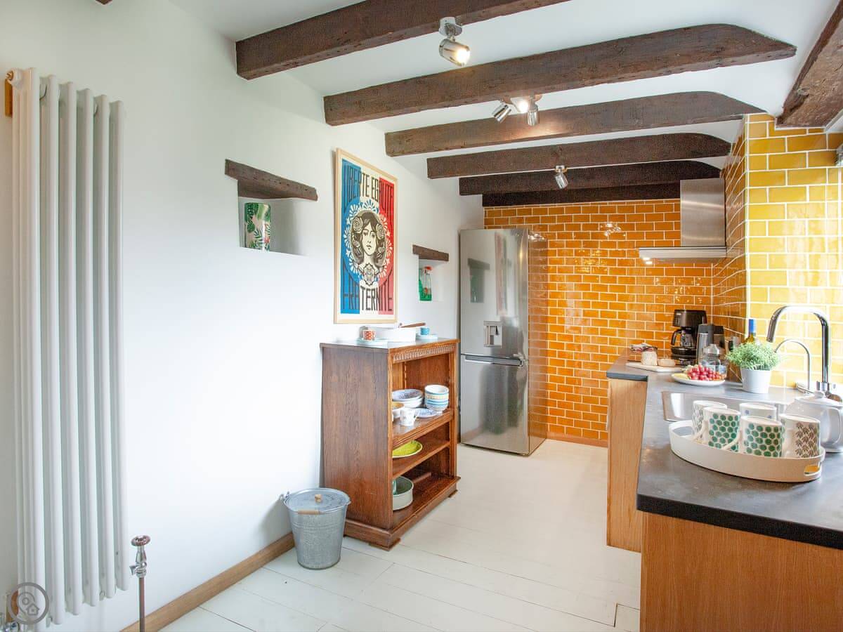 It’s got a 4 Star rating. It's been done up well inside. The kitchen is yellow and has everything you'd need. The bed is very good, a Vispring, and it can be split into two singles if you prefer. The shower is a good size.