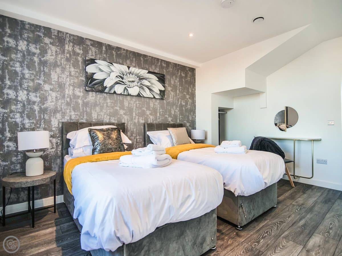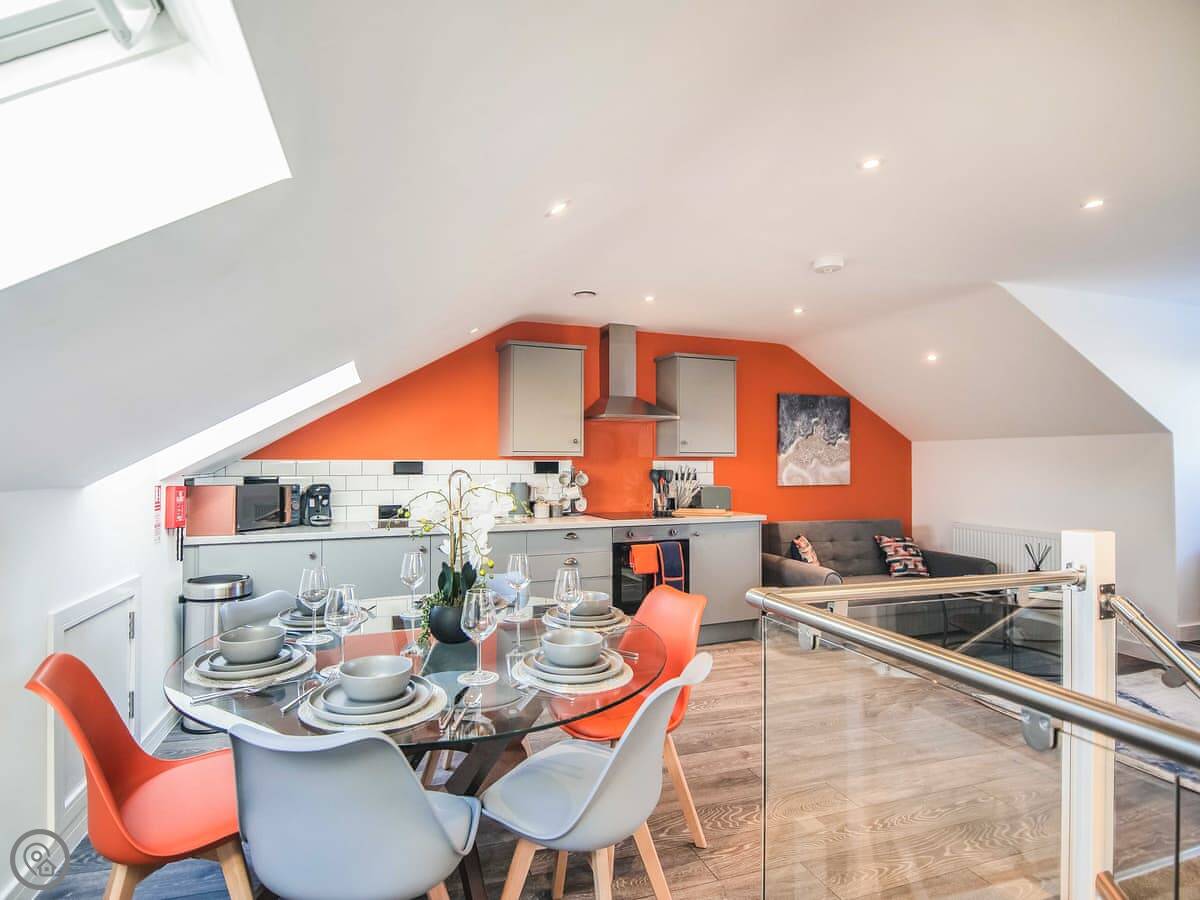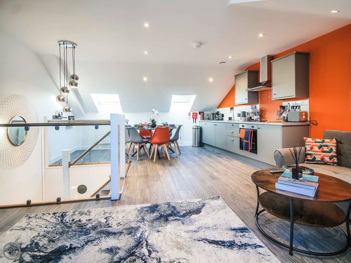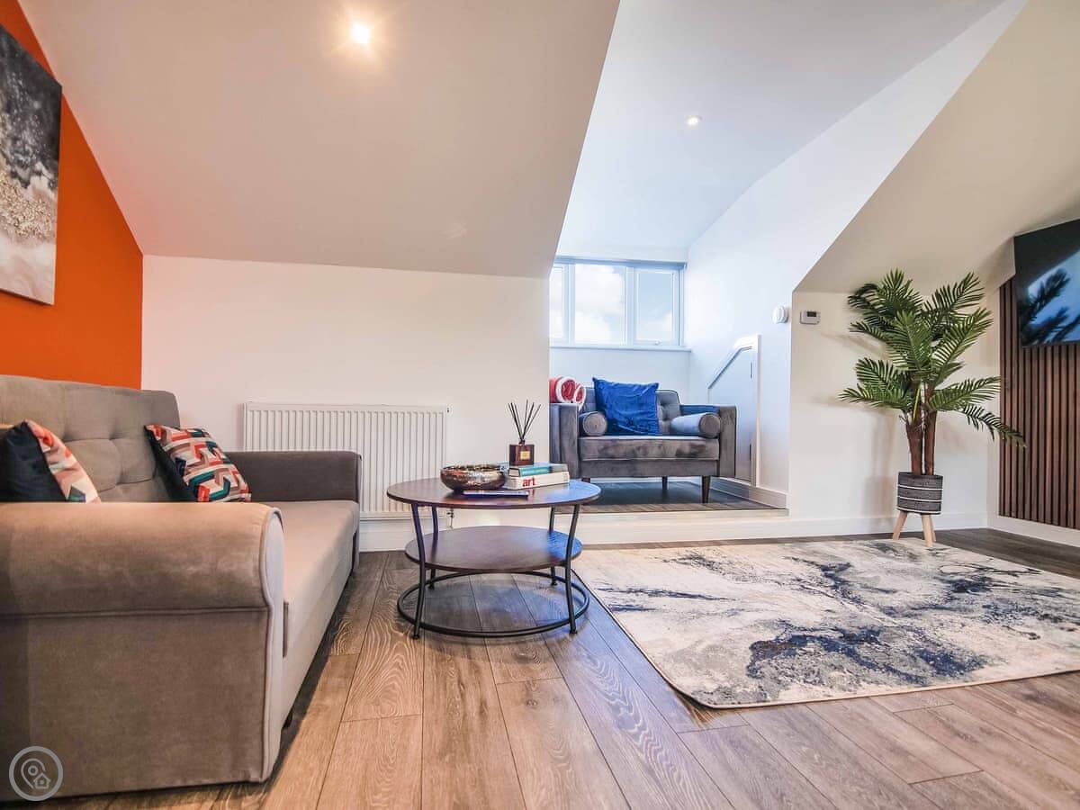 It sleeps six. Being honest, that's with two people on the sofa bed in the living area. Fine for kids, but adults might find it a bit cosy. It's a 4 Star place, so it's clean and well-equipped but it's not a huge apartment. Everything is on one floor once you're inside.