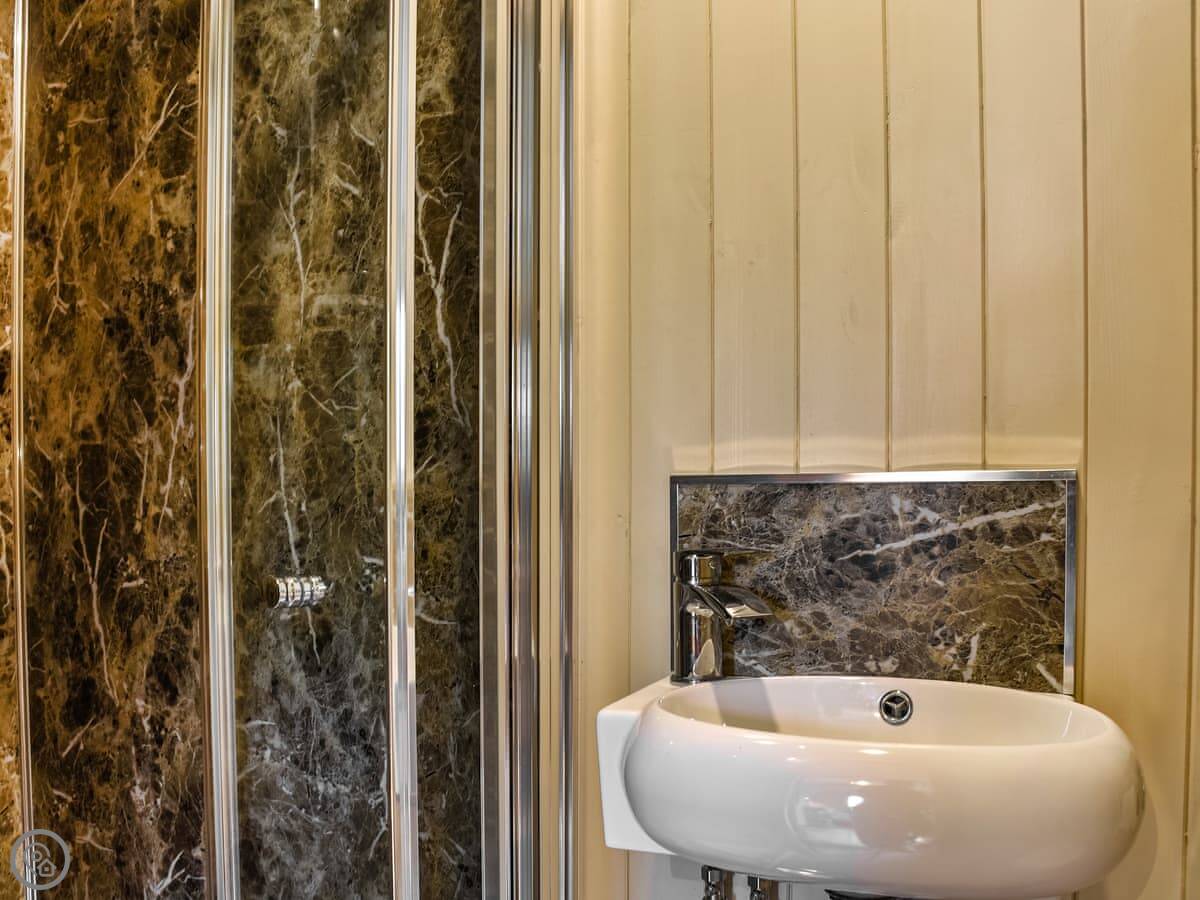 The hut itself sleeps two. One bedroom space with a double bed, a small kitchen and dining area, and a shower room. It's got one of those log burners. It's a 4 Star graded place, which means it's nicer than most huts, but still a hut.