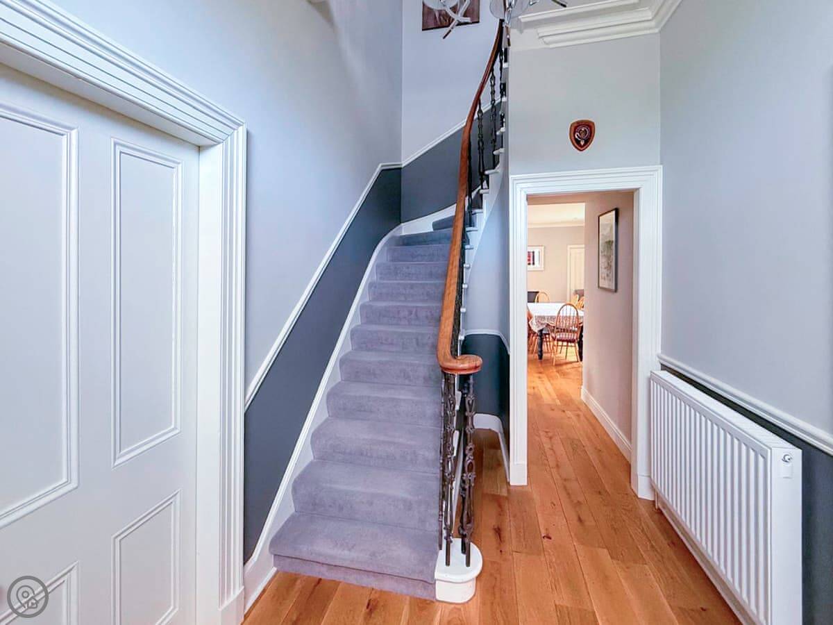 It's a big, tall Victorian villa. It sleeps eight, in four bedrooms. Each bedroom has its own en-suite bathroom, which is useful. The stairs inside are the original ones, so they're a proper sweeping staircase but they're also quite steep.