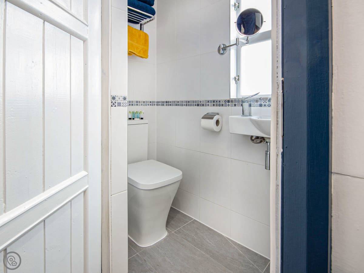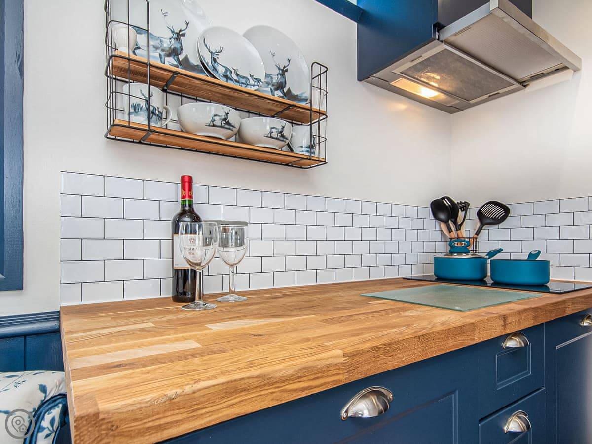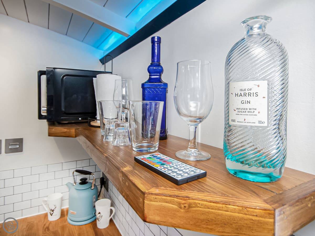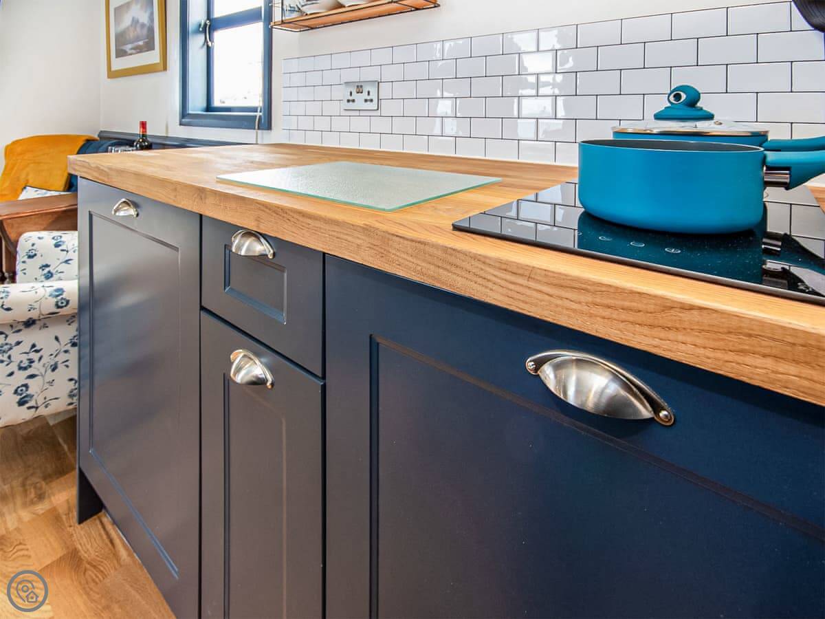 It sleeps two, in one bed that doubles as the sofa. There's a wood burner for heat and a wet room at the end. Everything you need is in here, it's just compact. It's got a 4 Star rating, which for a shepherd's hut means it's well-equipped and comfortable for what it is.