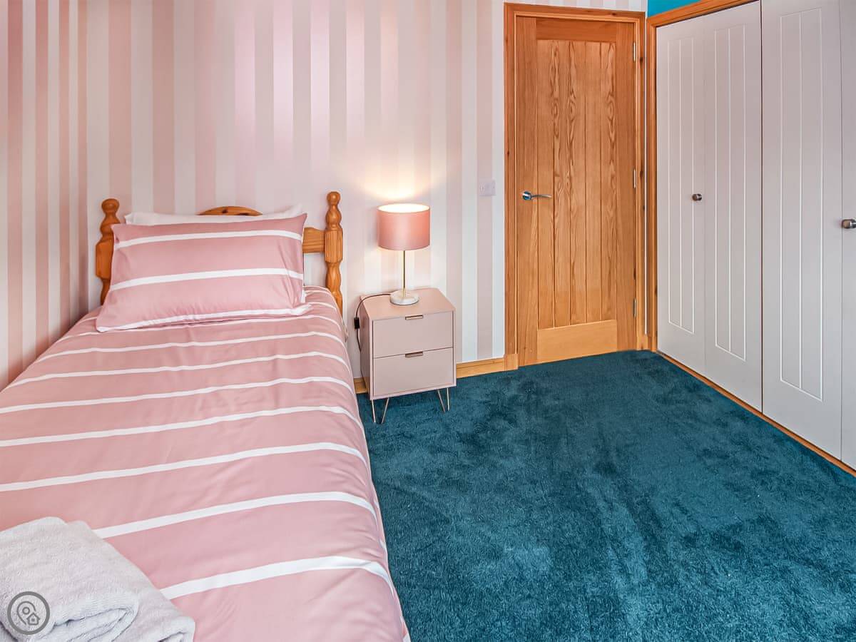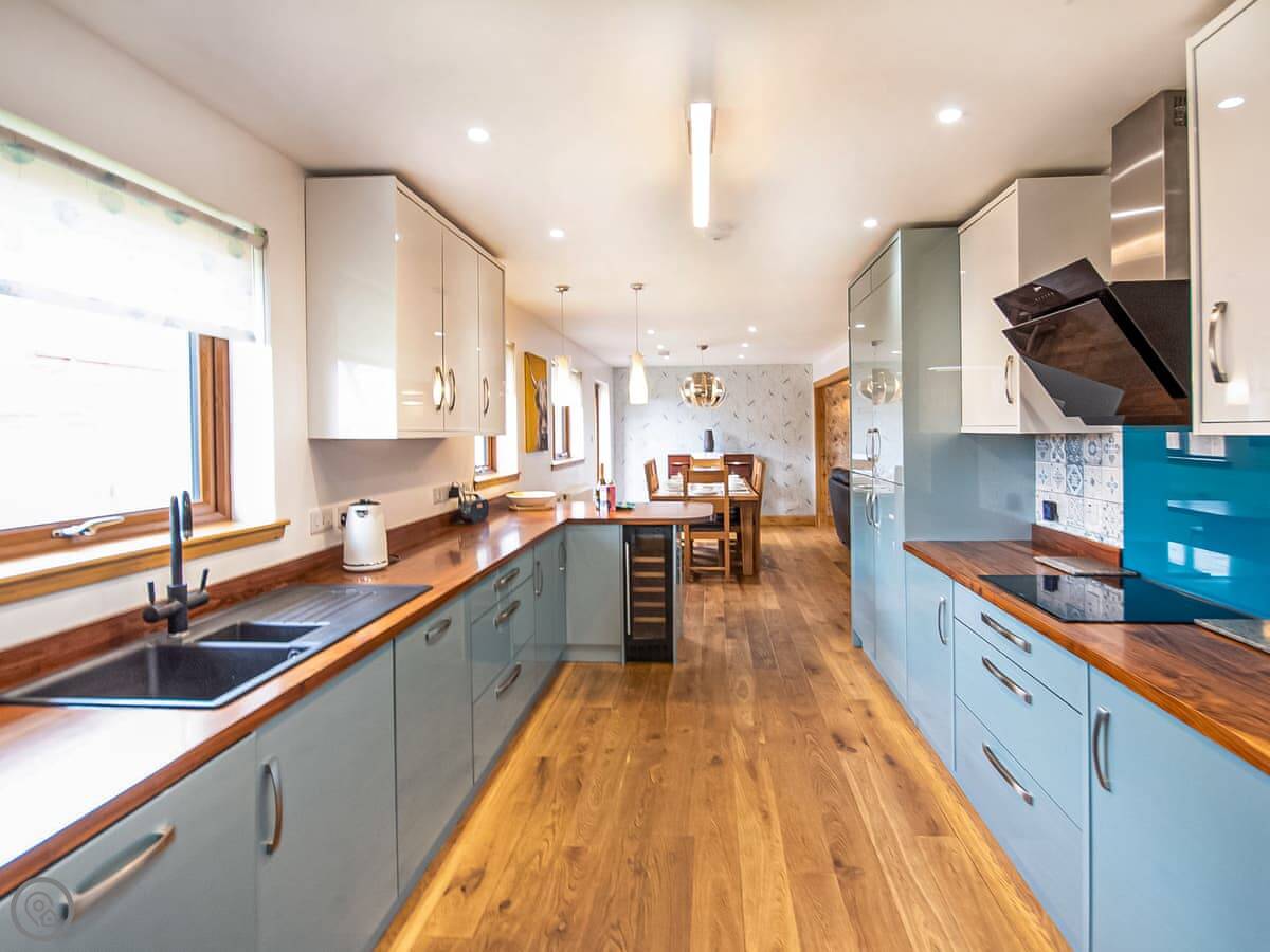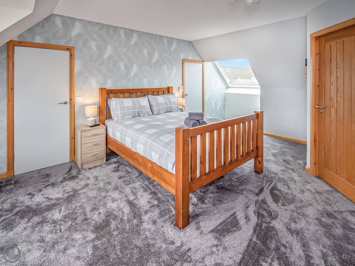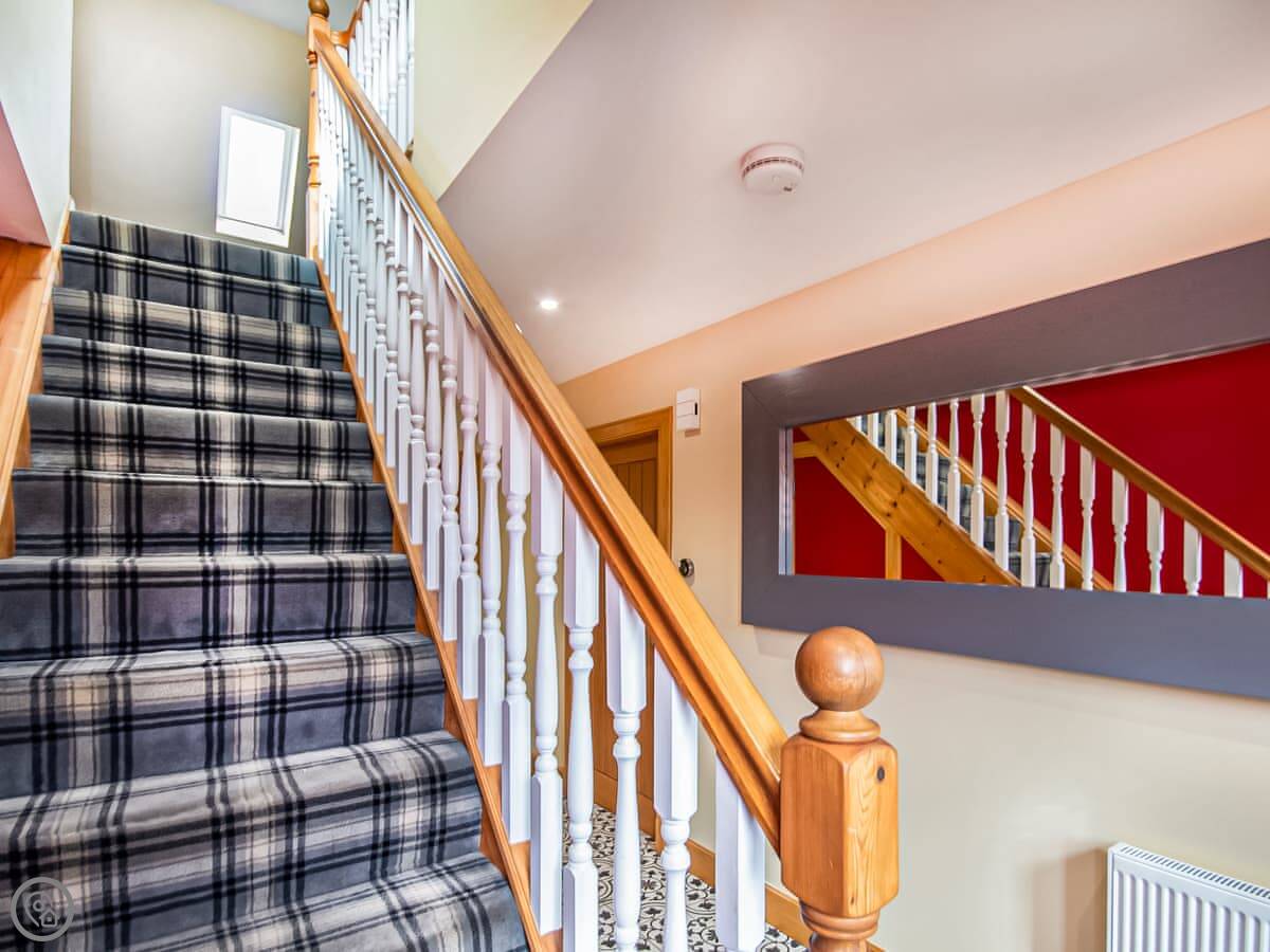 It sleeps eight. Five bedrooms, three bathrooms. One bedroom and a bathroom are on the ground floor, the rest are upstairs. It's got a 4 Star rating, so it's comfortable and well-equipped. The stairs are fine.