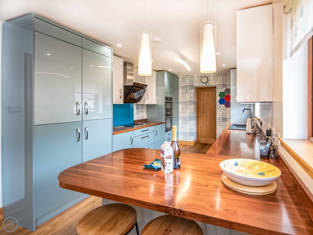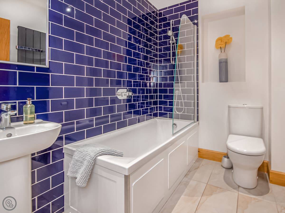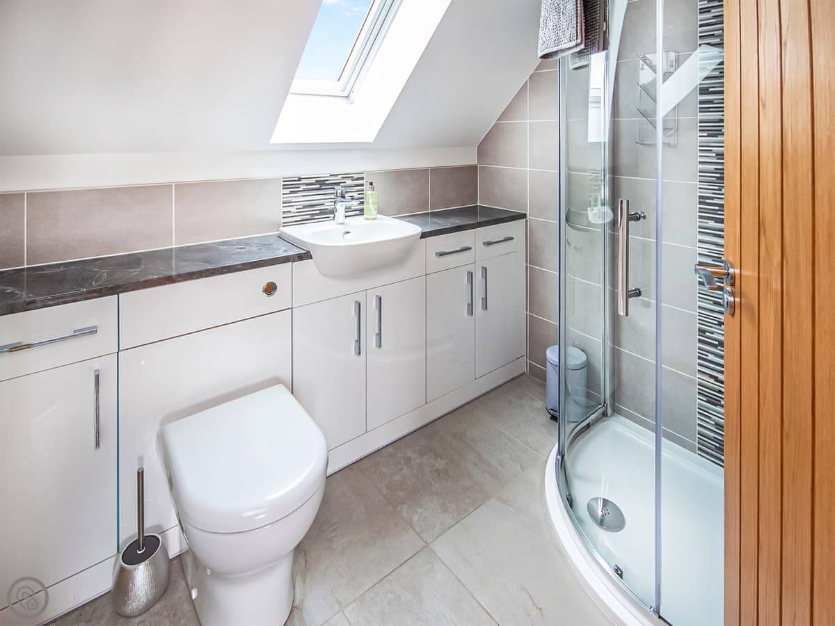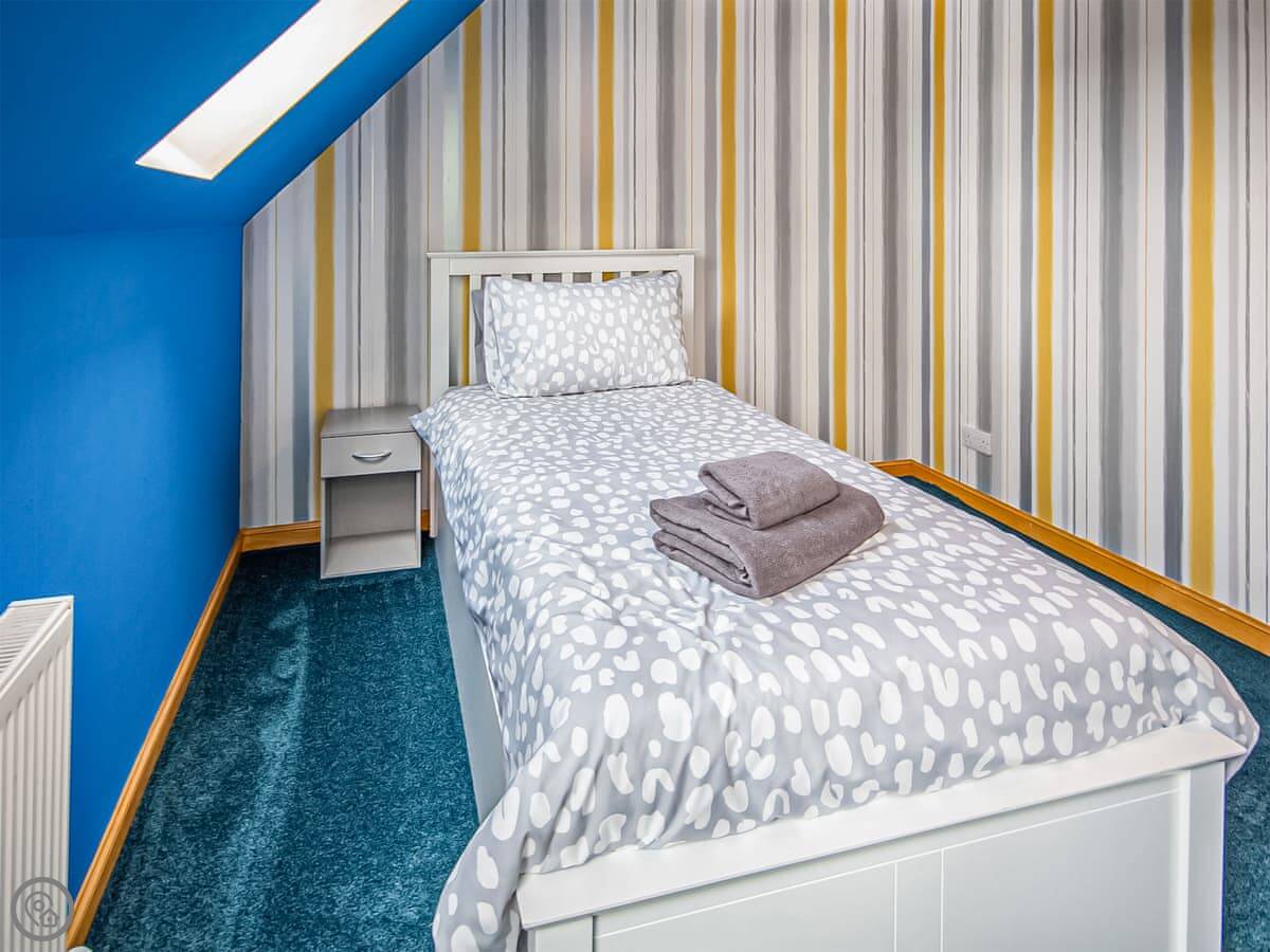 It sleeps eight. Five bedrooms, three bathrooms. One bedroom and a bathroom are on the ground floor, the rest are upstairs. It's got a 4 Star rating, so it's comfortable and well-equipped. The stairs are fine.